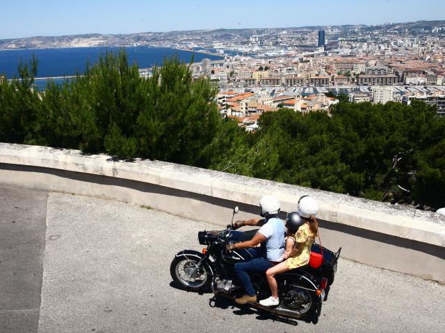 Excursion en side car pour un tour panoramique suivi d’un apéritif pétanque dans un lieu privé. Dépose des side cars près d’un restaurant dans le quartier des Goudes.
