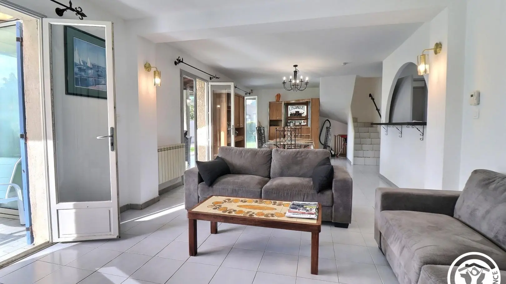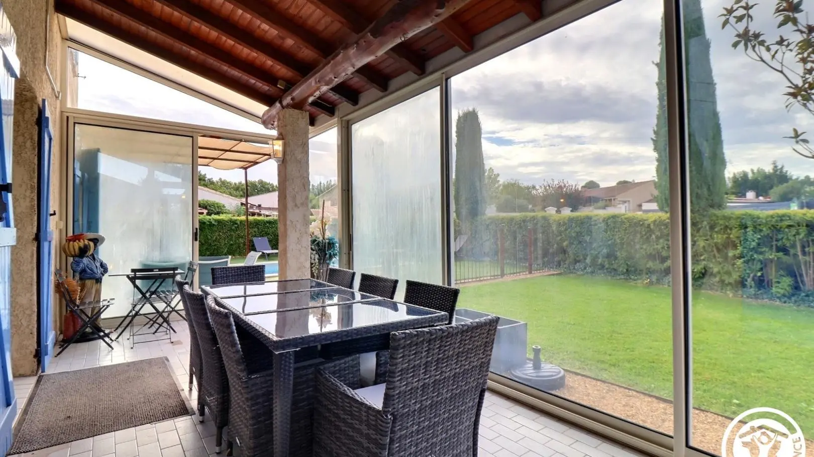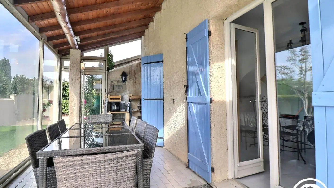 - Una gran terraza de 27 m² con muebles de jardín y mesa de ping-pong.
