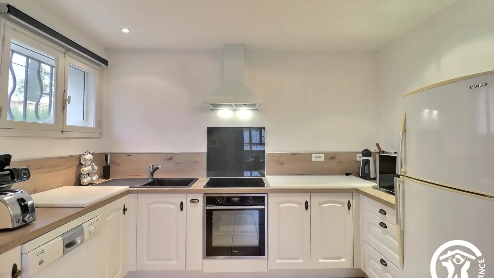 Casa rural adosada, equipada y decorada con gran gusto en una masía del siglo XIX que se beneficia de un gran jardín comunitario cerrado con flores y árboles. Su ubicación a las afueras del pueblo ofrece los servicios básicos. Piscina comunitaria del 01/05 al 15/09.