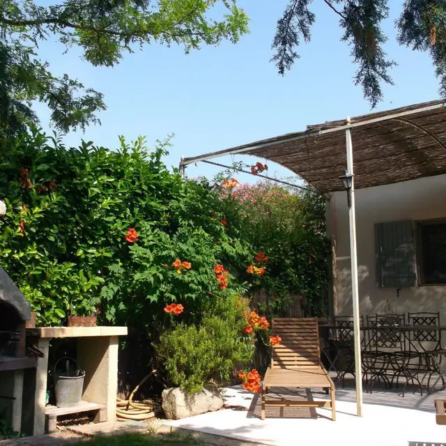3 encantadoras casas rurales contiguas ubicadas en el campo a 1 km del pueblo de Maillane, cerca de Les Baux de Provence y St Remy de Provence. Cada uno tiene su propio espacio privado y decorado con buen gusto. La casa rural "Bouquet 1" se encuentra al oeste/sur.