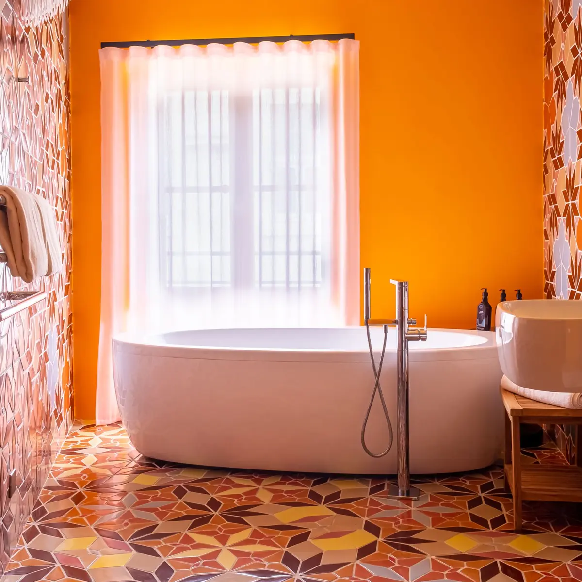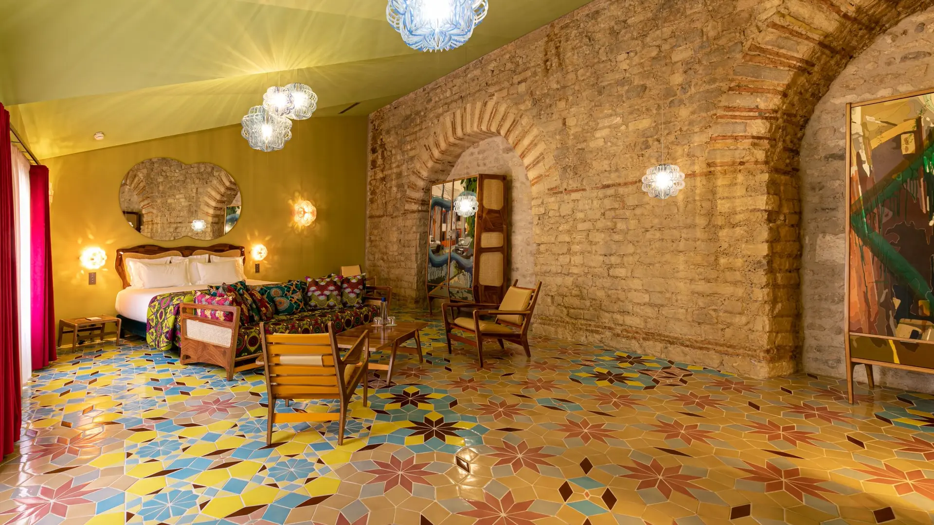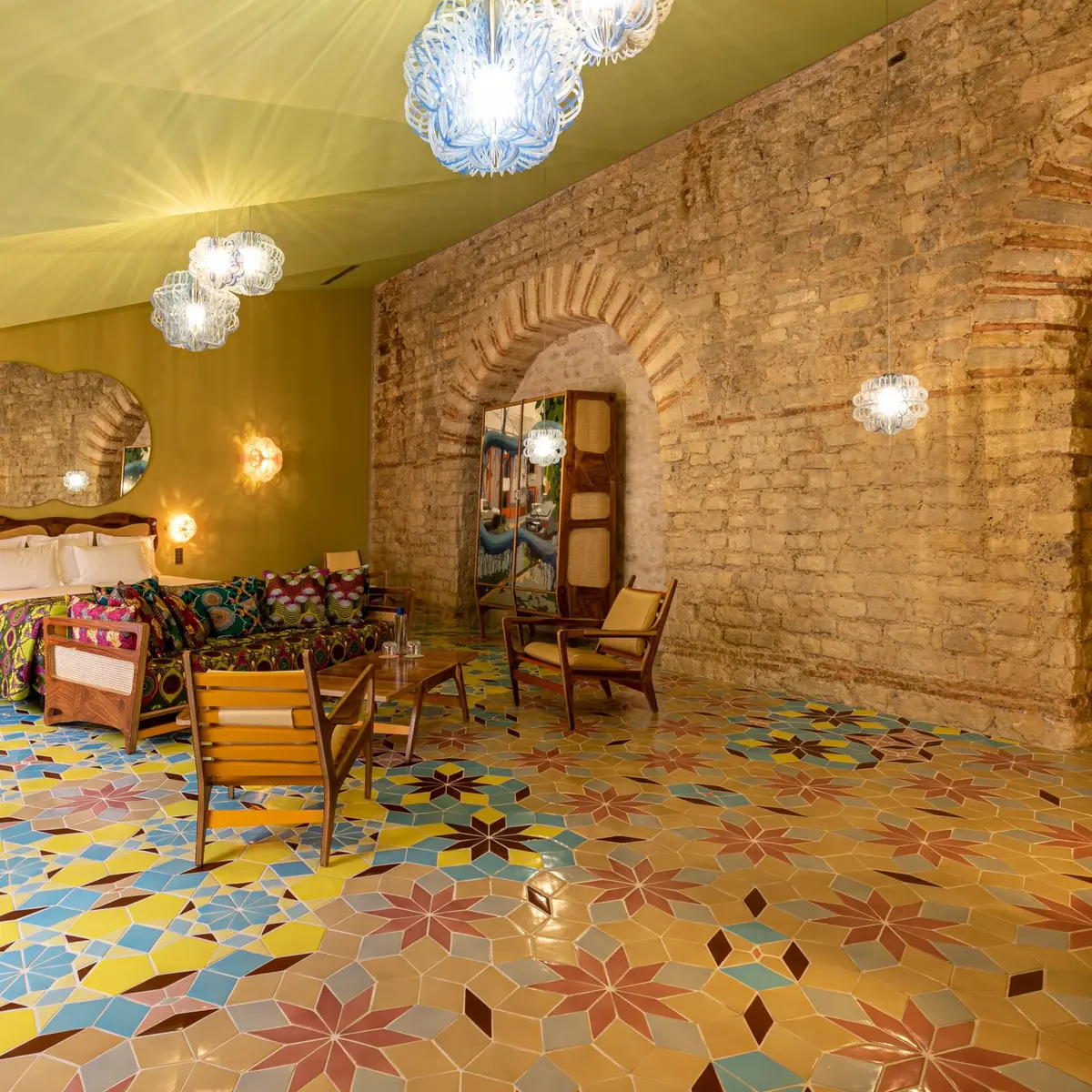 En L'Arlatan, cada habitación y cada puerta son una obra de arte única. Una explosión de colores, luces y diseños contemporáneos se despliega en un mosaico de más de 6.000 m2. Los cerca de dos millones de fragmentos de mosaico utilizados en la renovación se hicieron todos a medida.