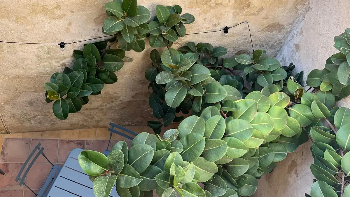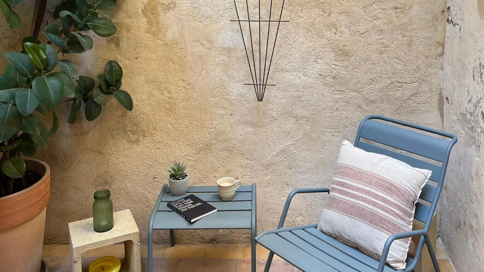 Un bonito patio sombreado, ideal para comidas en familia o con amigos,