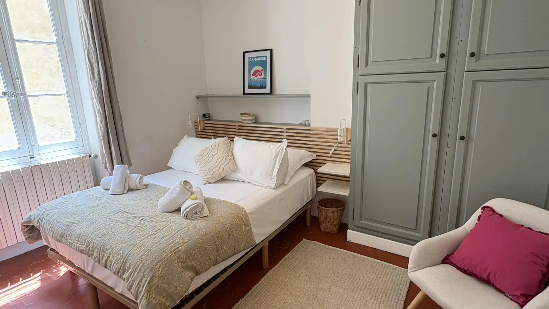 Una tercera habitación muy espaciosa con 2 camas individuales (se pueden juntar para hacer una cama doble) – posibilidad de una tercera cama individual bajo petición,