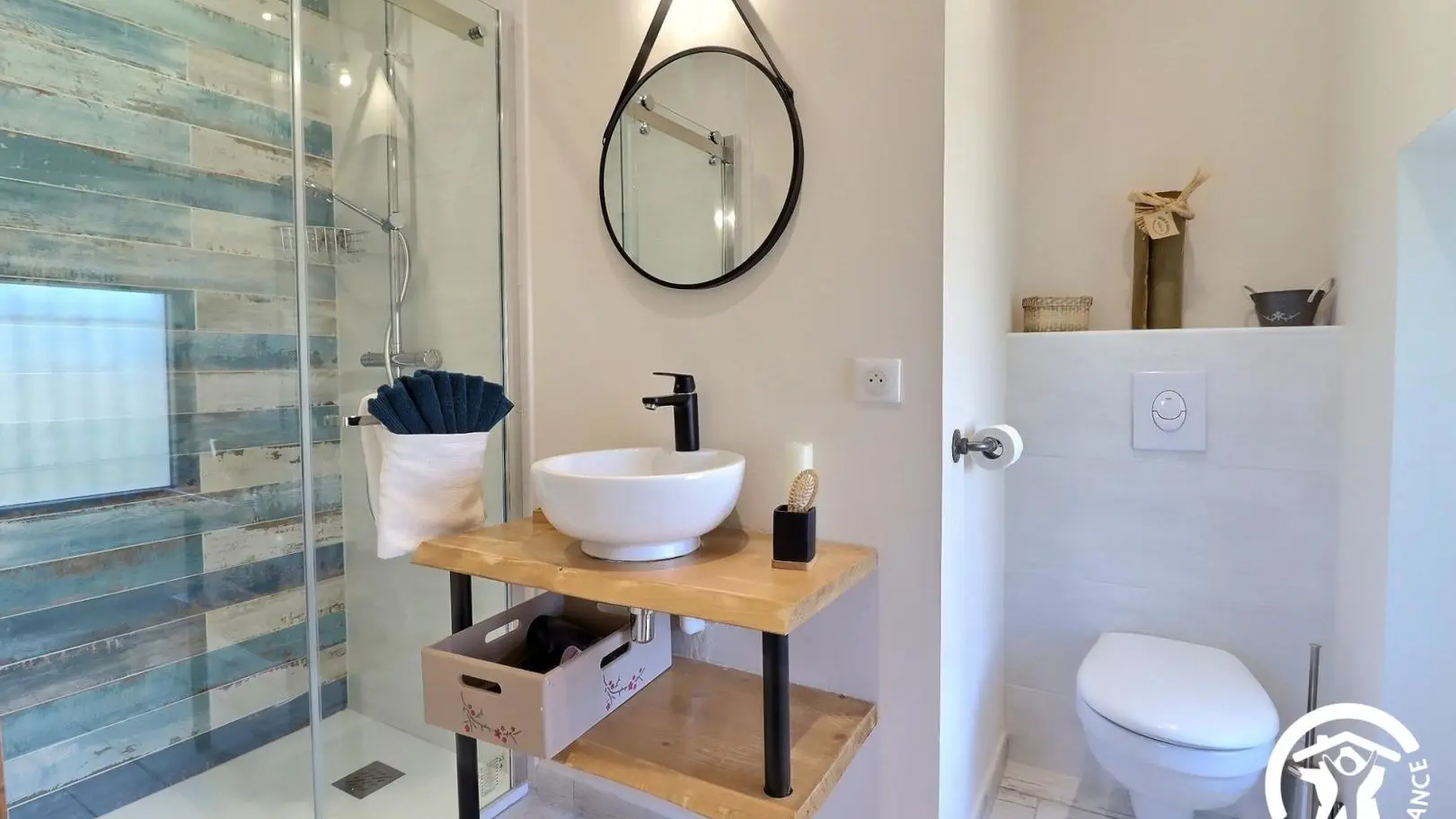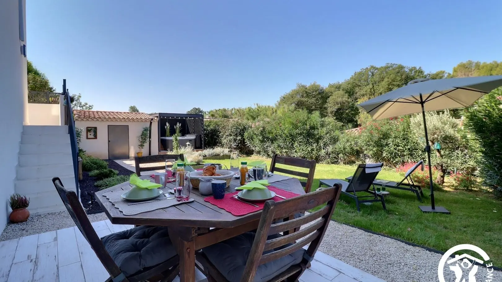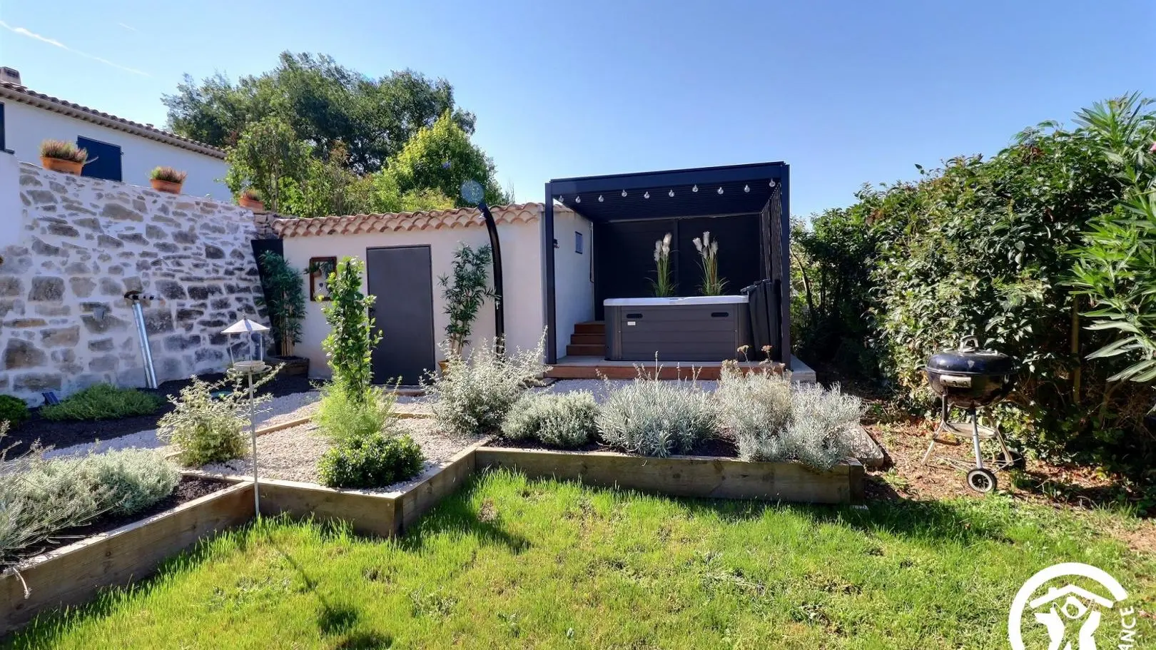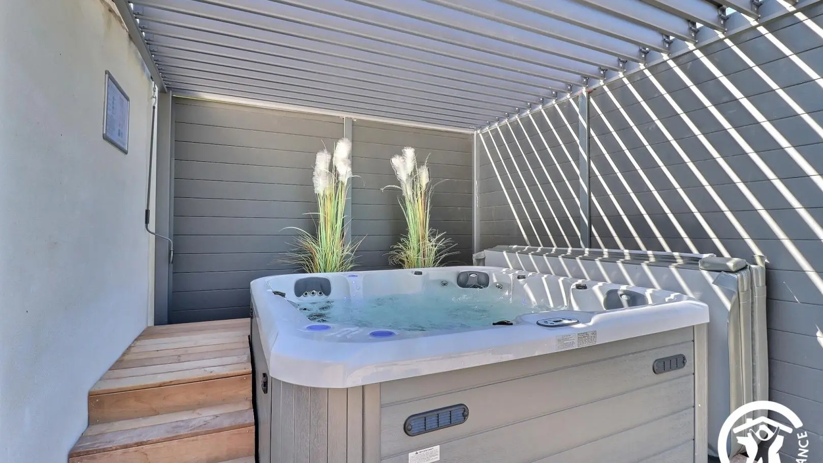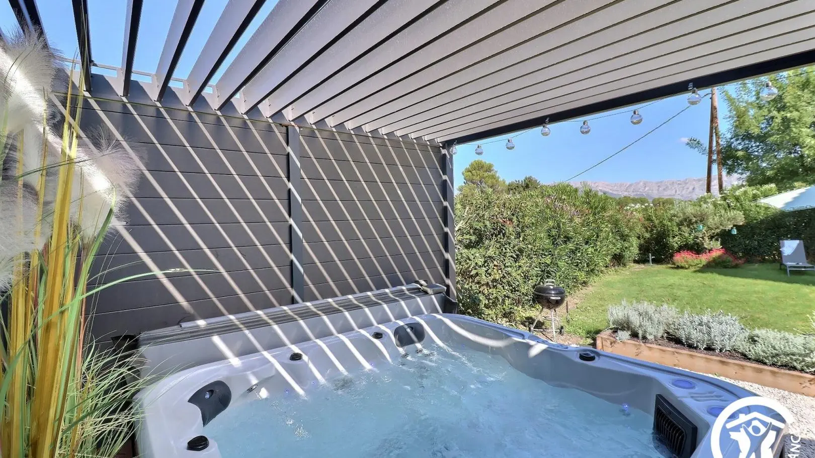 Contigua a la casa de los propietarios pero sin vecinos, la casa dispone de 3 plazas de aparcamiento privadas, un jardín vallado de 200 m² con césped y árboles con tumbonas, una terraza con muebles de jardín, una zona de jacuzzi cubierta (horario de apertura según la temporada) y una piscina al aire libre. ducha.