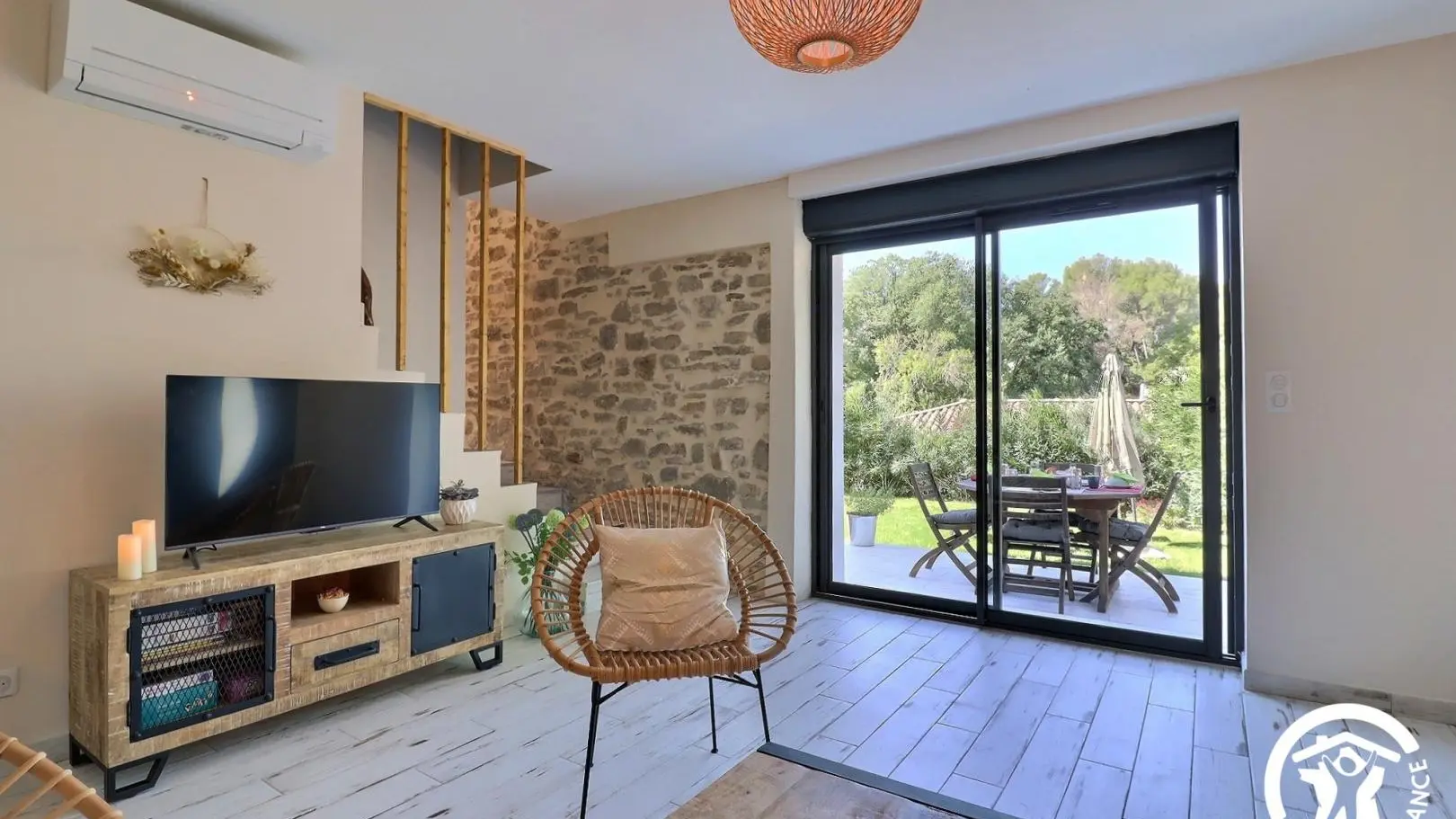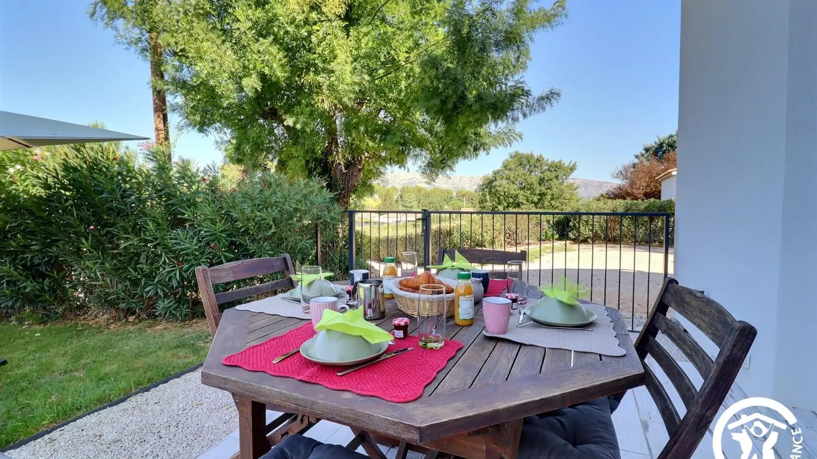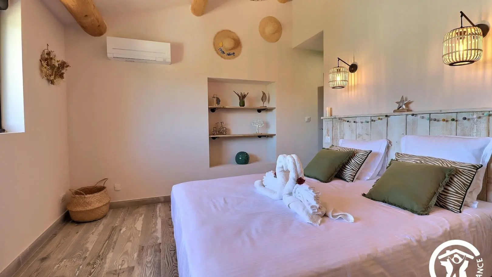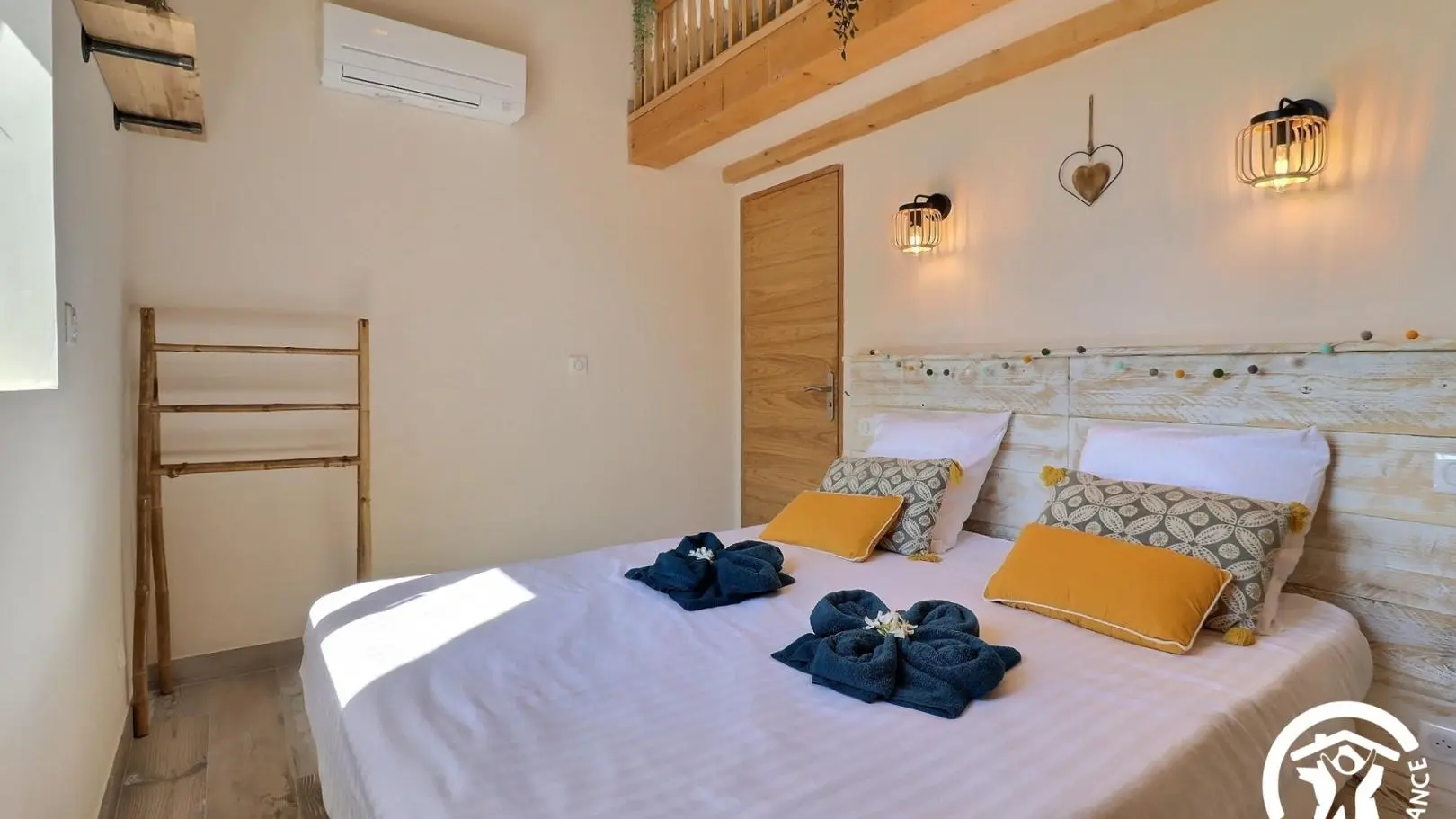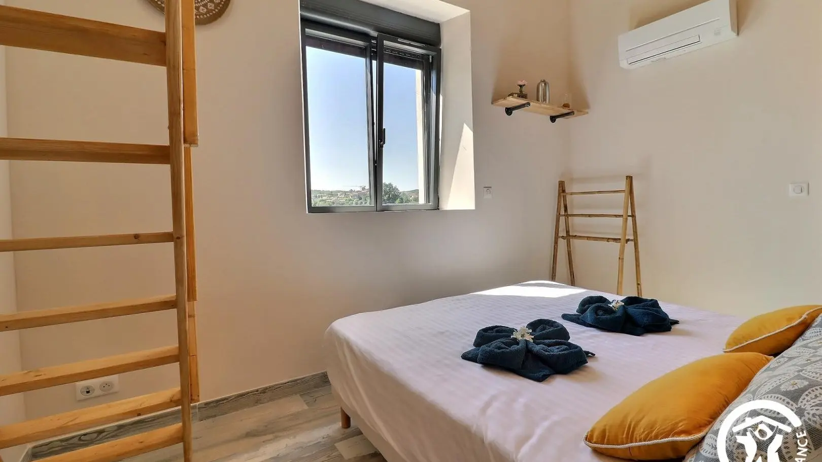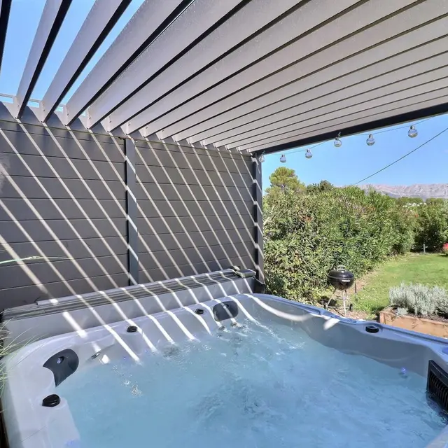 Contigua a la casa de los propietarios pero sin vecinos, la casa dispone de 3 plazas de aparcamiento privadas, un jardín vallado de 200 m² con césped y árboles con tumbonas, una terraza con muebles de jardín, una zona de jacuzzi cubierta (horario de apertura según la temporada) y una piscina al aire libre. ducha.