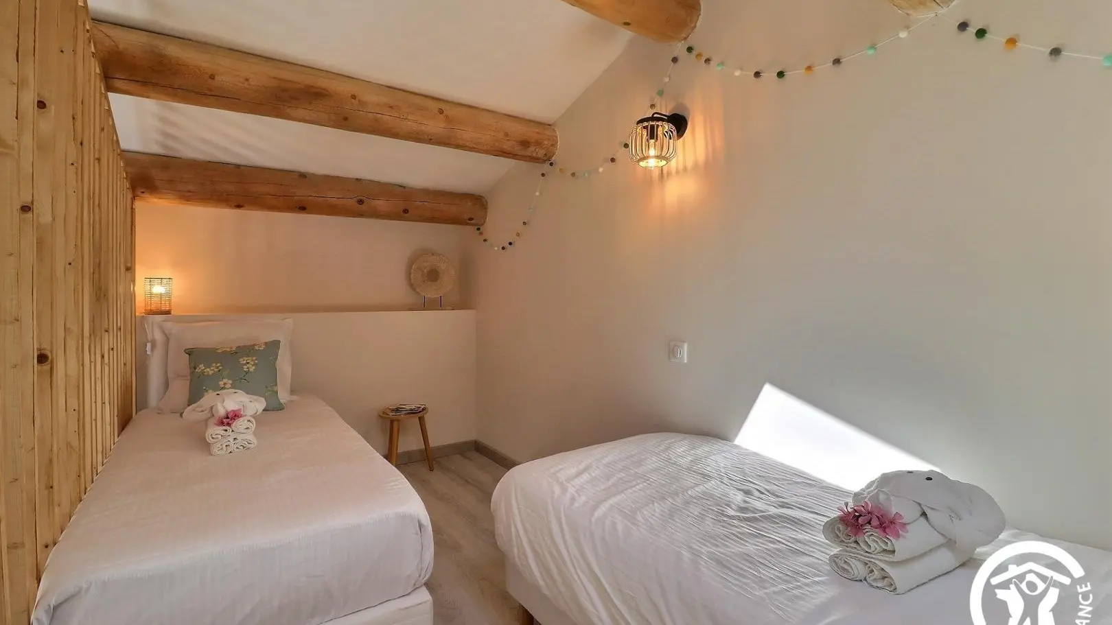 - un segundo dormitorio con 2 camas individuales de 80x200 cm con vistas a Sainte Victoire y armario empotrado. Baño privado con WC.