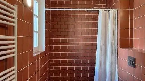 - Cuarto de baño con ducha a ras de suelo, tocador, WC y toallero eléctrico