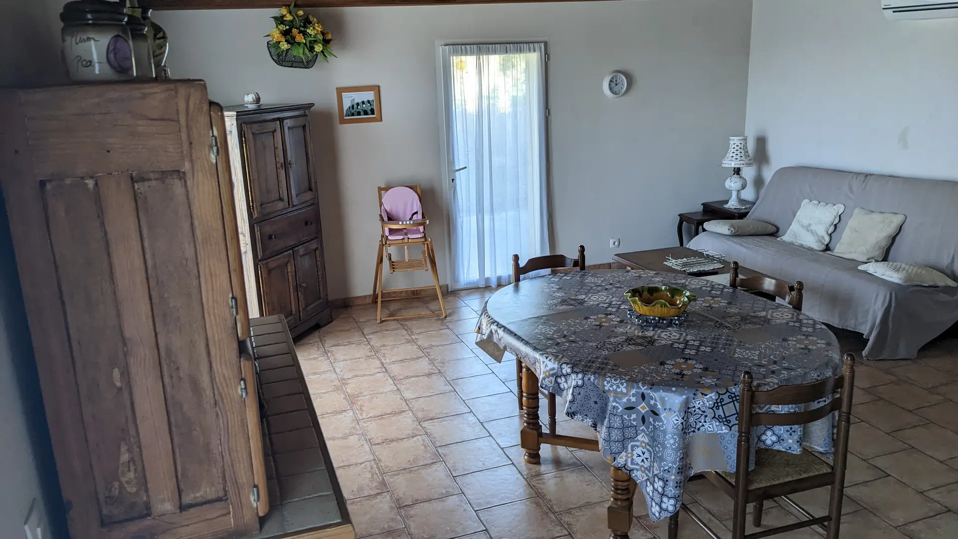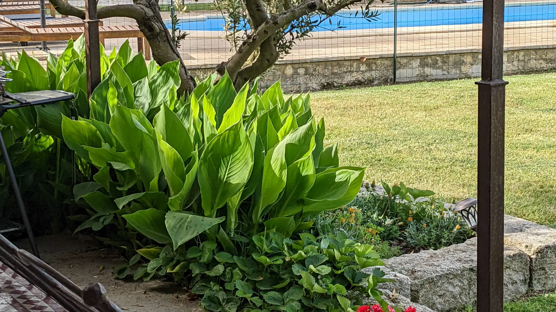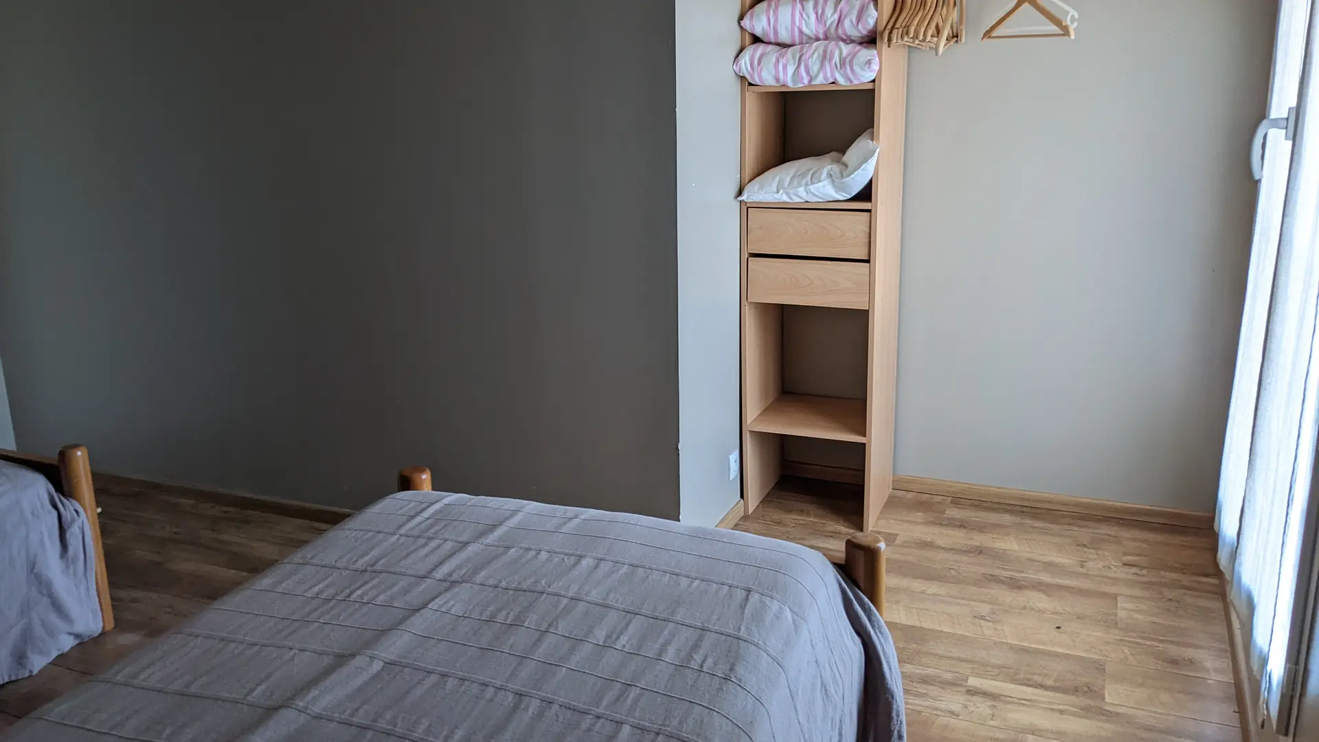 En la planta baja hay una cocina / sala de estar, arriba hay 2 dormitorios y fuera hay un gran jardín con terraza y piscina compartida (climatizada del 15/05 al 15/09).