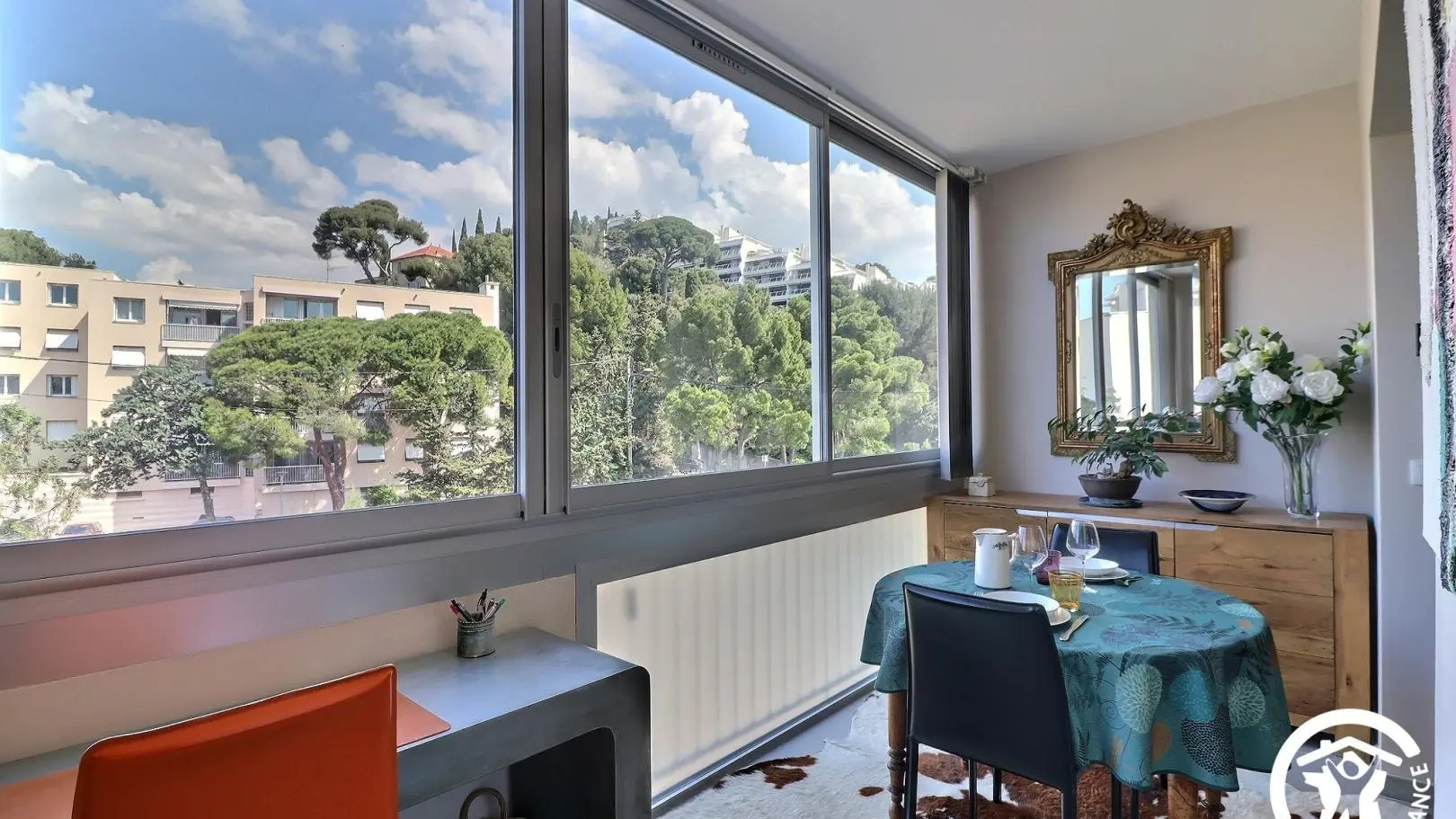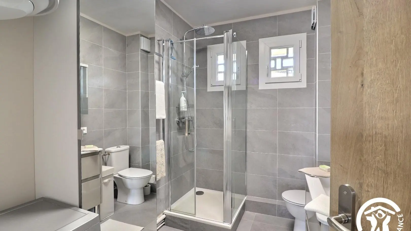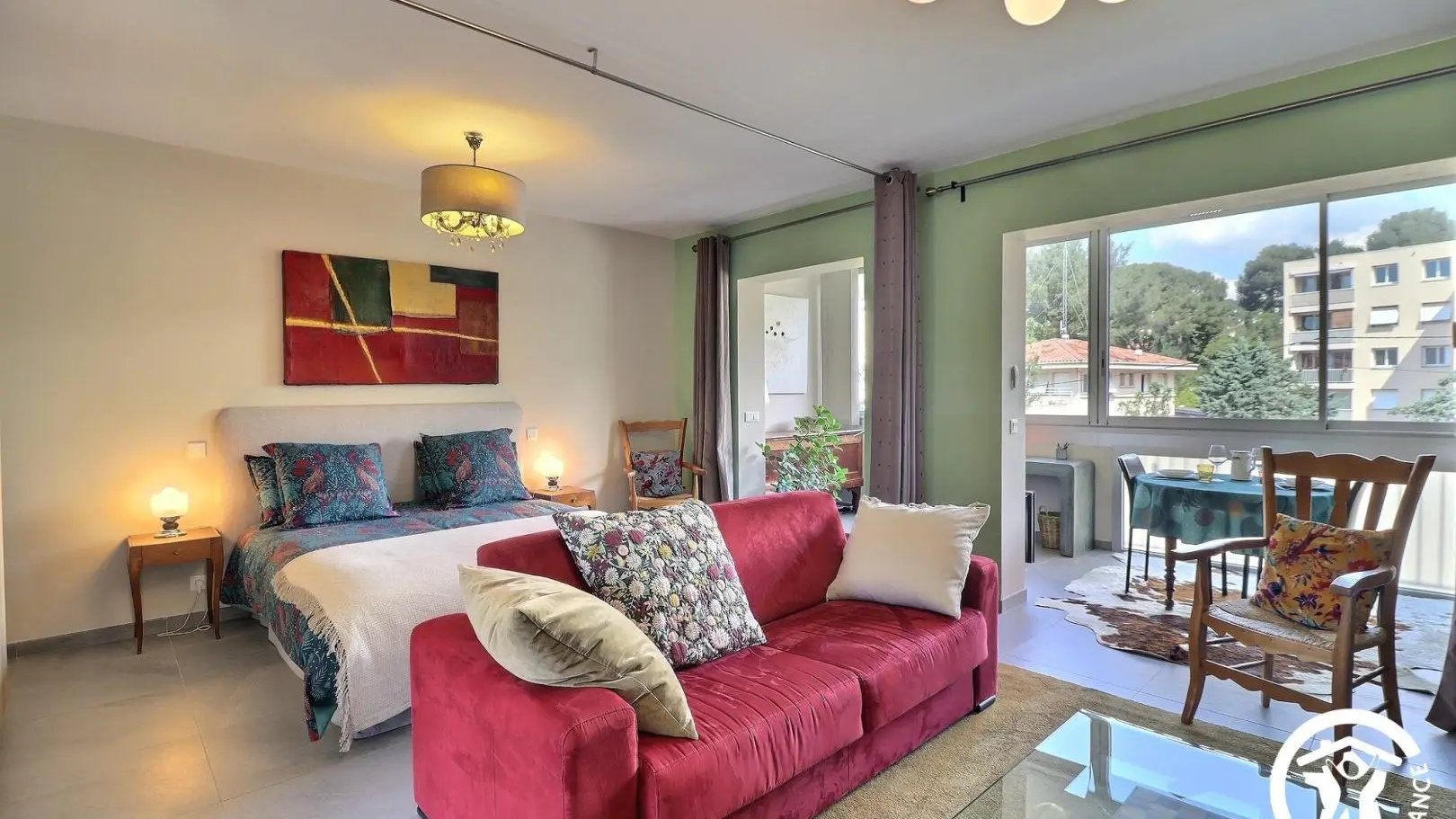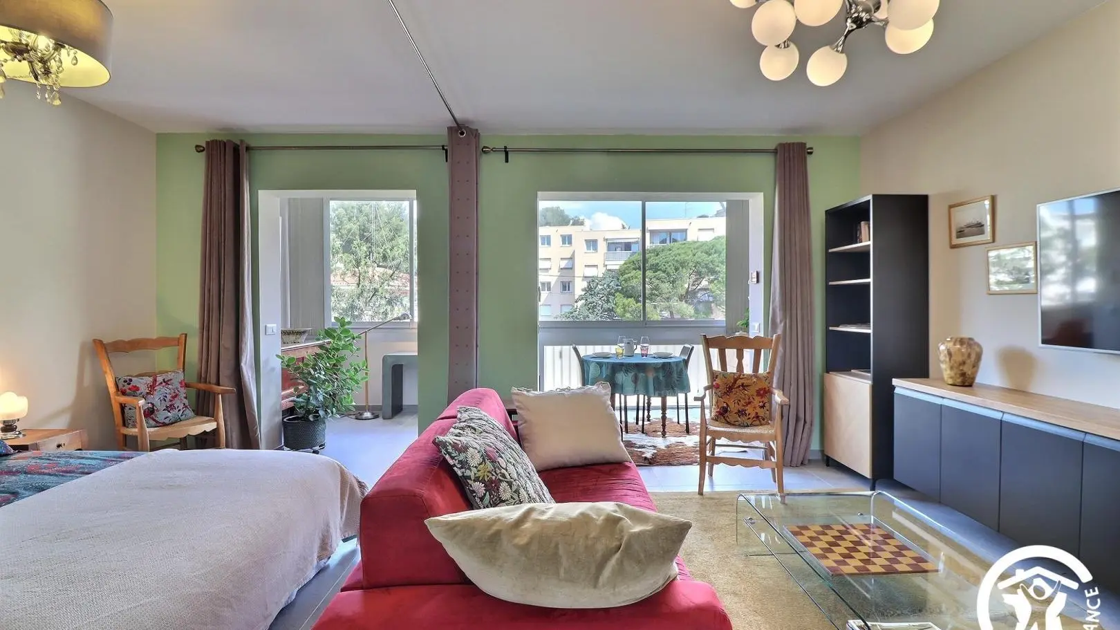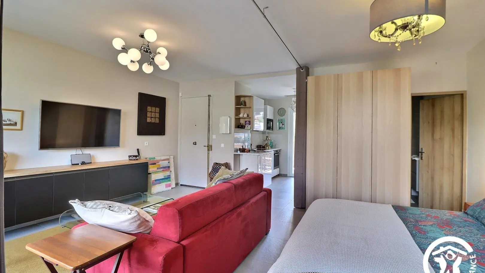 Climatizado, el estudio dispone de un sofá, un televisor, una mesa de café, un comedor con una mesa y 4 sillas, un escritorio, una cocina equipada con una placa de inducción de 3 fuegos y una campana extractora, horno, microondas, frigorífico-congelador, lavavajillas, etc., una zona de dormitorio separada por una cortina opaca, una cama de 160x200, dos mesitas de noche y un gran armario, así como un baño con ducha termostática, mueble de lavabo, toallero calefactado, WC y lavadora.