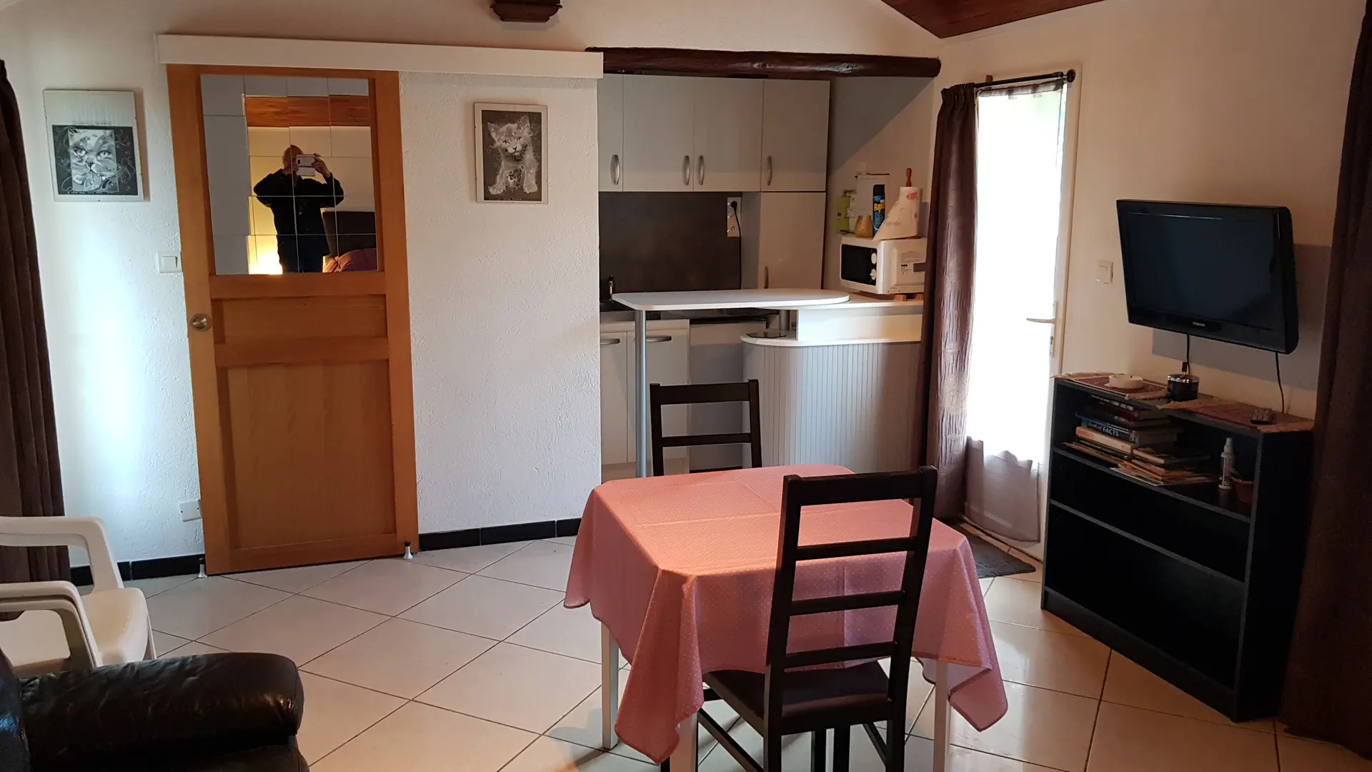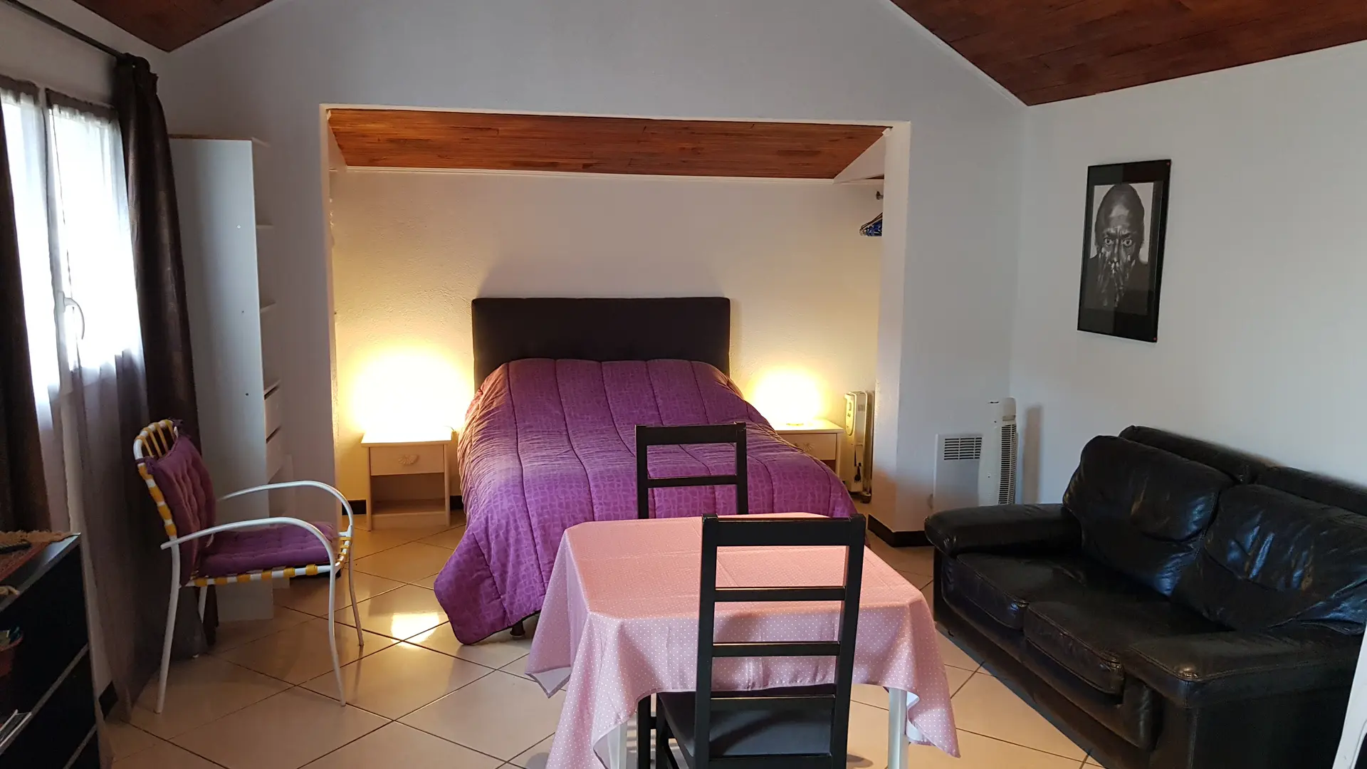Agradable casita unifamiliar con todas las comodidades, dormitorio con cama de 140 cm, cocina americana equipada, cuarto de baño, jardín y aparcamiento.