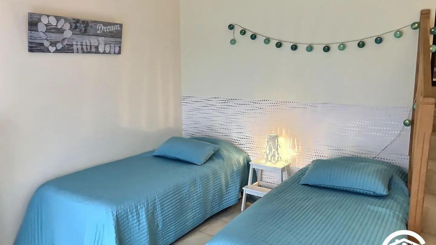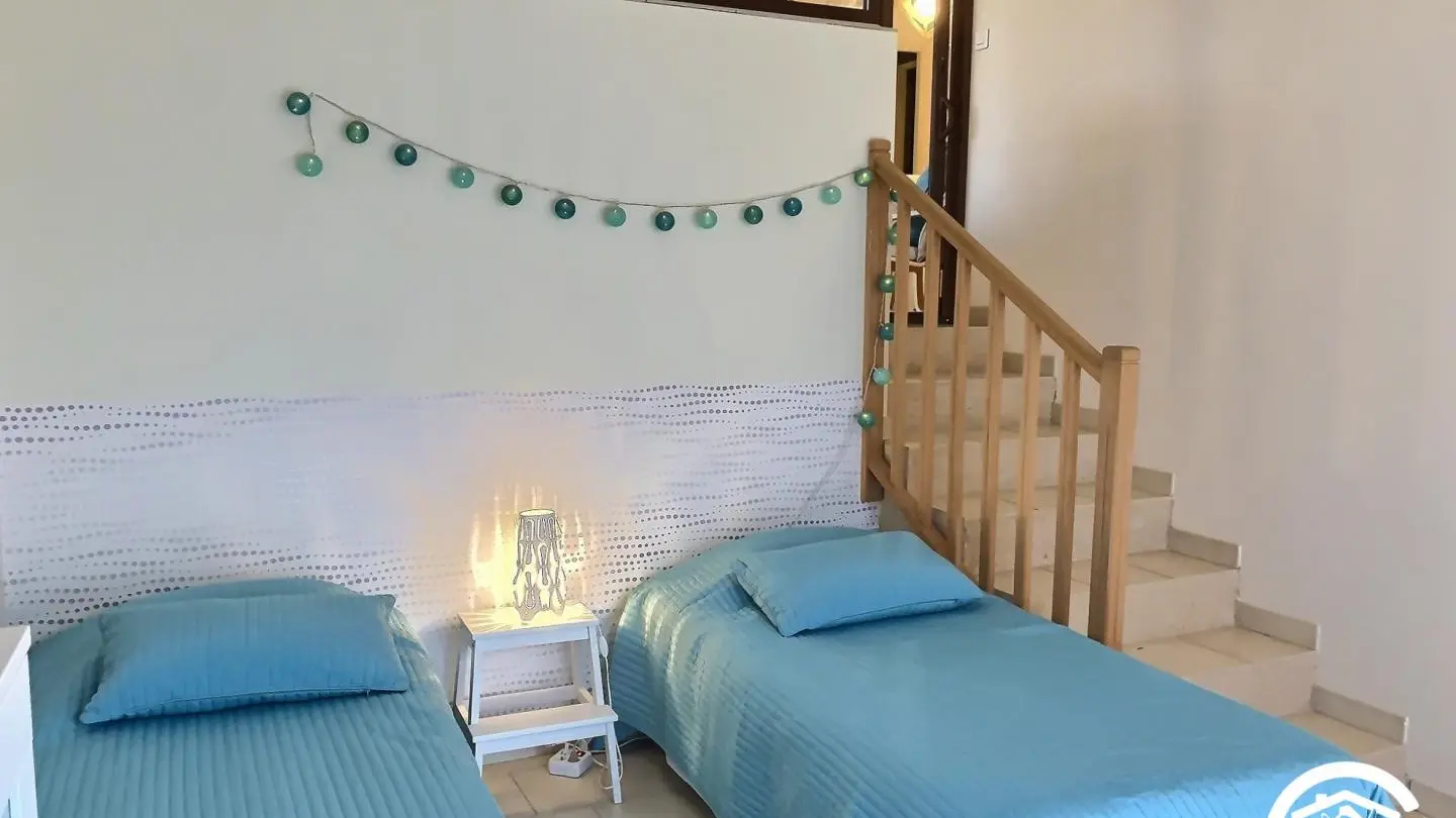 Un dormitorio debajo de la sala de día con 2 camas individuales de 90x190cm.