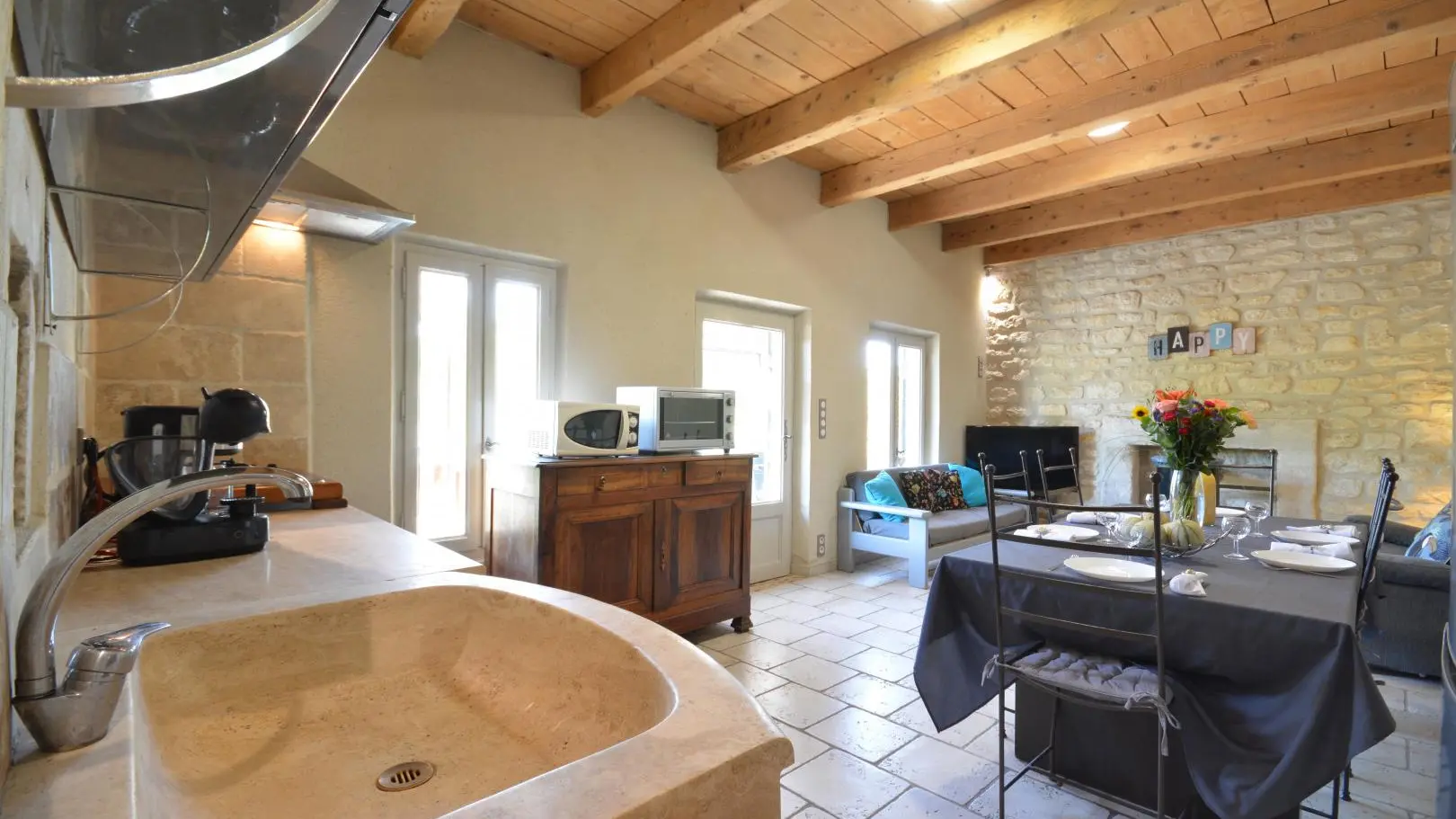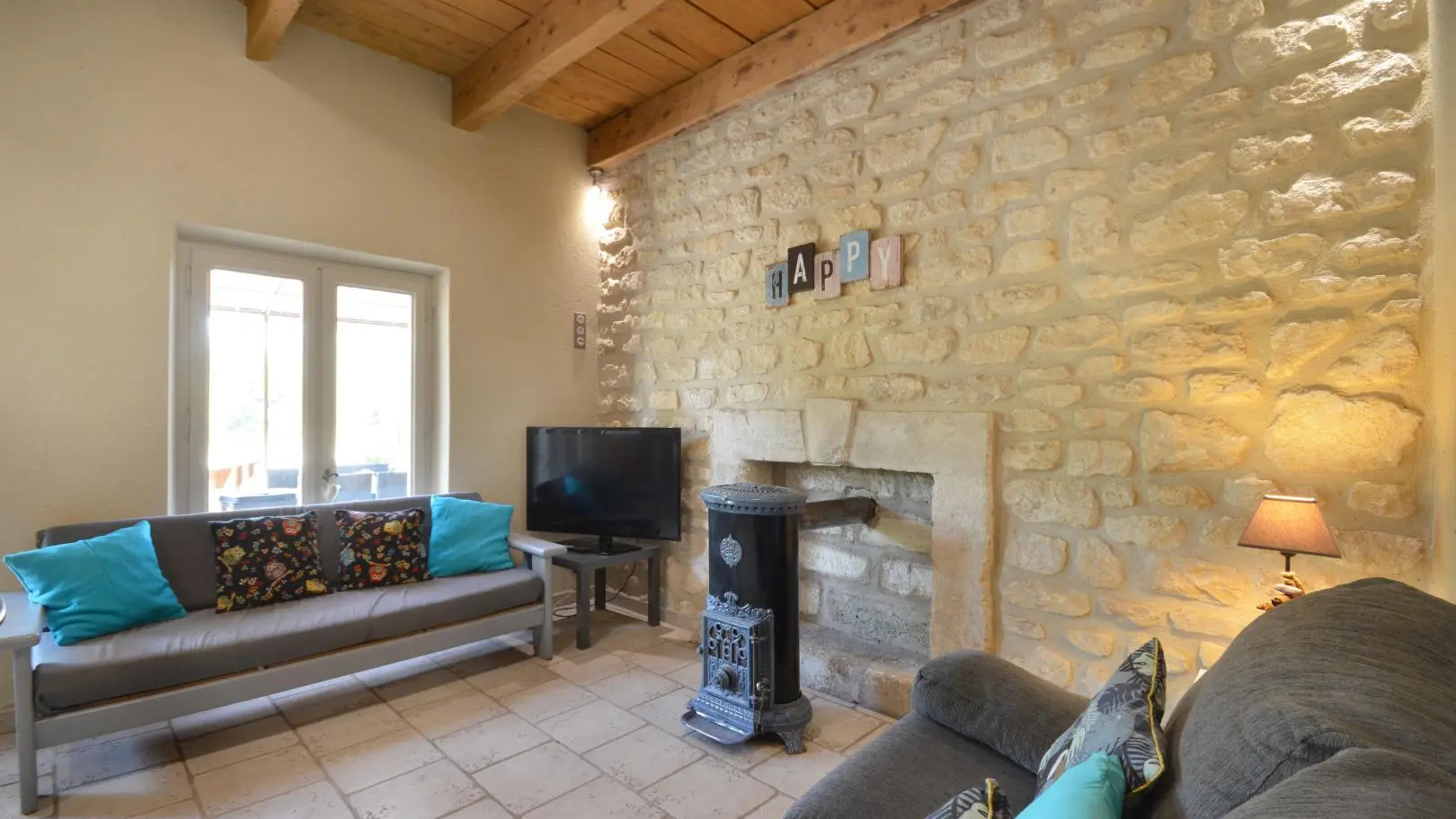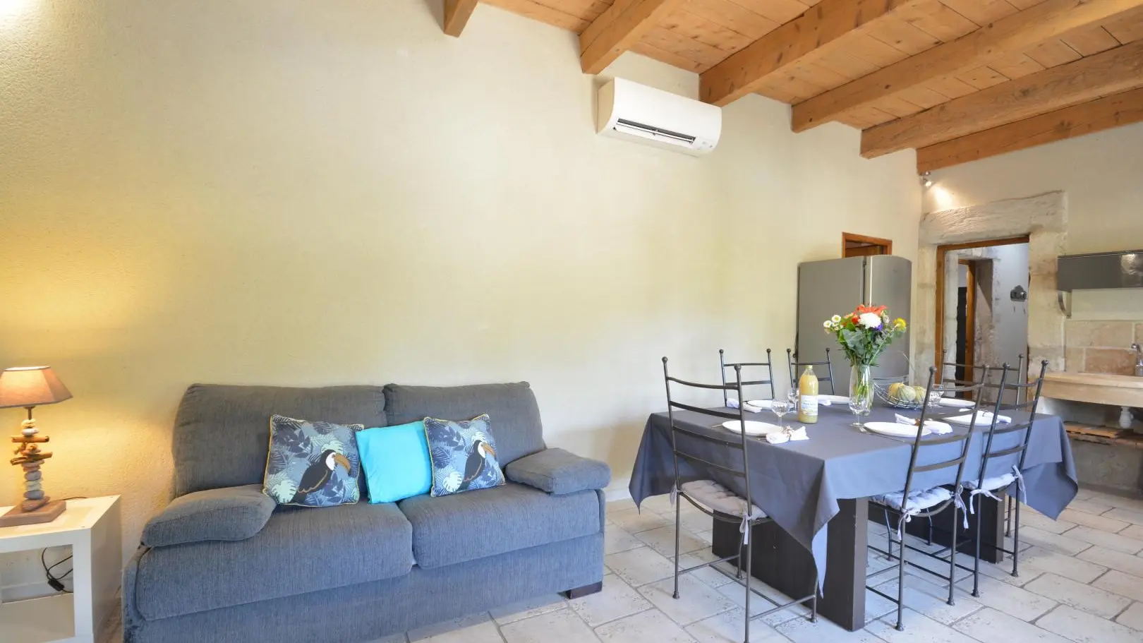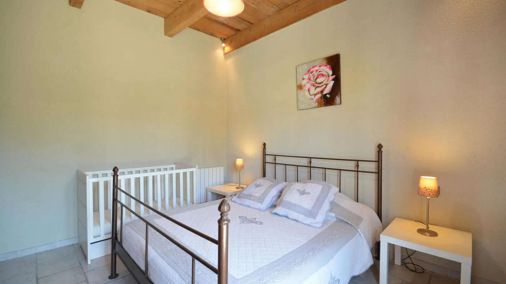 3 dormitorios cada uno con una cama doble (una de ellas de 160x200 cm y un dormitorio con aire acondicionado). Amplio cuarto de baño con ducha de obra abierta, banco de piedra, calentador de toallas y WC.