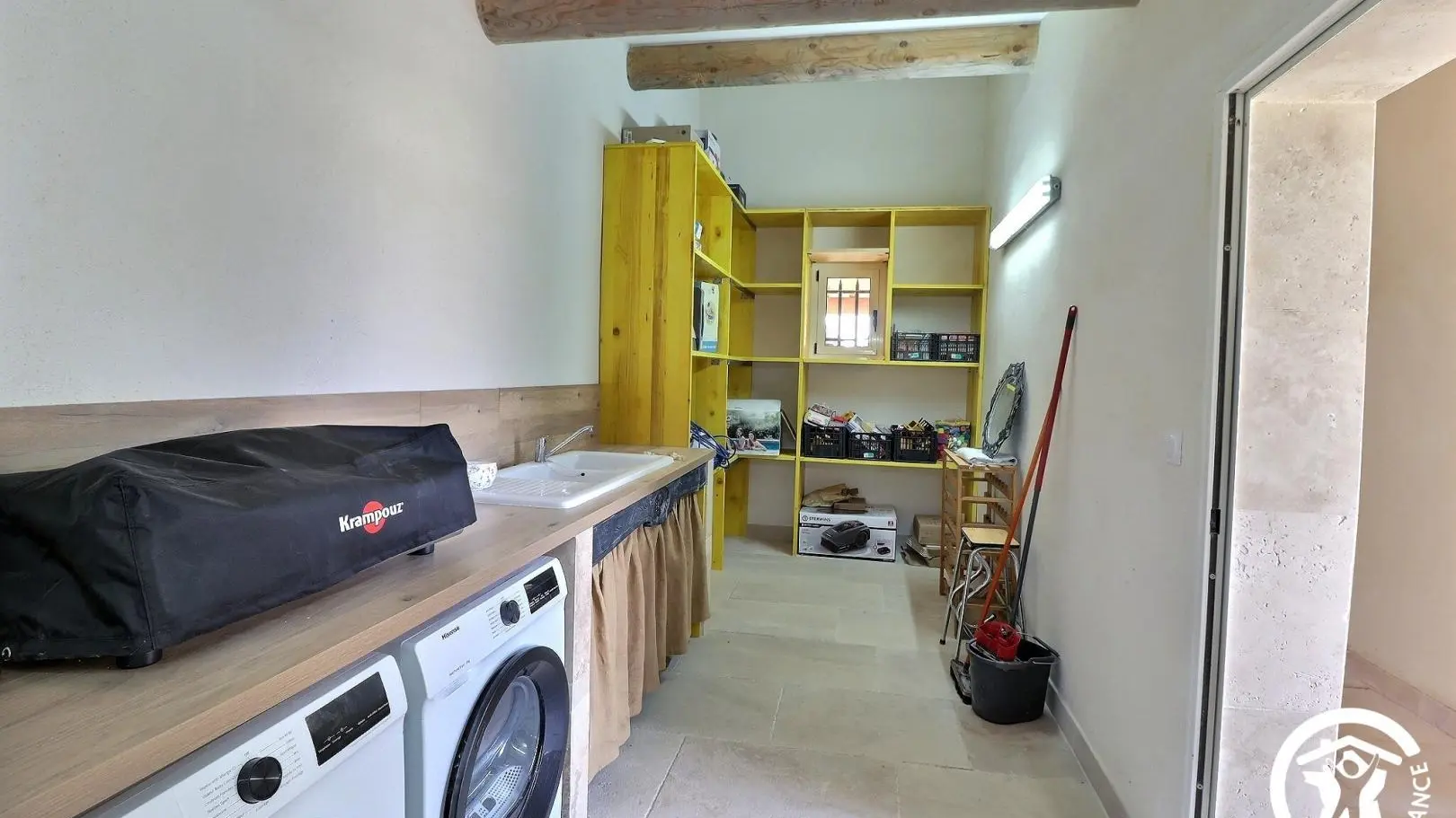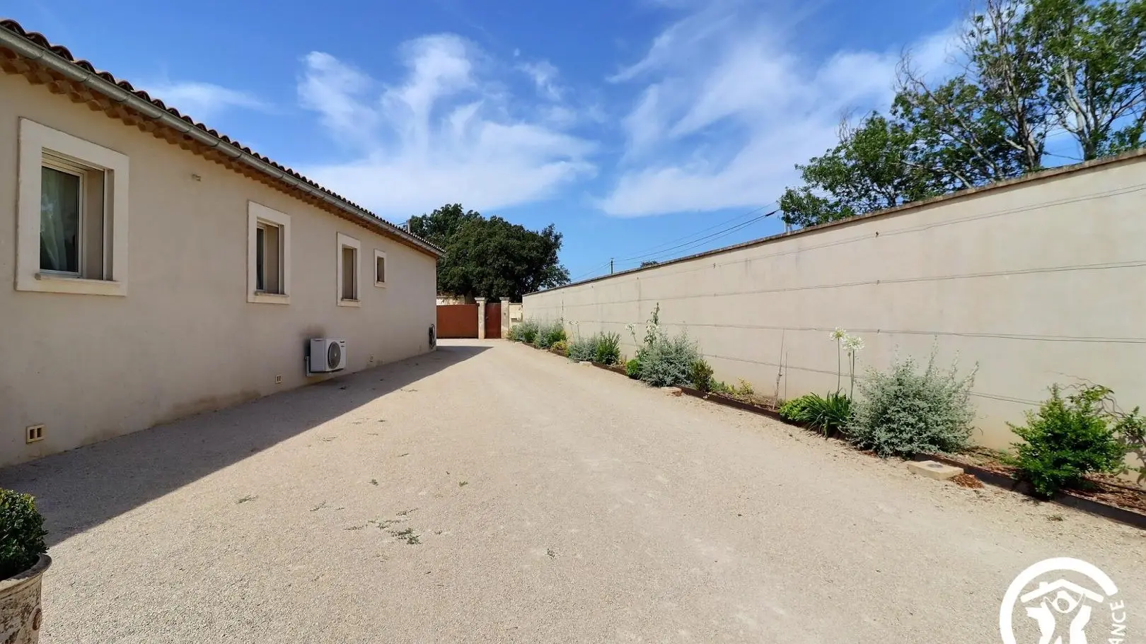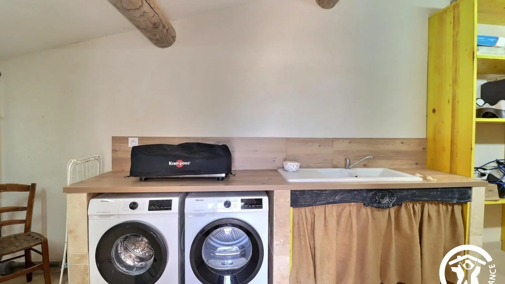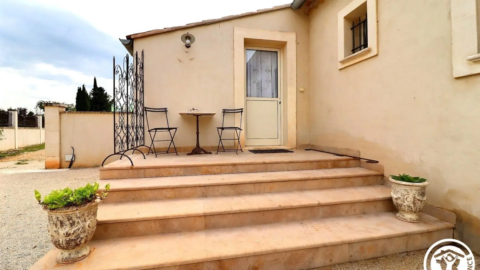 En el exterior, podrá disfrutar de aparcamiento privado cubierto, una terraza cubierta, una pequeña piscina privada climatizada (2,2m x 4m, profundidad 1,5m, climatizada de abril a octubre) para relajarse con total privacidad, y un entorno rural preservado, entre campos y olivos.
