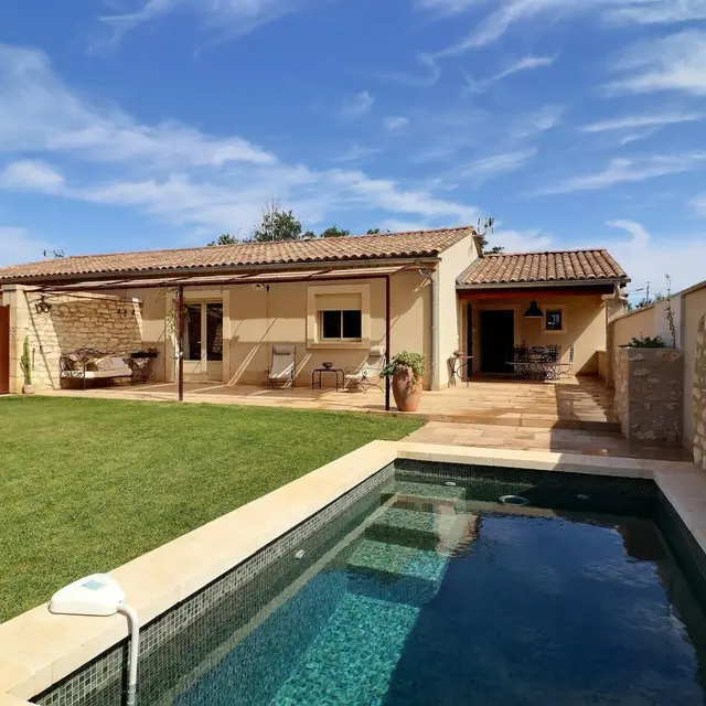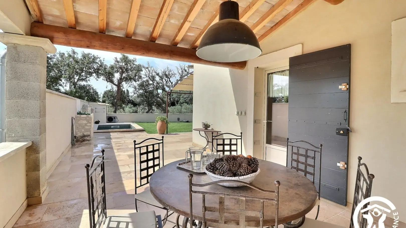 Elegancia y naturaleza en el corazón de los Alpilles en esta casa rural para 4 a 6 personas con terraza privada, jardín y piscina climatizada.