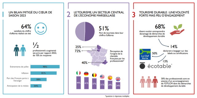 3 . Une vigilance accrue sur les nuisances liées au tourisme à Marseille : les Marseillais pensent que le tourisme a un impact négatif sur la propreté des espaces publics et la protection de l’environnement.
