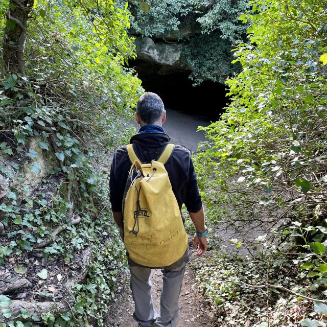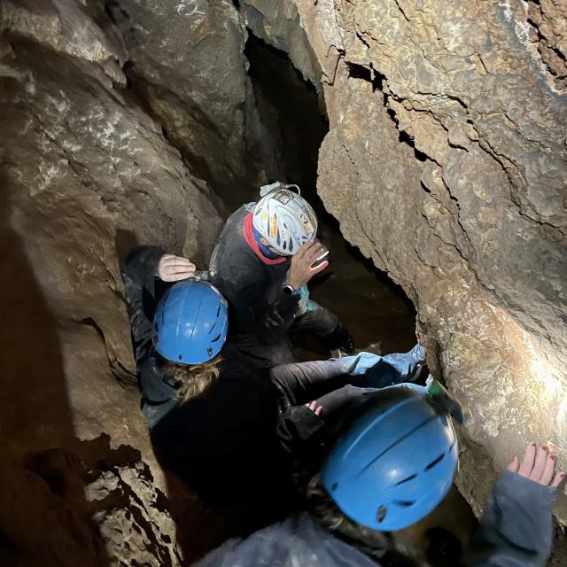 Déjà en tenue de sport avec nos baskets de compet, Romuald nous fournit notre équipement : une combinaison et un casque avec une lampe intégrée que l’on enfilera sur le lieu de l’activité. On comprendra alors très vite qu’être à l’aise dans sa tenue est une nécessité.