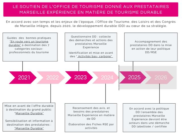 L’Office de Tourisme des Loisirs et des Congrès de Marseille a pour mission de vous accompagner dans votre démarche de transition. Des formations et outils sont en cours de construction pour vous aider à concrétiser votre projet.
