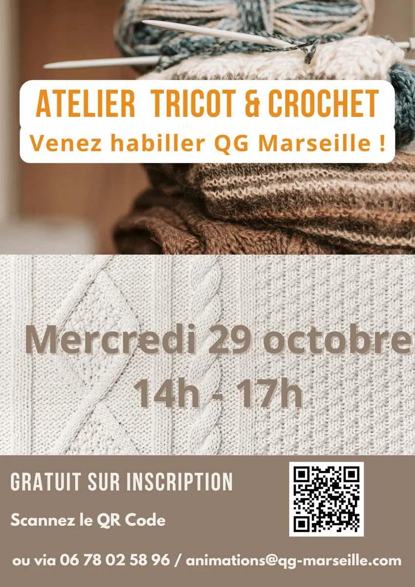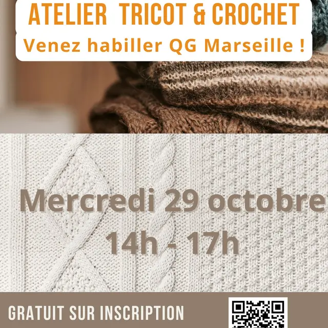 QG Marseille fournit la laine et le goûter pour assurer une ambiance cocooning. Ramenez simplement vos aiguilles ou votre crochet (votre laine si vous le souhaitez).