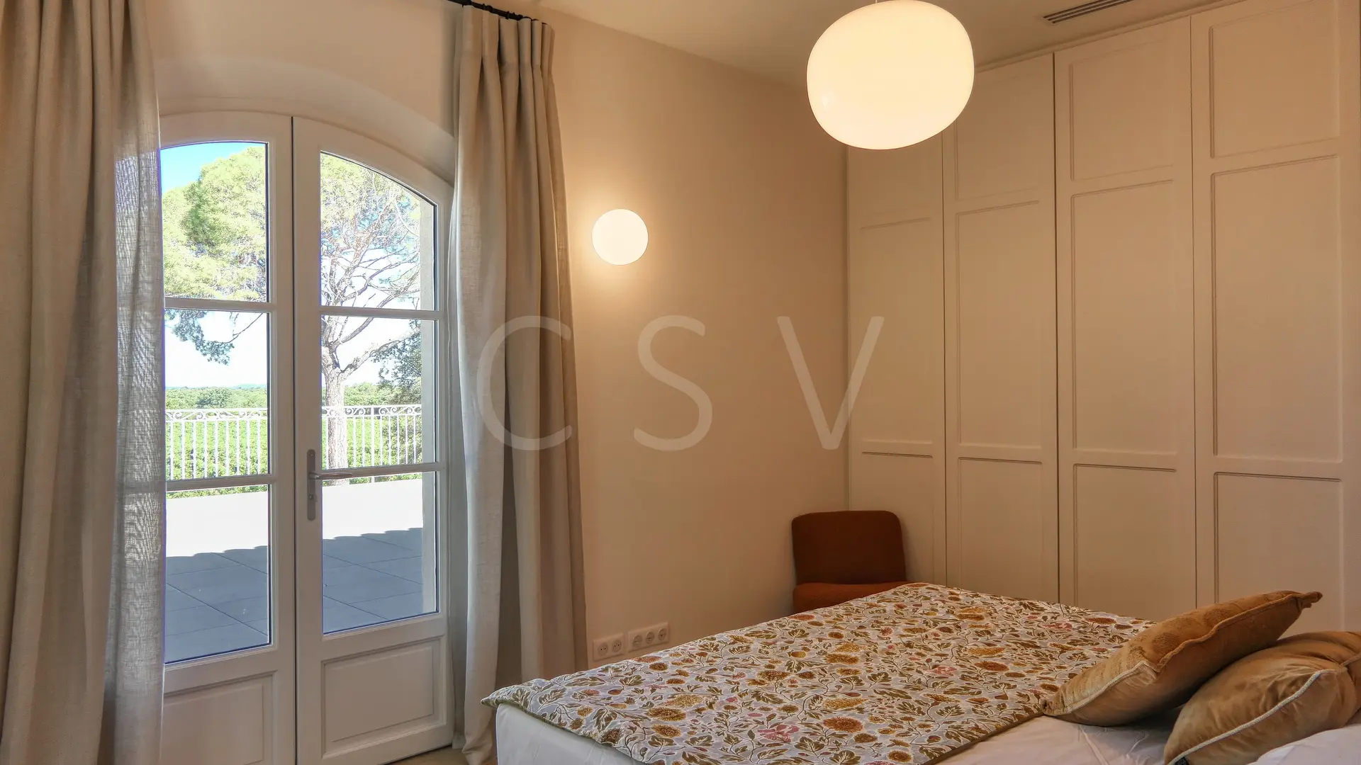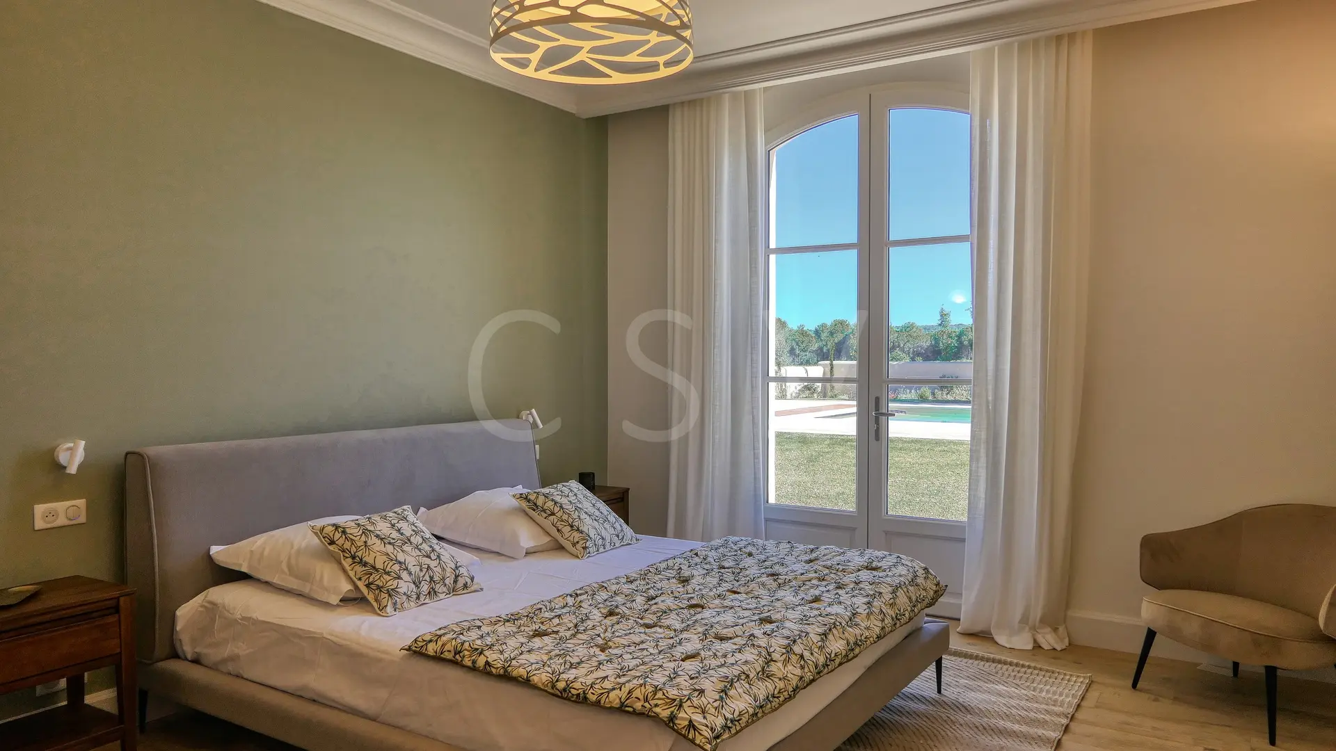 La Chambre du rez-de-chaussée est accessible aux personnes à mobilité réduite. Les autres chambres se situent à l’étage. Au total 8 suites équipées d’un lit king size en 180 cm et disposant chacune d’une télévision écran plat, d’un grand dressing et salle de bain privative.