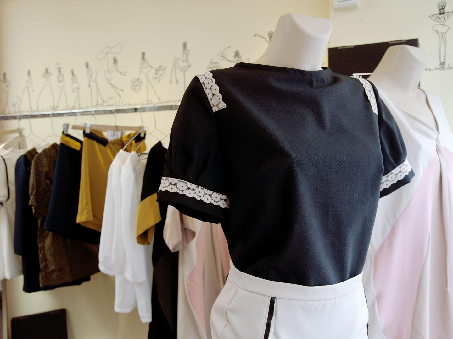 Manou Albertini est une créatrice de mode qui propose une large gamme de vêtements et d'accessoires sur la thème de la midinette, son égérie : son univers est donc gourmand, ingénu, c'est celui d'une femme-enfant.