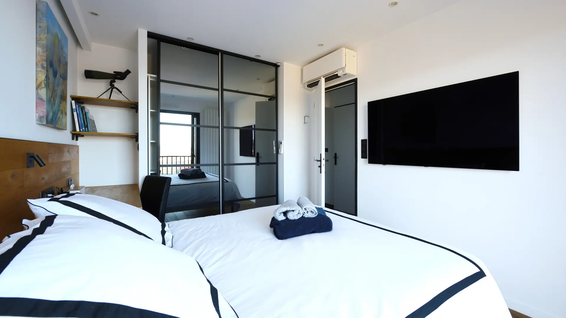 L’appartement 2 pièces "Aix Rooftop", rénové entièrement en 2022, est unique avec sa situation en centre-ville, son confort, sa terrasse au 14ème étage et sa vue panoramique. Il a été classé Meublé de Tourisme 5 étoiles par Atout-France. Garage inclus.