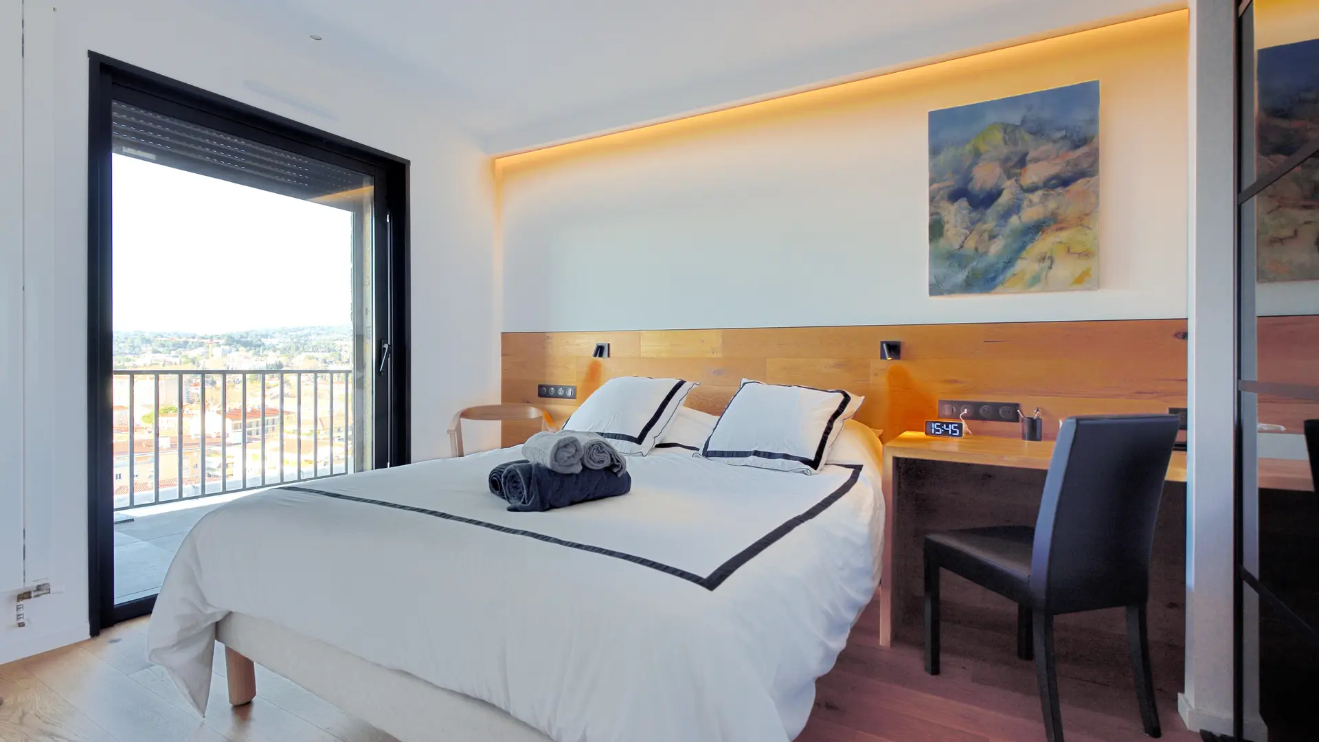 Aix RoofTop est au 14ème étage et dernier étage du plus haut immeuble du centre ville tout en étant au calme. L’appartement peut accueillir de 1 à 4 voyageurs.