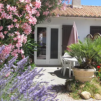 LE PALMIER appartement 4 personnes en rez de jardin de villa PARKING privé CLIMATISATION WIFI à 200 m de la plage et des commerces.