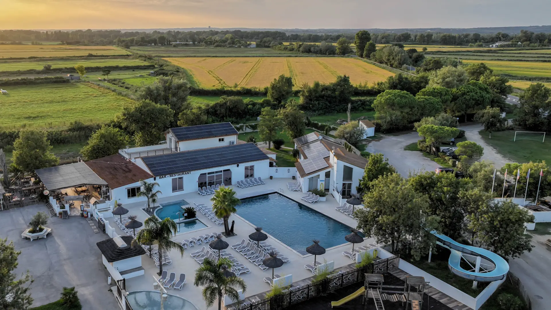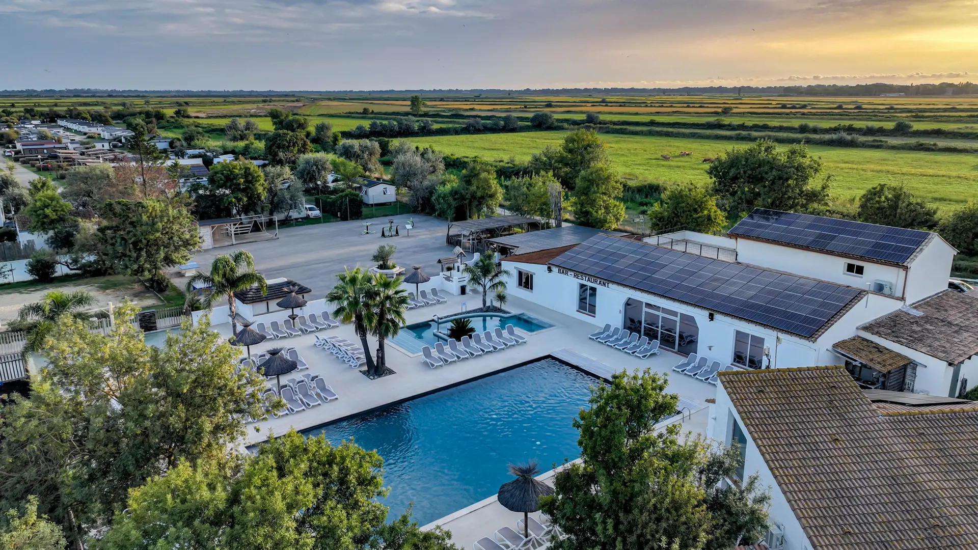 A moins de 15 km de la cité arlésienne et à 30 minutes des Saintes Maries de la Mer, le camping Crin Blanc vous reçoit dans un site d'exception, partie intégrante du Parc Naturel Régional de Camargue. Sur place vous attendent des parcelles verdoyantes et spacieuses, des emplacements avec tonnelles privatives, et des hébergements locatifs de qualité. De nombreux services agrémentent votre séjour : établissement 3 étoiles, le camping Crin Blanc vous propose notamment un bar-restaurant, des aires de jeux et terrains de sport, le wifi sur l'intégralité du site, ainsi que de nombreux services de prêt et de location (tv, réfrigérateurs, draps). Un remarquable espace aquatique vous ouvre ses portes tous les jours dès le mois d'avril : son bassin de nage et son bassin de détente, son toboggan, sa pataugeoire et sa vaste plage équipée de transats font le bonheur de toute la famille. De nombreuses activités peuvent être pratiquées sur le site du camping et aux alentours immédiats. Les mois d'été sont particulièrement animés, avec le club enfant, les tournois sportifs, las animations aquatiques et les soirées à thèmes. A quelques centaines de mètres du camping, manades et centres équestres vous proposent des balades en calèche et randonnées à cheval au cœur de la Camargue.