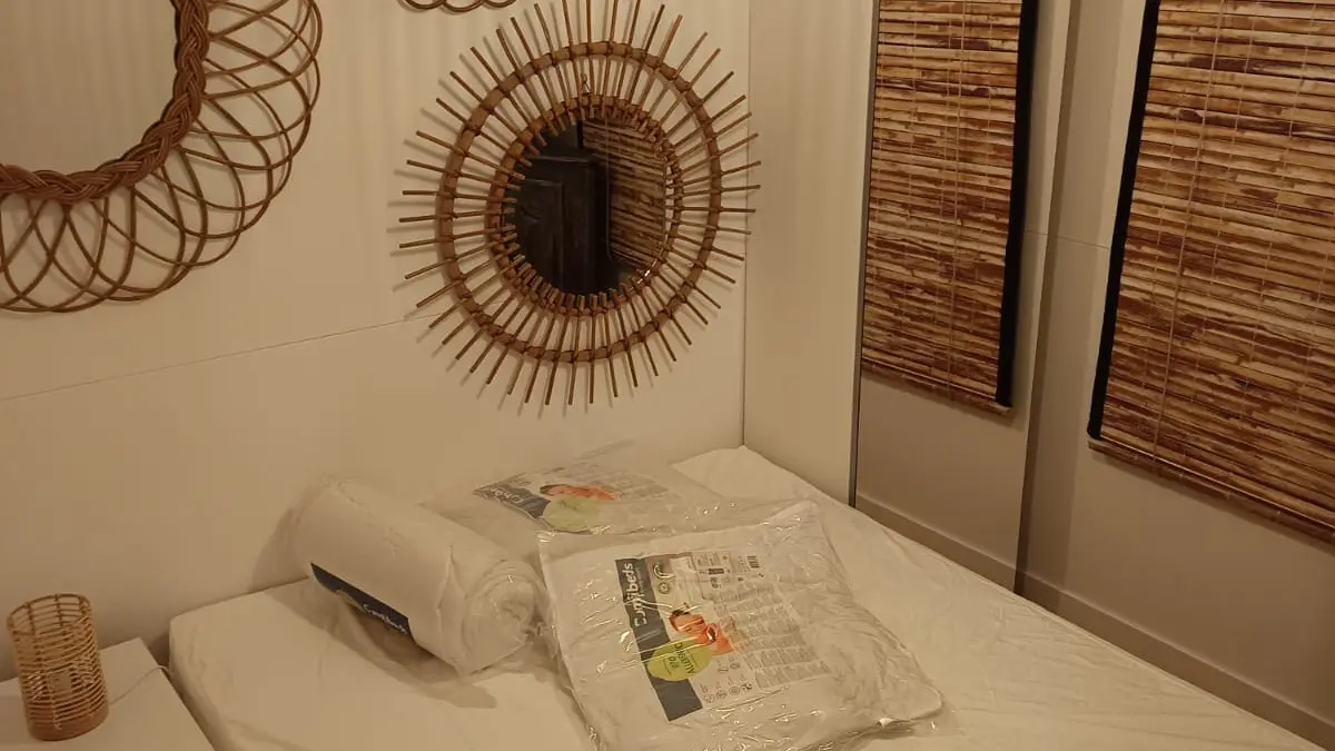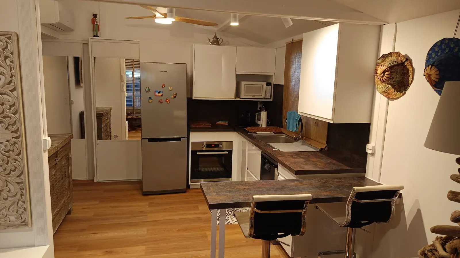 2 chambres avec lits doubles, cuisine équipée, climatisation, Wi-Fi, TV, terrasse modulable, jardin privatif et parking sécurisé.