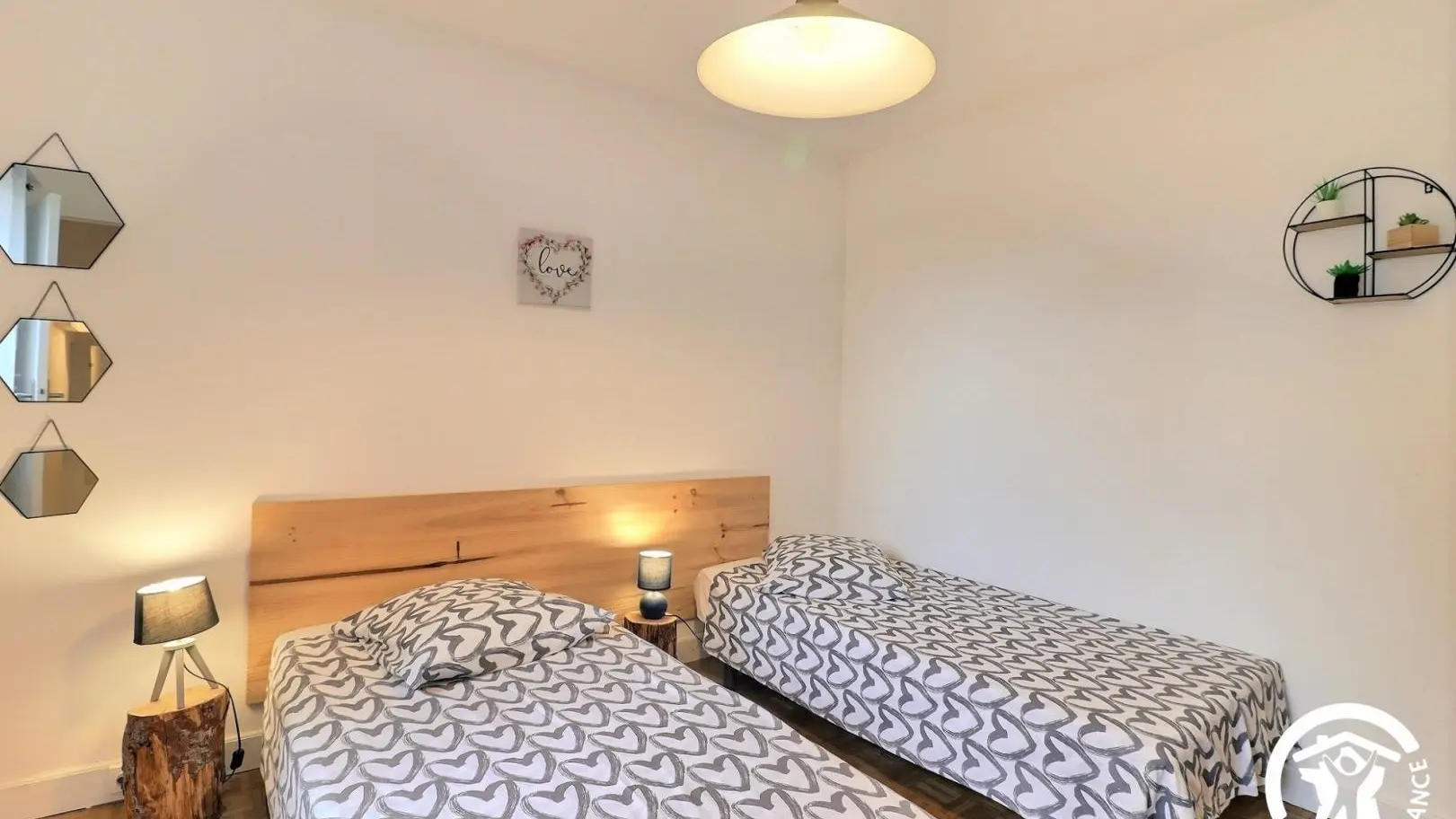 - 2ème chambre avec 2 lits 90x190cm, chaise, penderie et petit meuble de rangement. Au 1er étage, 3ème chambre avec 1 lit 2 personnes 140x190cm, miroir, petit meuble de rangement et bout de lit. Piscine (alarme) partagée avec les propriétaires 10x5m, profondeur de 0.90 à 2,2m, accessible du 1er mai au 31 octobre à partir de 8h et pas de baignade la nuit.