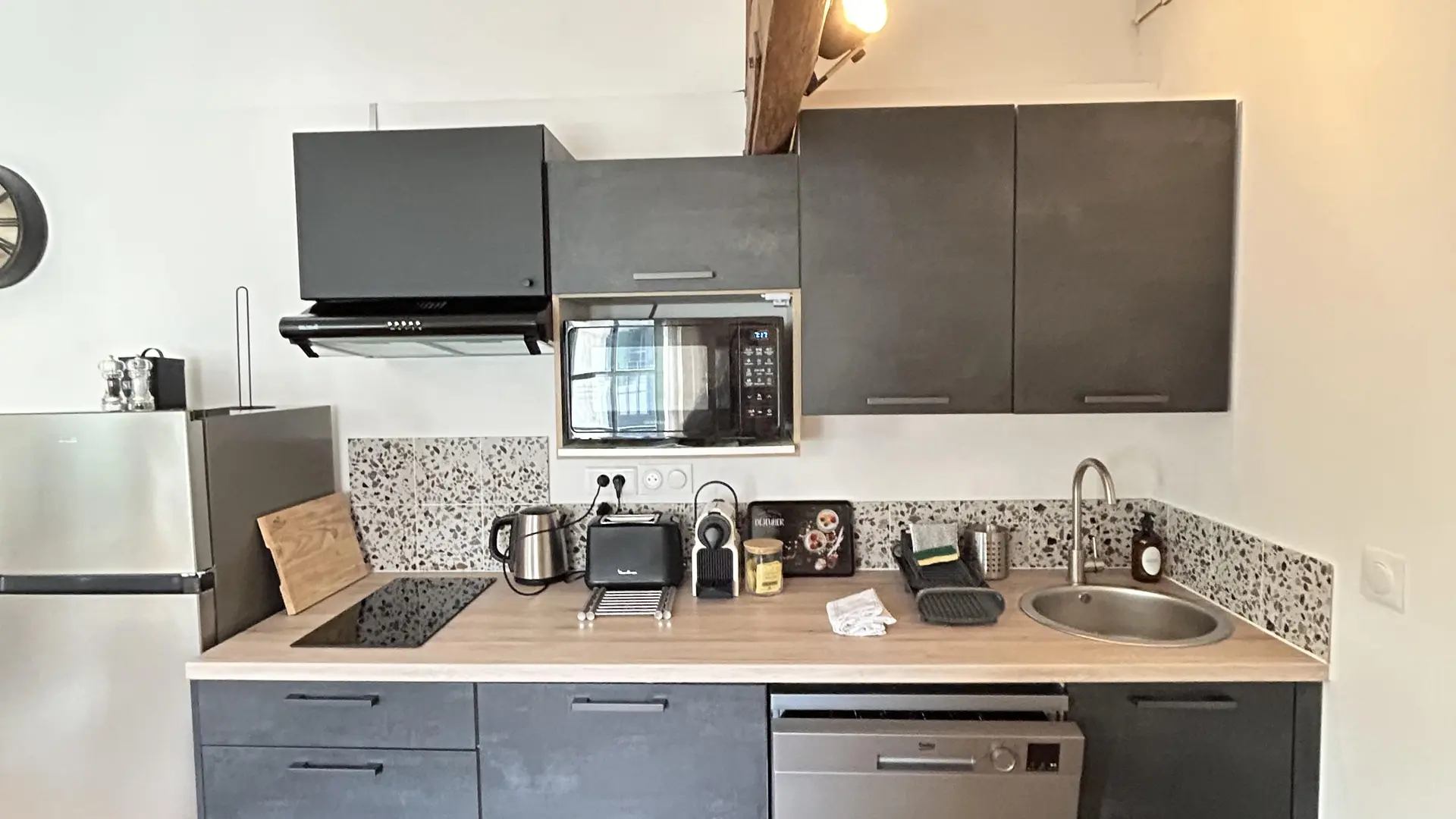 - Une cuisine toute équipée, (Réfrigérateur-congélateur, plaques de cuisson, bouilloire, lave-vaisselle, machine à café nespresso, vaisselle et accessoires de cuisine etc...)