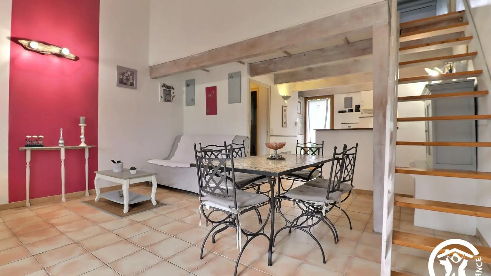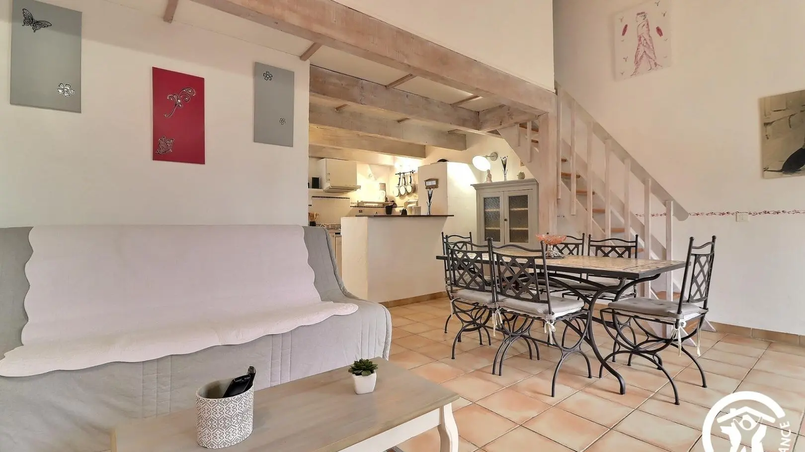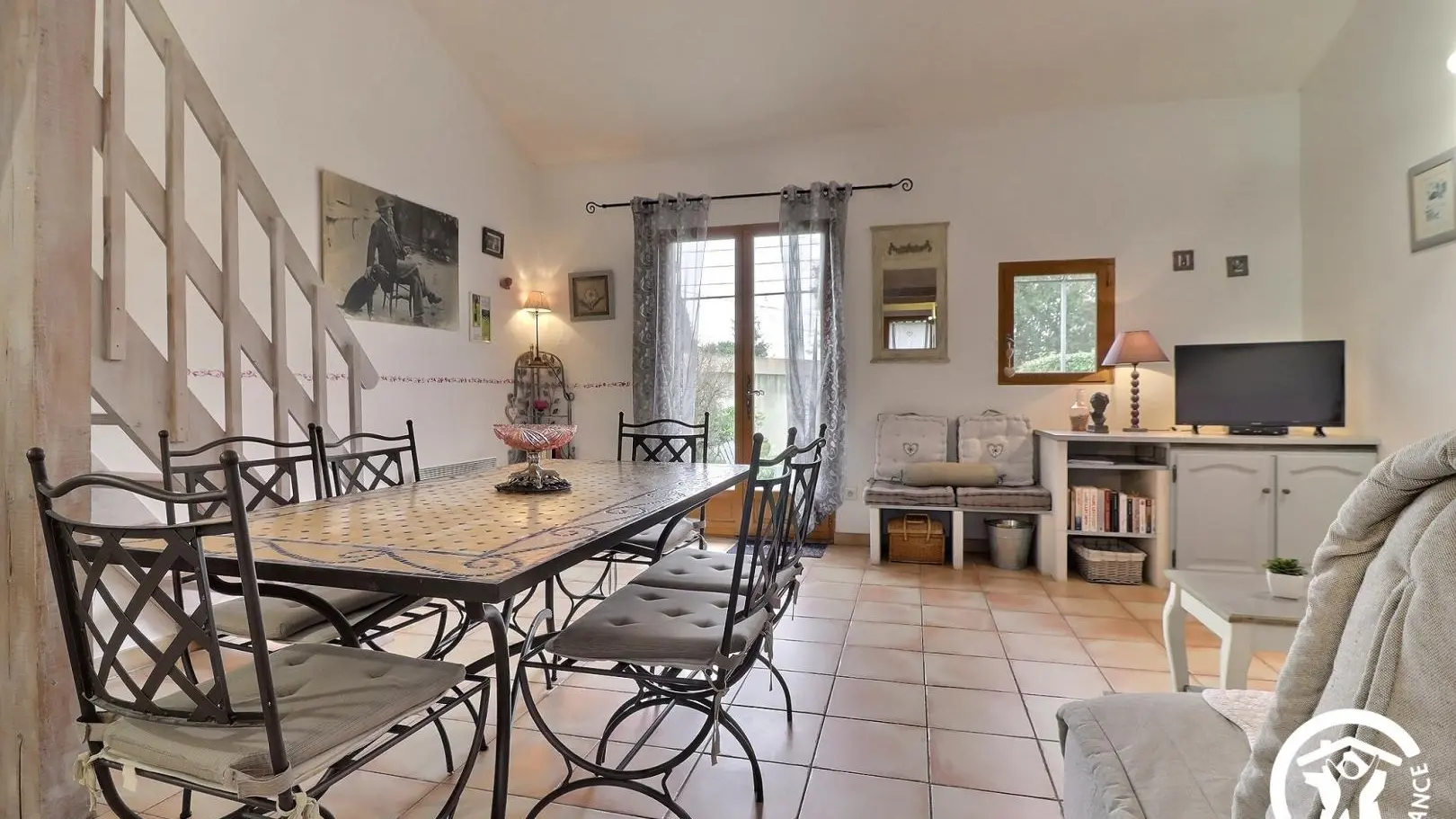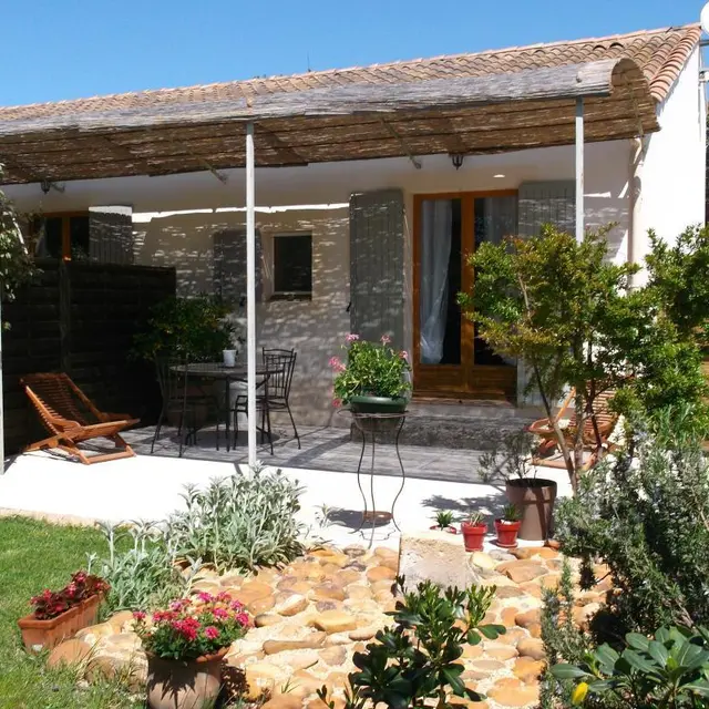3 charmants gîtes mitoyens plein sud avec terrasse et cour privée situés en campagne à 1 km du village de Maillane, à proximité des Baux de Provence et de St Rémy . Le gîte "Bouquet 3" mitoyen au Bouquet 2 donne également à l'Est/Sud Équipements communs : Piscine des propriétaires ( 10x5, profondeur de 1 m à 1.80 m - clôturée ) mise à disposition à titre gracieux du 15/05 au 30/09, du lundi au vendredi (10h/12h et 14h/16h). Parking sur la propriété fermée. Jardin commun de 400 m² avec aire de jeux pour enfants. Au rez de chaussée : séjour avec canapé, télévision écran plat, lecteur DVD, espace repas confortable.