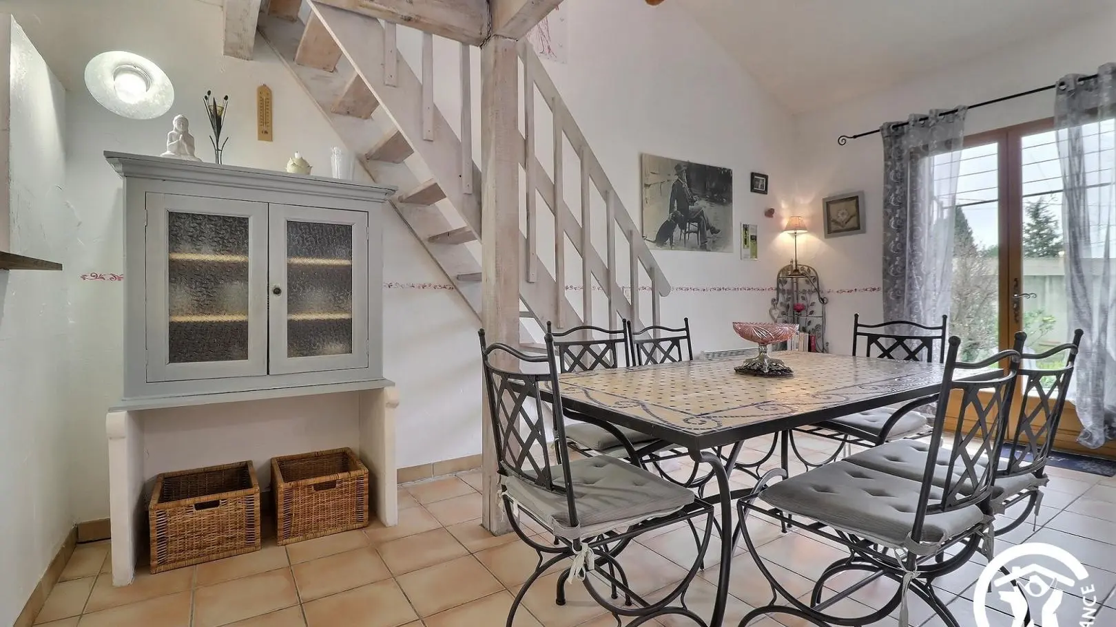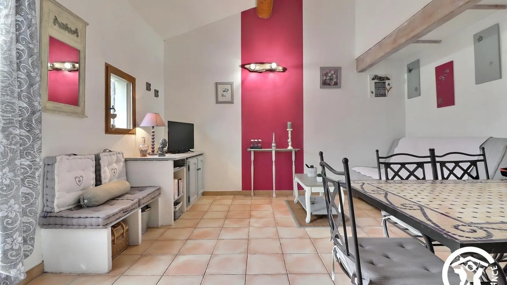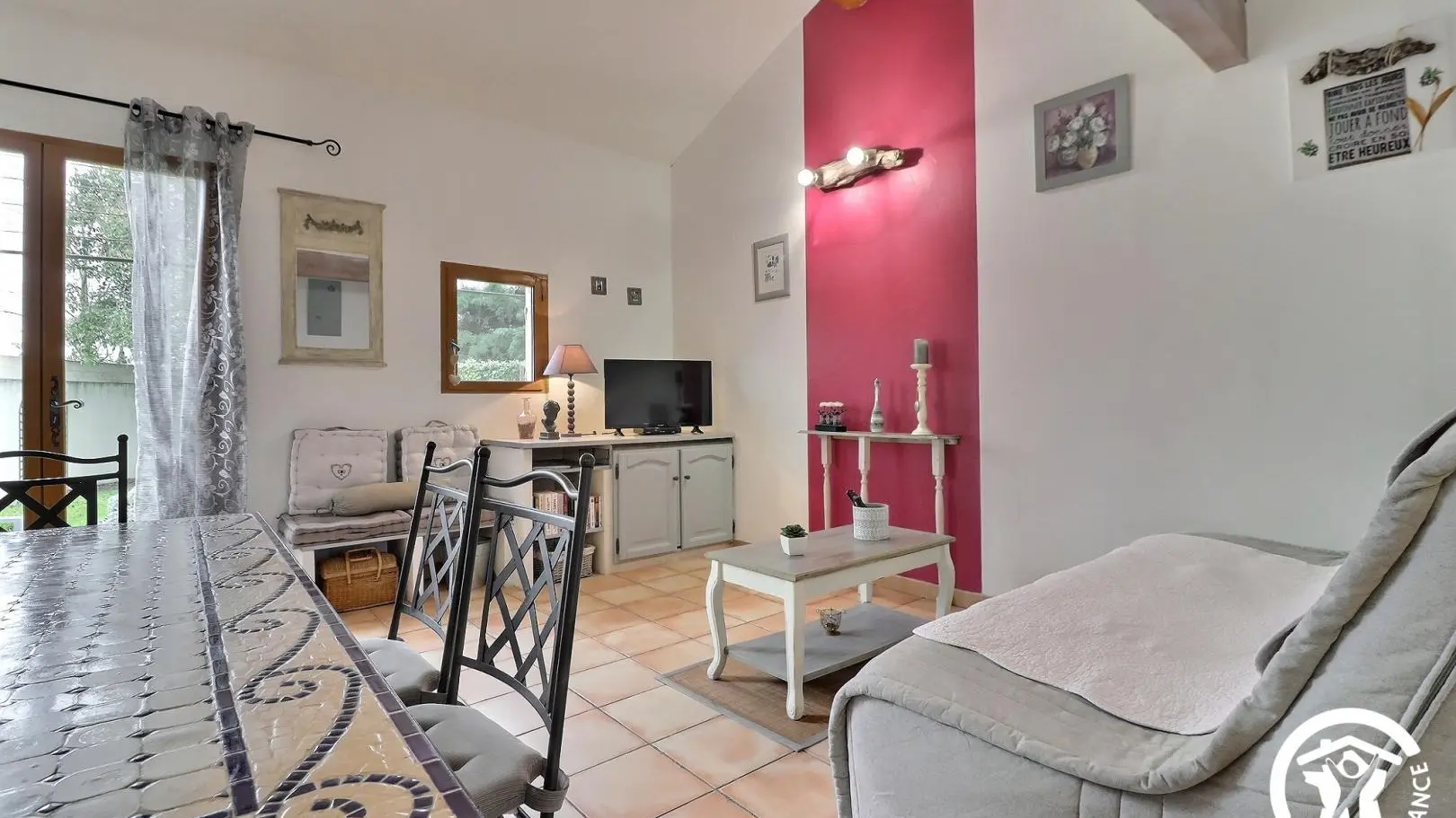 3 charmants gîtes mitoyens plein sud avec terrasse et cour privée situés en campagne à 1 km du village de Maillane, à proximité des Baux de Provence et de St Rémy . Le gîte "Bouquet 3" mitoyen au Bouquet 2 donne également à l'Est/Sud Équipements communs : Piscine des propriétaires ( 10x5, profondeur de 1 m à 1.80 m - clôturée ) mise à disposition à titre gracieux du 15/05 au 30/09, du lundi au vendredi (10h/12h et 14h/16h). Parking sur la propriété fermée. Jardin commun de 400 m² avec aire de jeux pour enfants. Au rez de chaussée : séjour avec canapé, télévision écran plat, lecteur DVD, espace repas confortable.