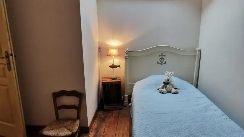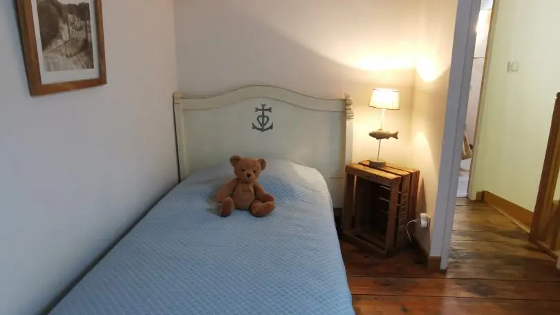 A l'étage, donnant sur la pièce de jour, une chambre avec lit 2 personnes (fenêtre de toit). Chambre avec 2 lits 1 personne (fenêtre de toit). Lit parapluie et chaise haute sur demande.