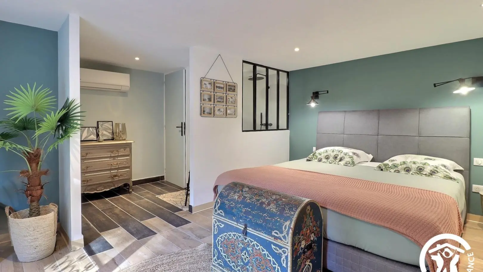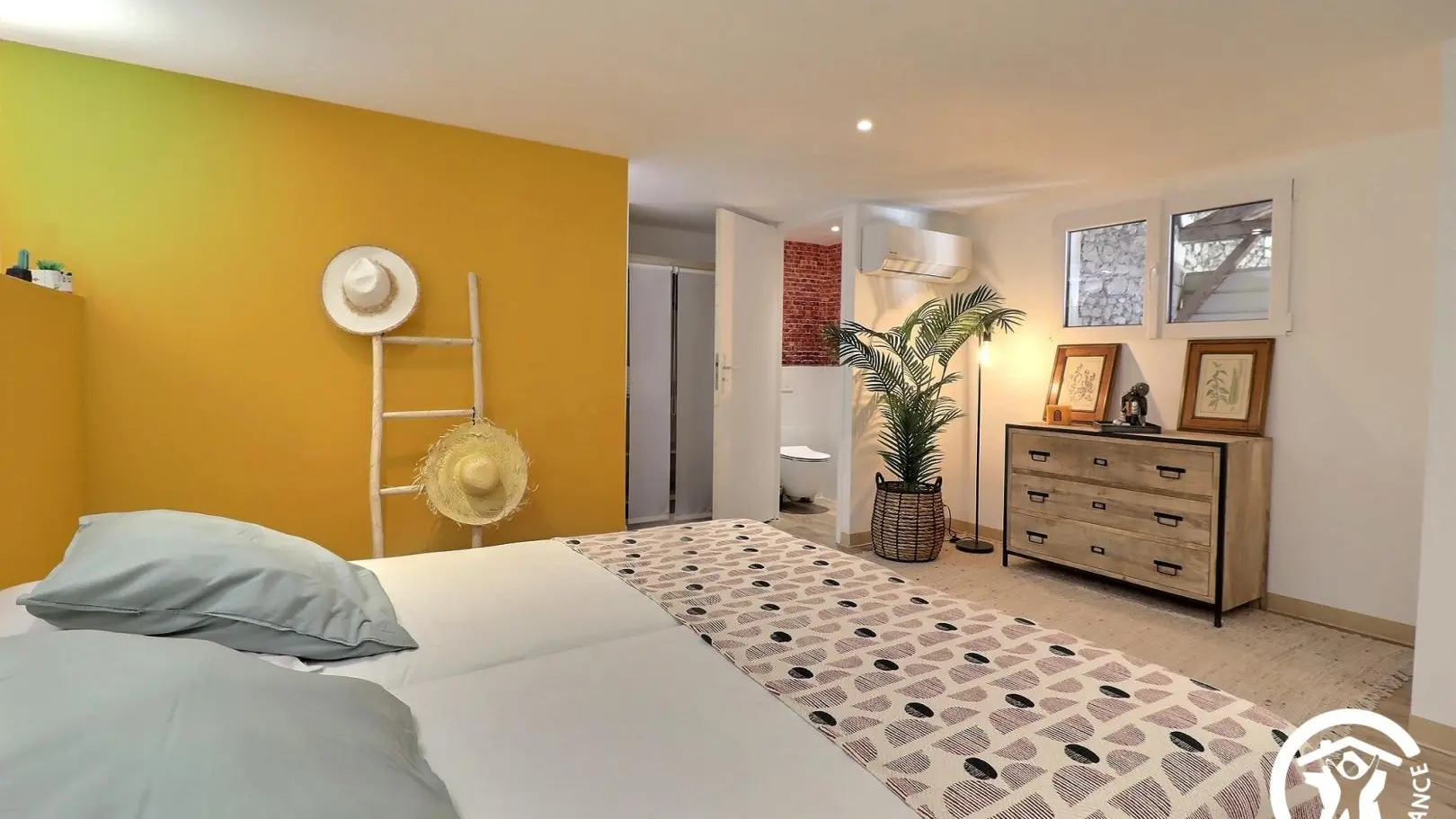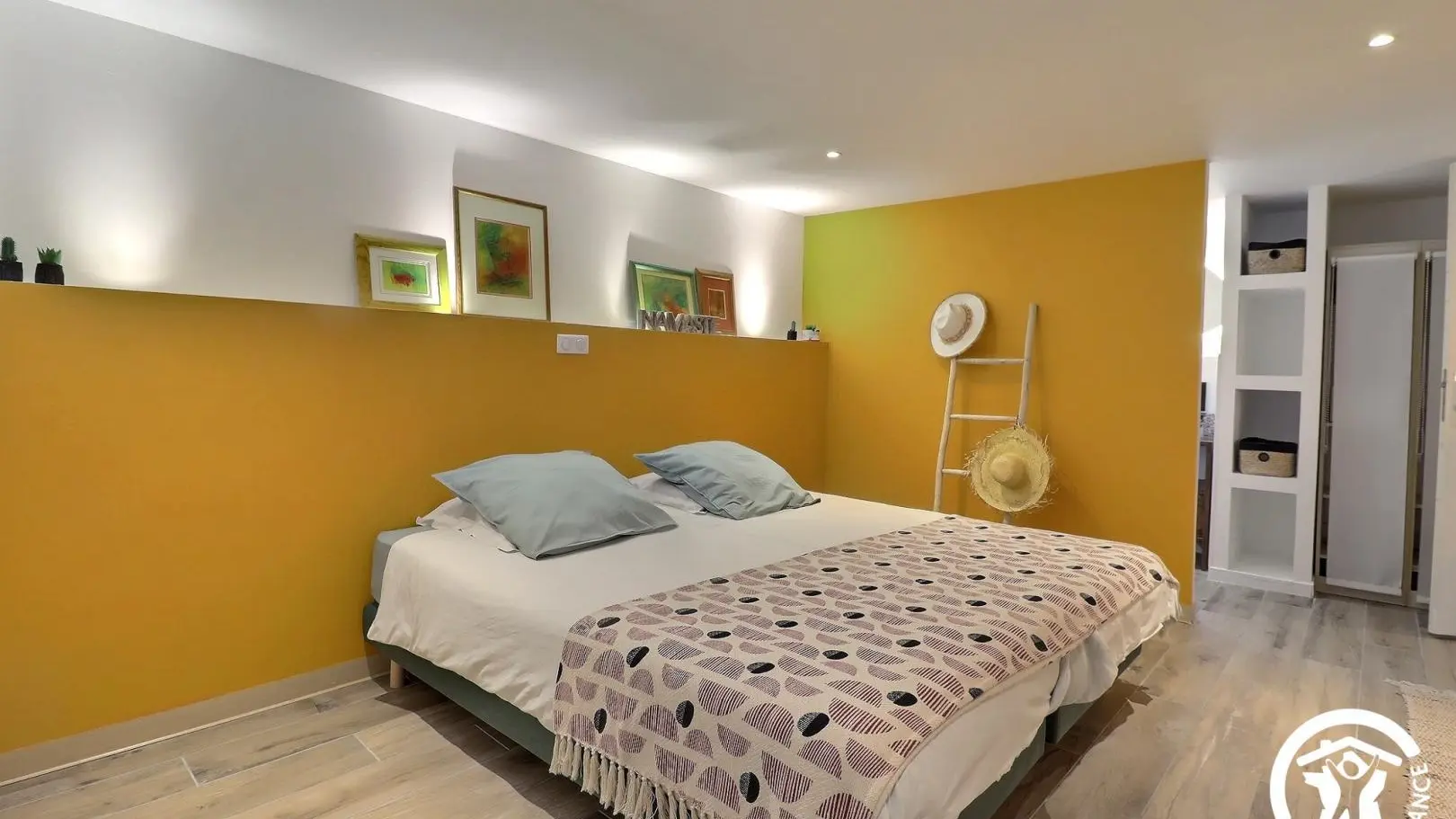 - Chambre avec 1 lit 180x200cm, salle d'eau privative avec douche à l'italienne, vasque et WC indépendant.