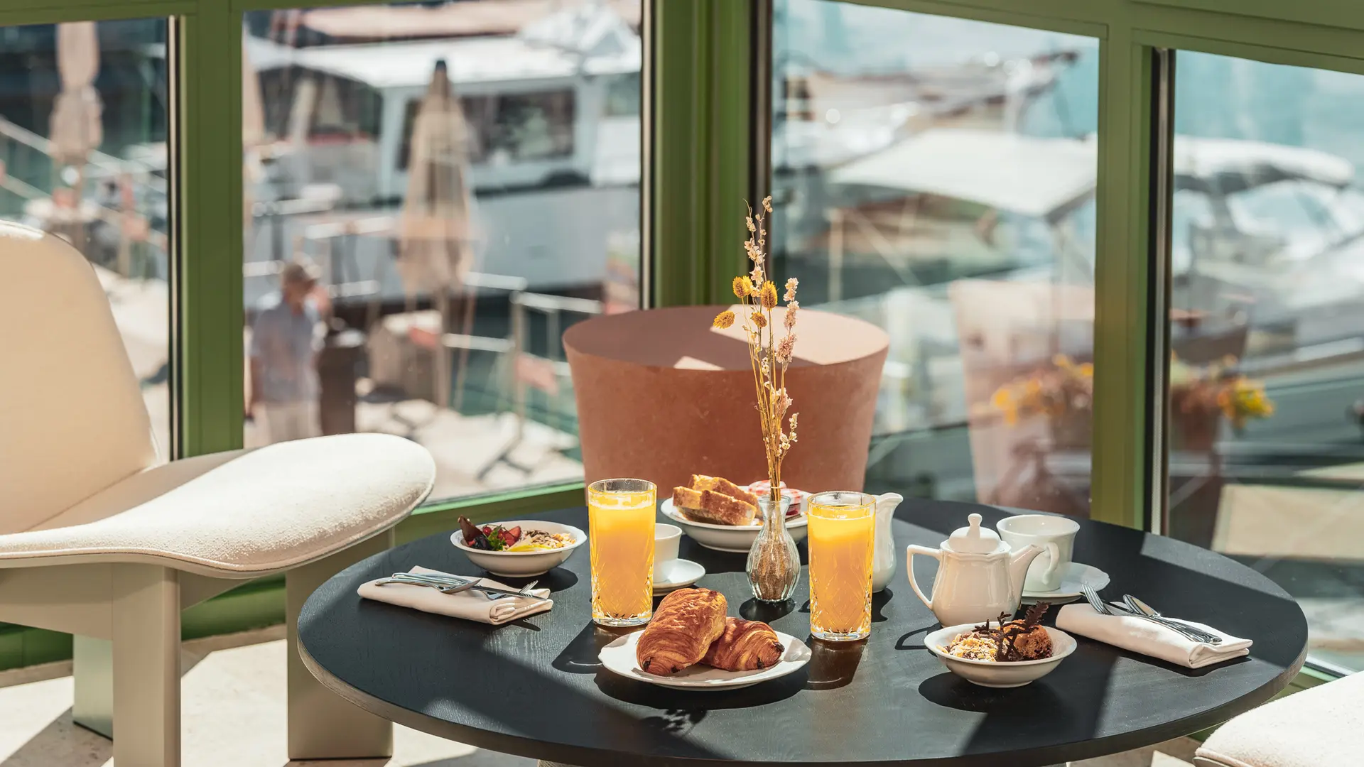 30 chambres et suites, de belles vues et de nombreux balcons. Un salon au-dessus des voiles du port, un service attentionné et la plage à 50 mètres.