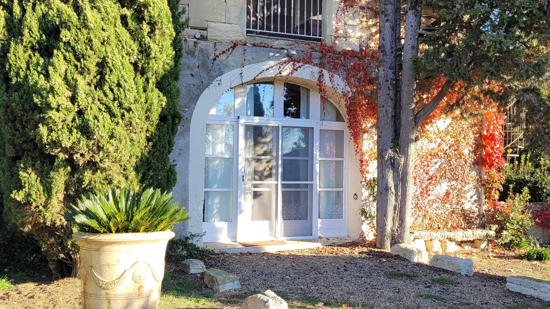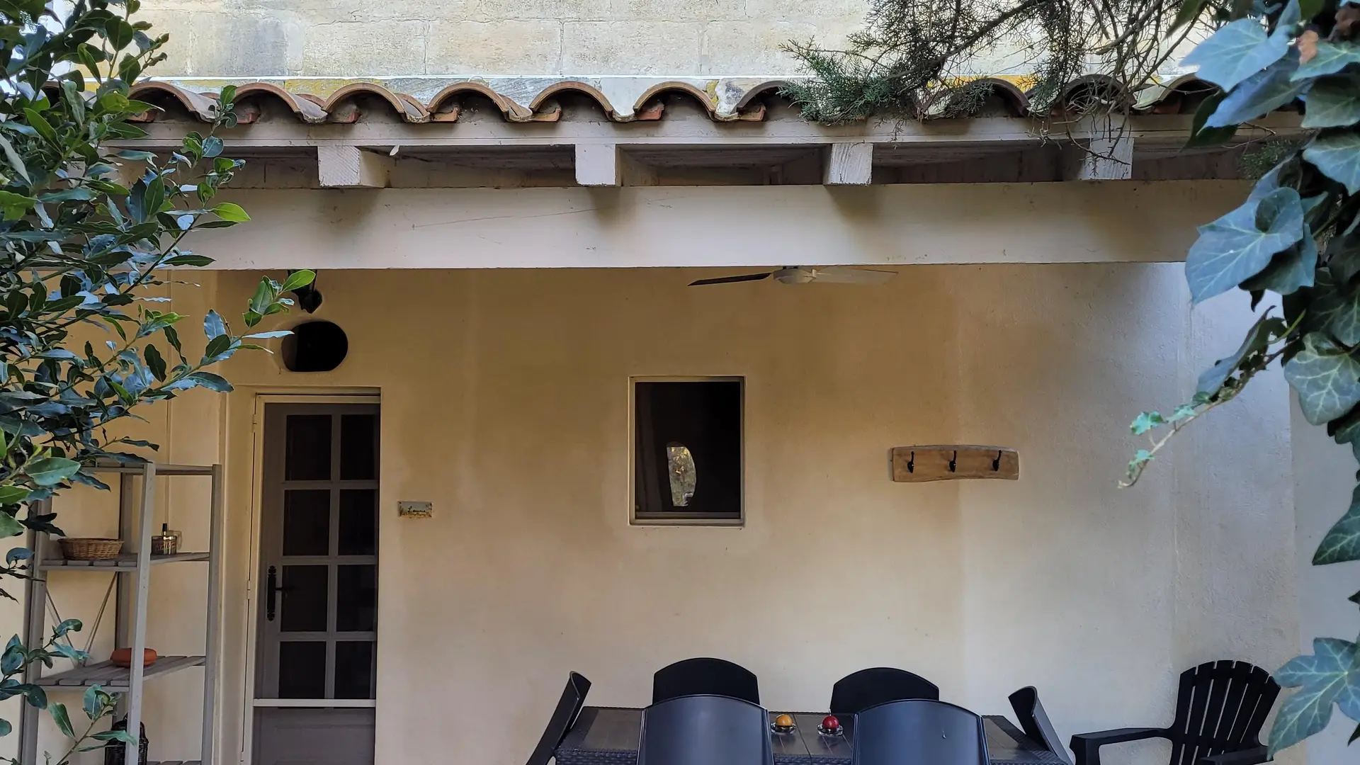 Terrasse fort agréable donnant sur les jardins, idéal pour savourer un séjour au calme dans un mas de caractère.