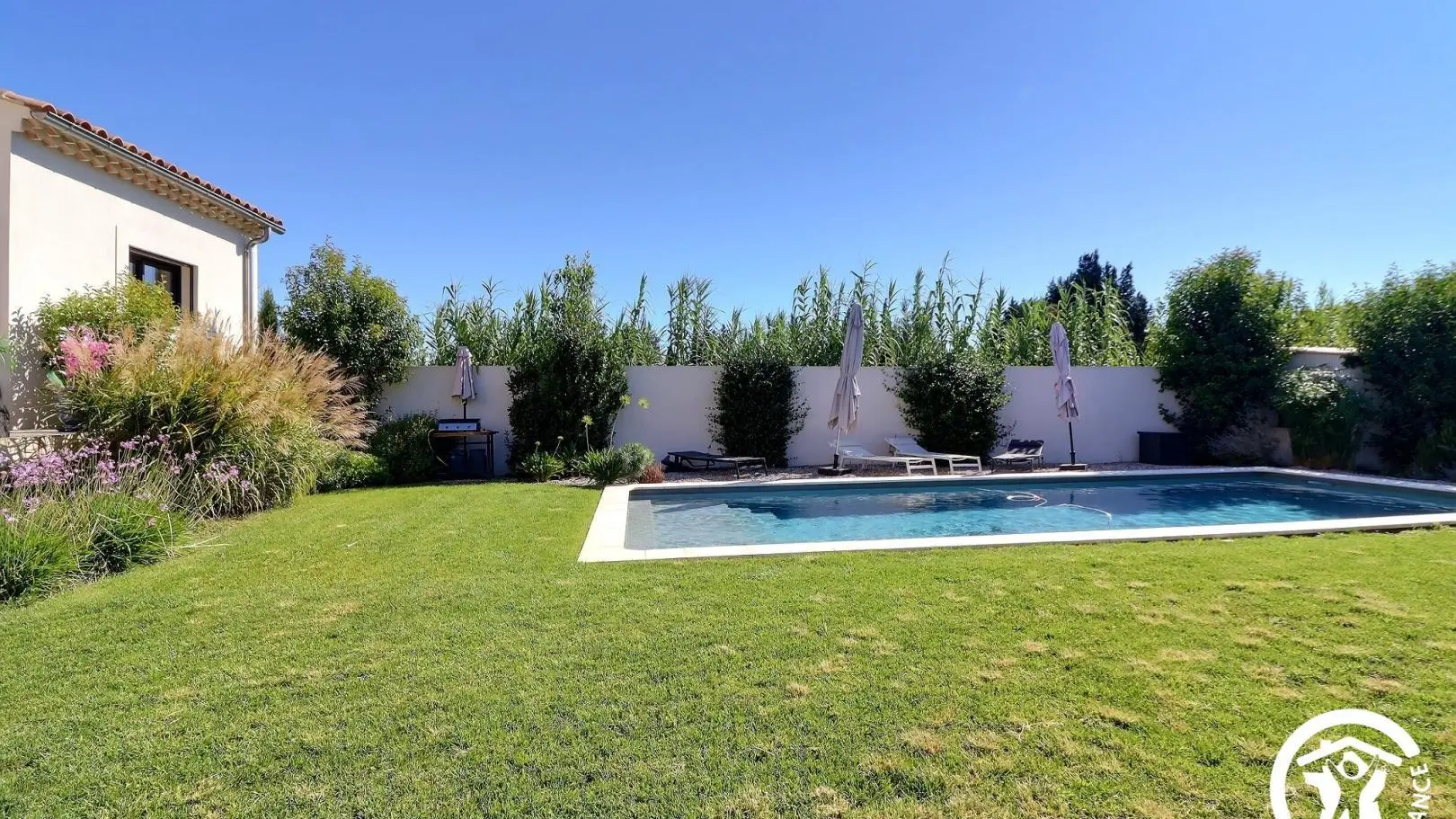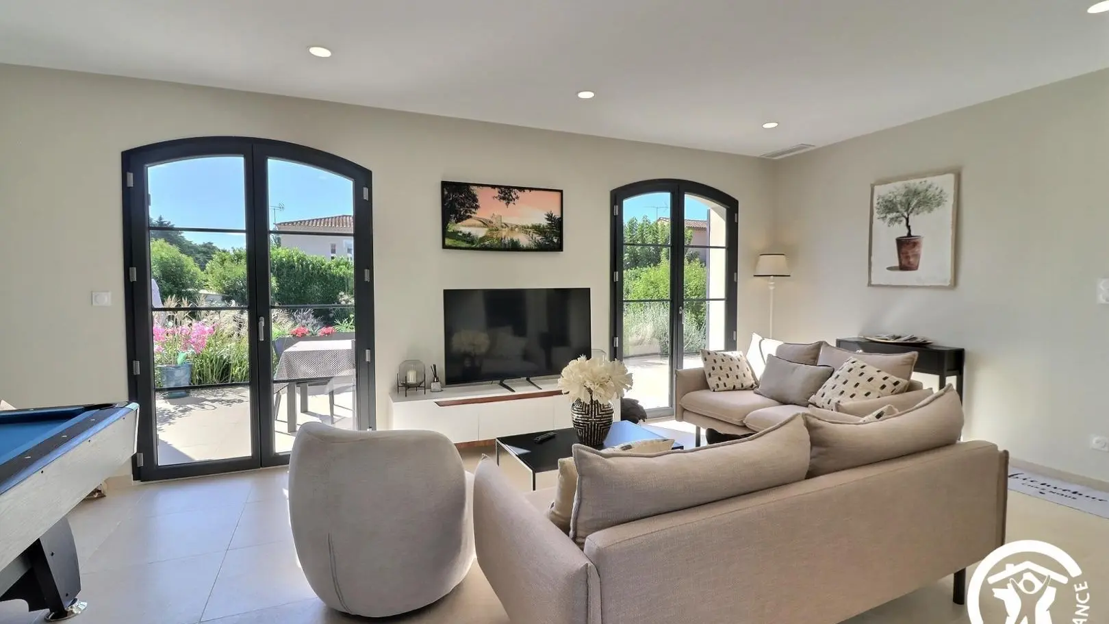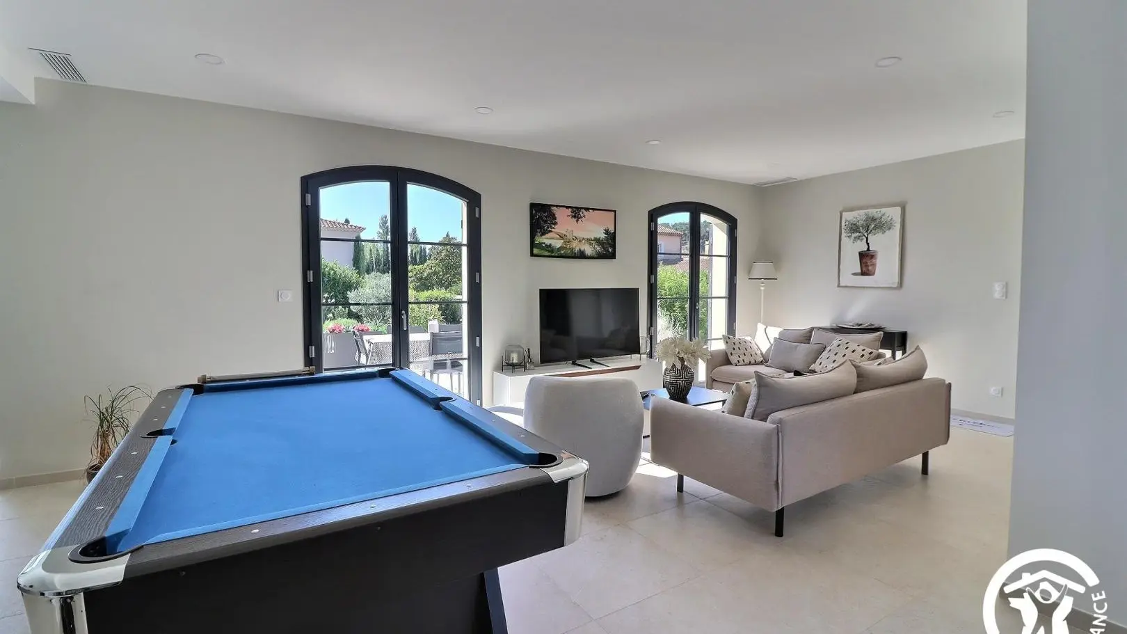 Villa moderne et lumineuse laissant entrer beaucoup de lumière naturelle. Vous trouverez une table de billard, piscine et conforts.