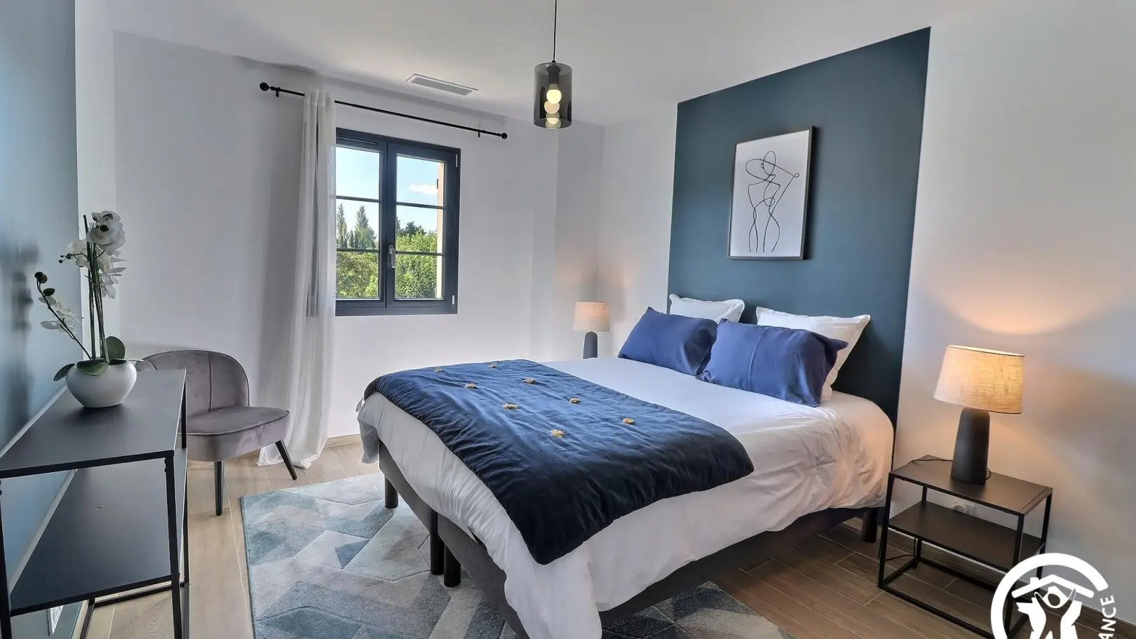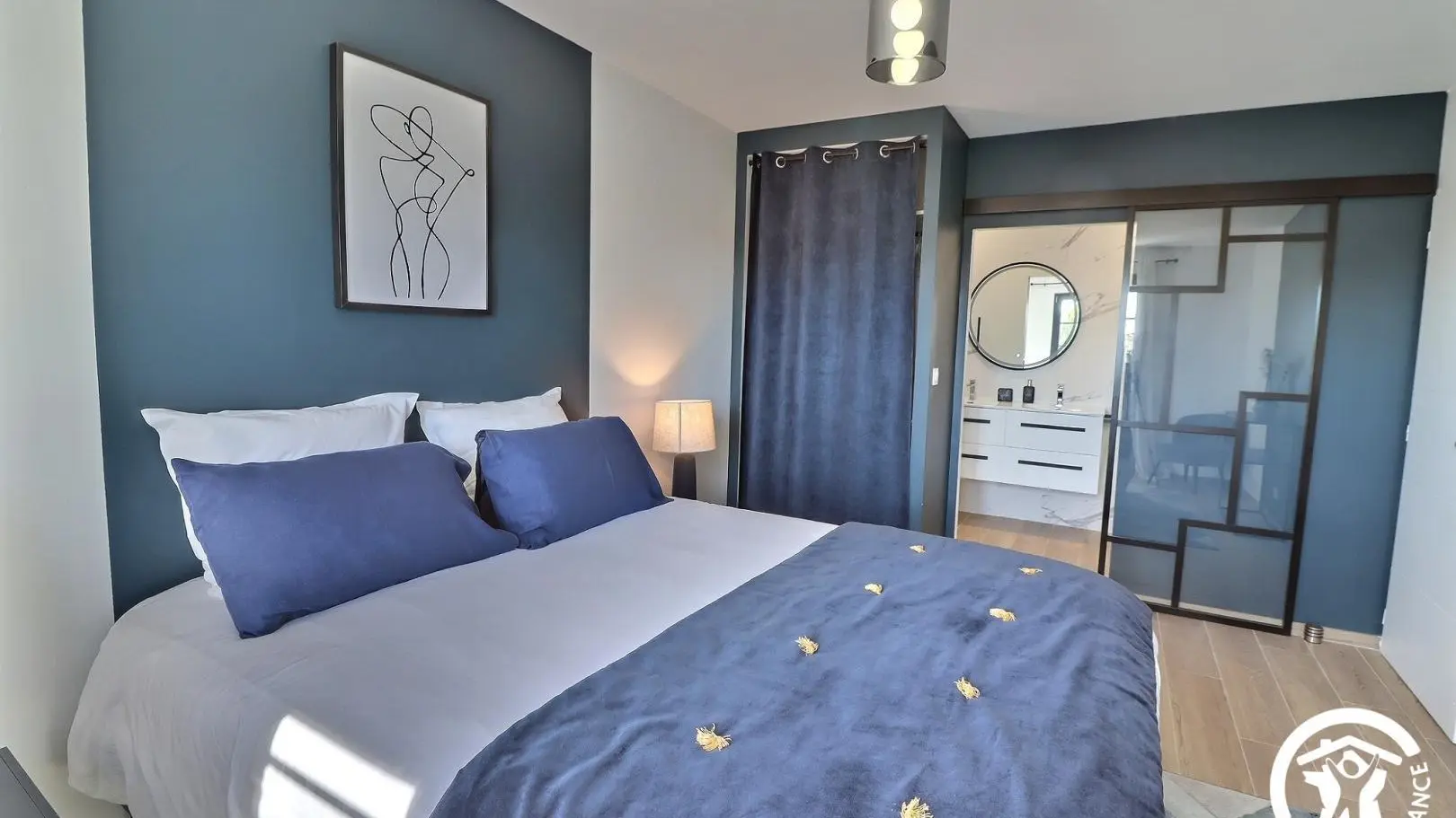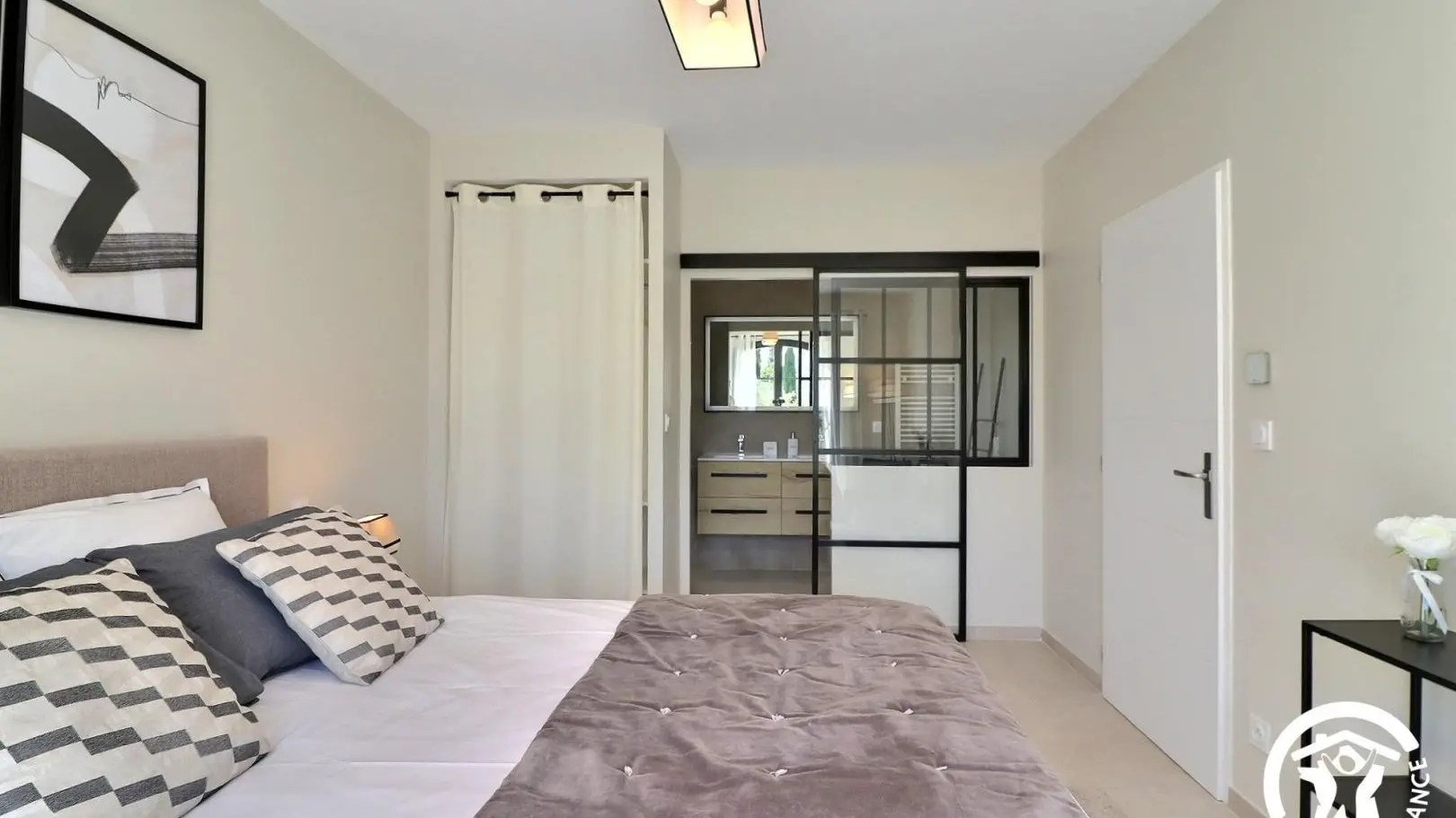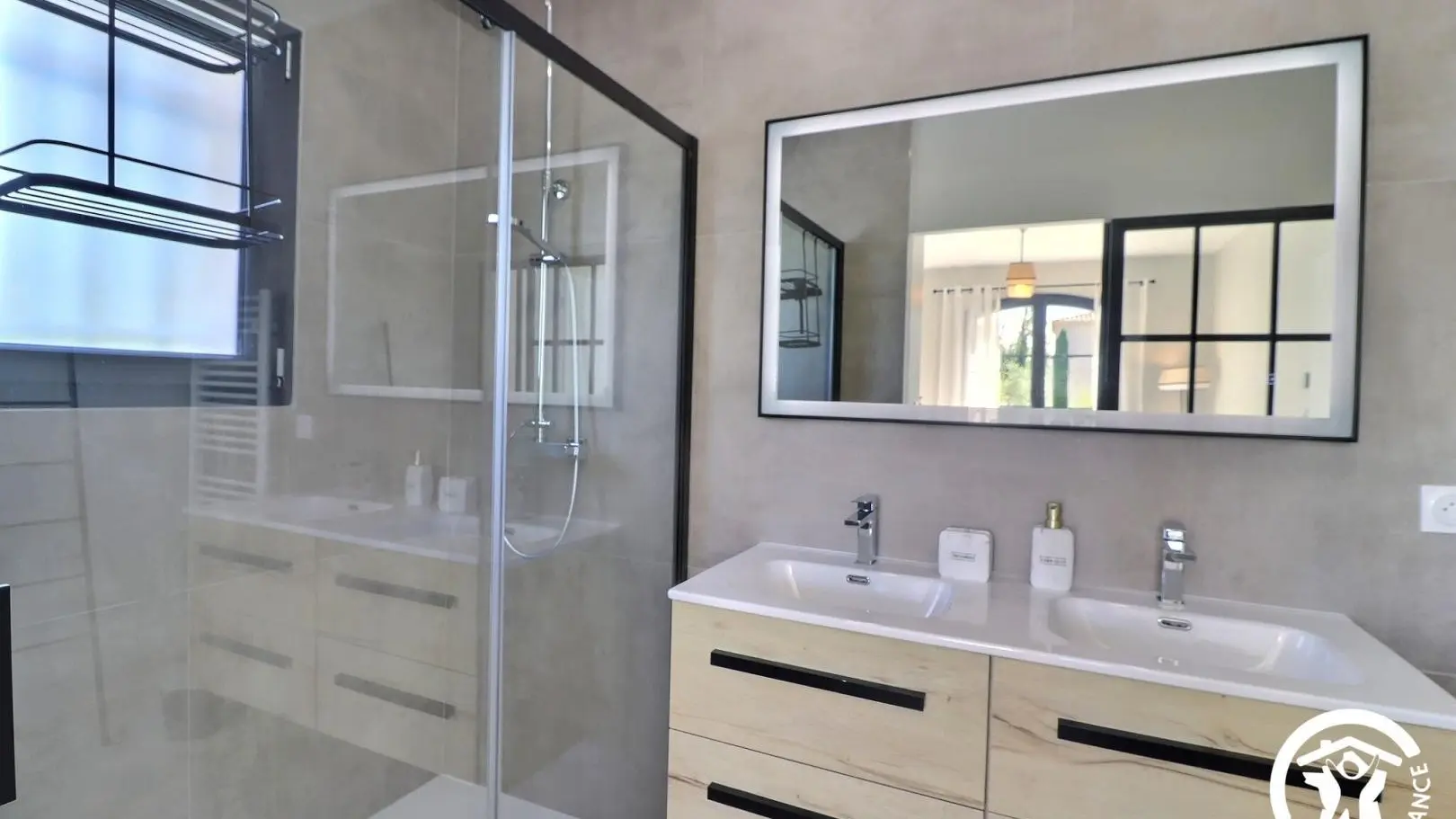 Elle possède 4 chambres avec 3 salles de bains, dont une au rez-de-chaussée, le reste se trouve à l’étage.