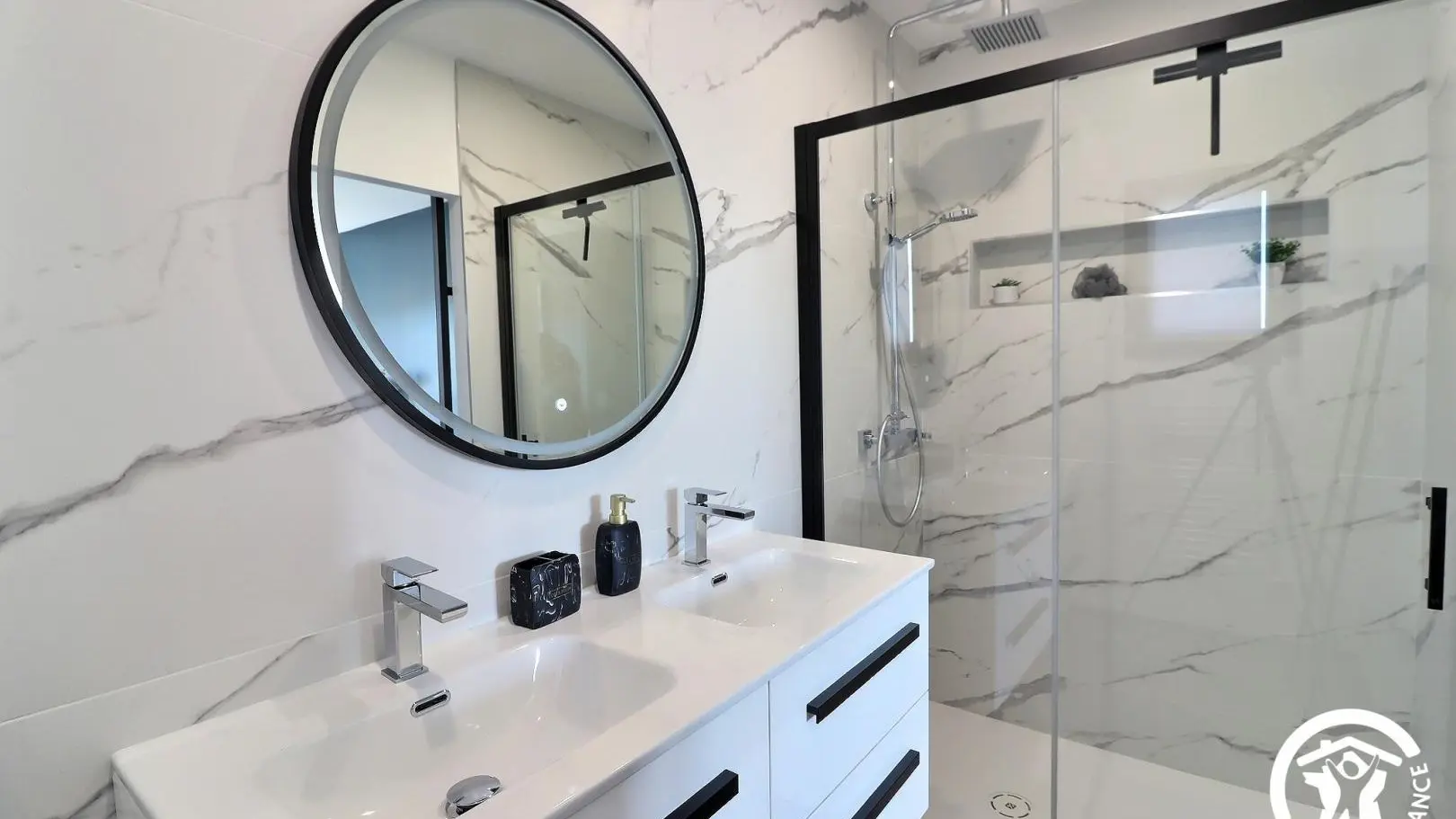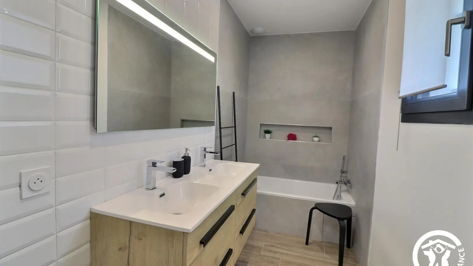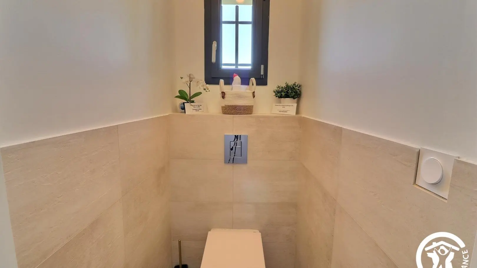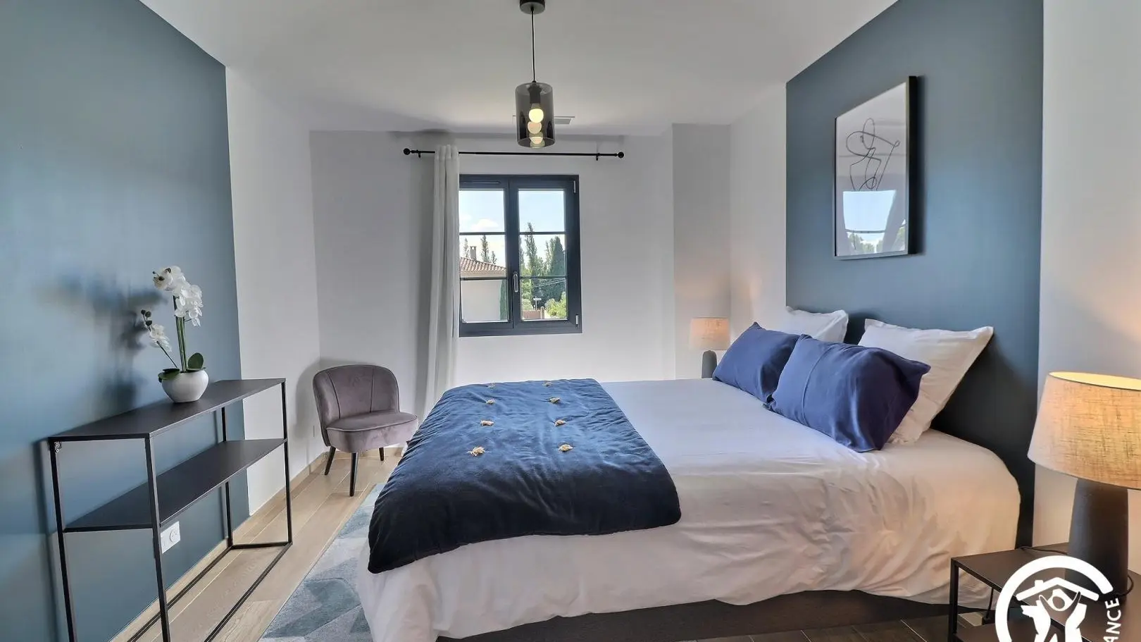 Elle possède 4 chambres avec 3 salles de bains, dont une au rez-de-chaussée, le reste se trouve à l’étage.
