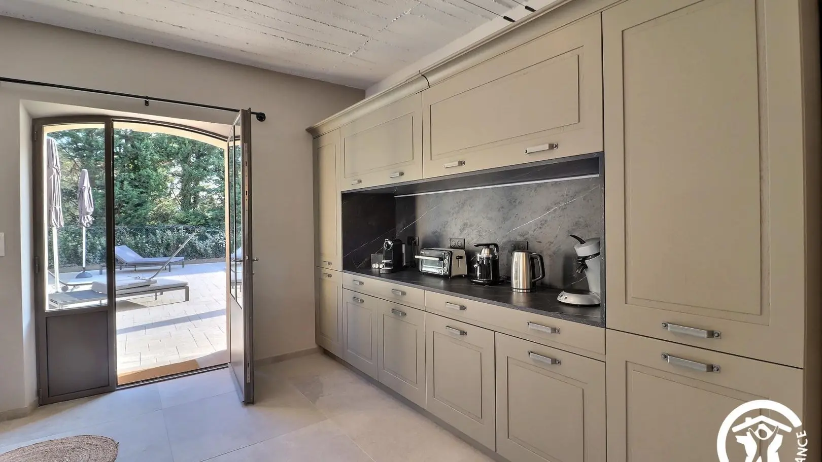 Profitez d'un jardin clos et privatif de 1400 m², et d'une grande terrasse de 280 m² avec treille et qui vous invite au farniente autour de la piscine chauffée et sécurisée, ou à une partie de ping pong et une partie de pétanque sous le soleil provençal. Un barbecue à gaz est également à votre disposition pour de savoureux repas en plein air.