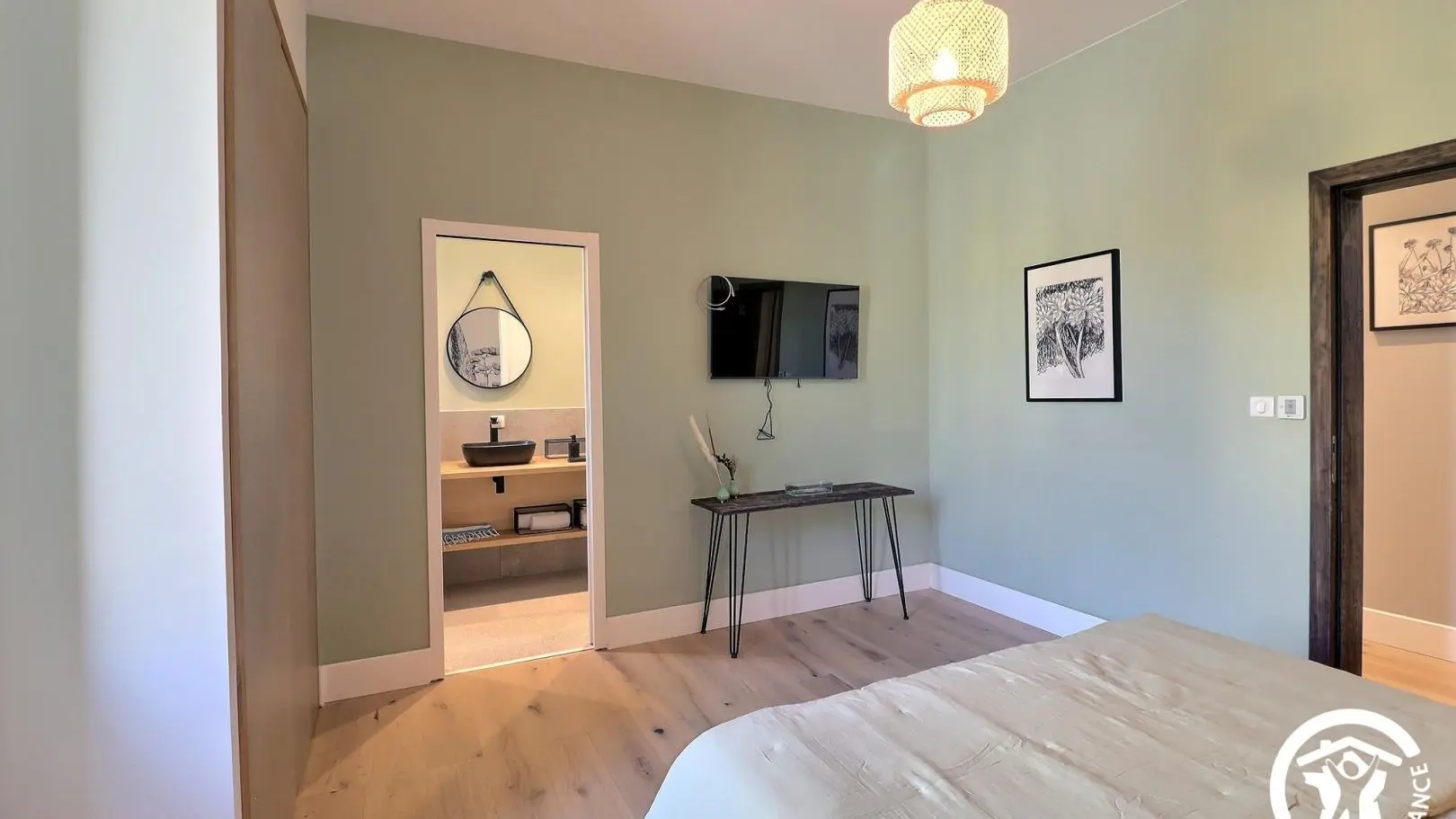 Une chambre de plain-pied est aménagée pour l'accessibilité PMR, avec sa salle d'eau et WC privatifs.