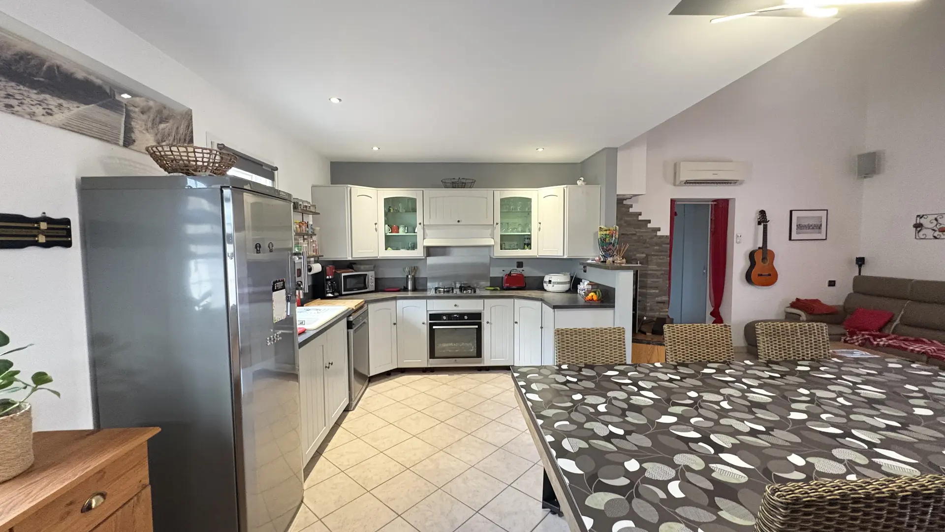 - Une grande cuisine toute équipée avec four, frigo, lave-vaisselle, cafetière filtre, micro-onde, grille-pain, plaque de cuisson etc...ainsi que de nombreux ustensiles,