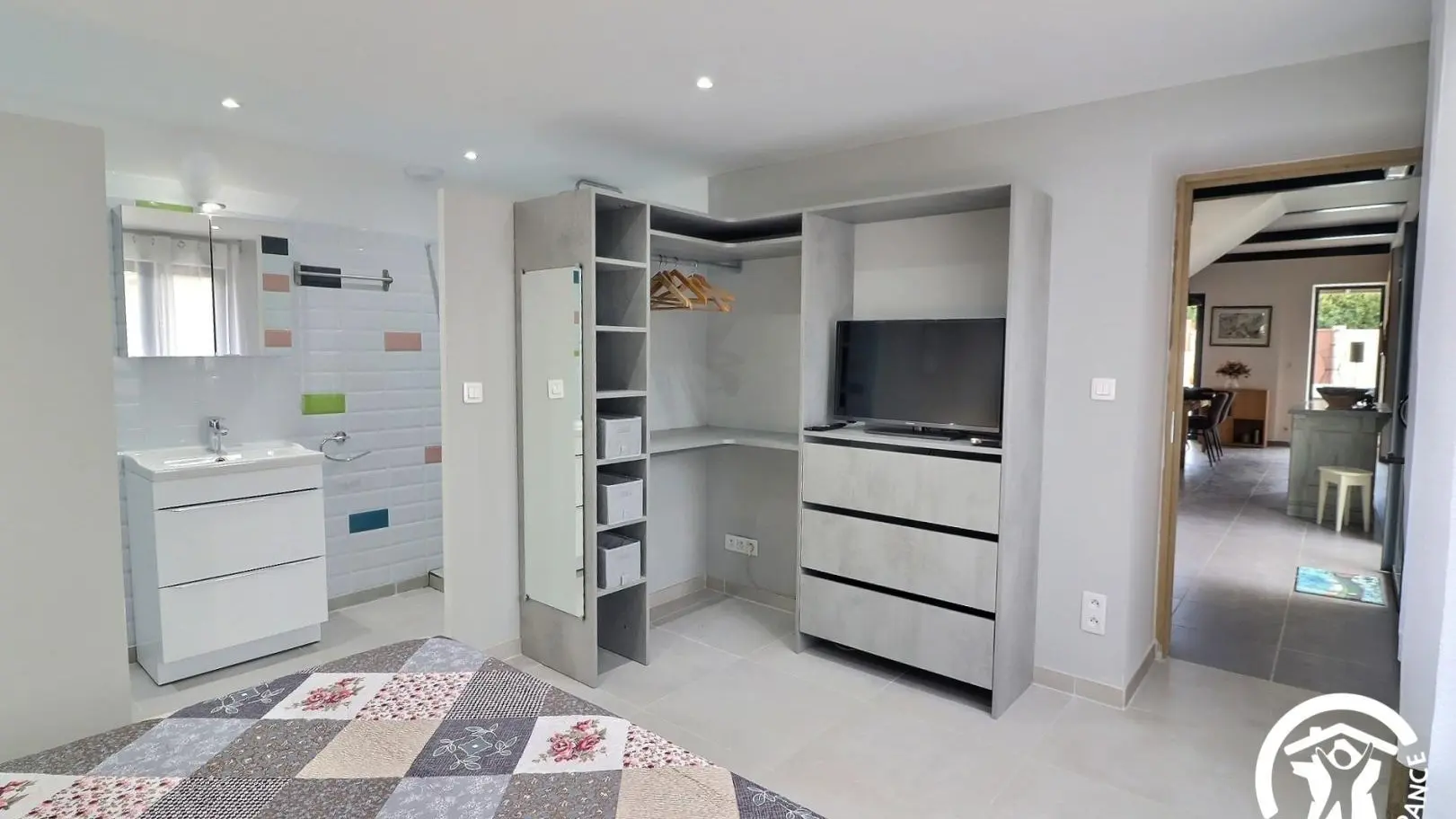 - Une suite parentale avec un lit 160x200, dressing, TV connectée ( chaines box orange) salle d'eau attenante avec grande