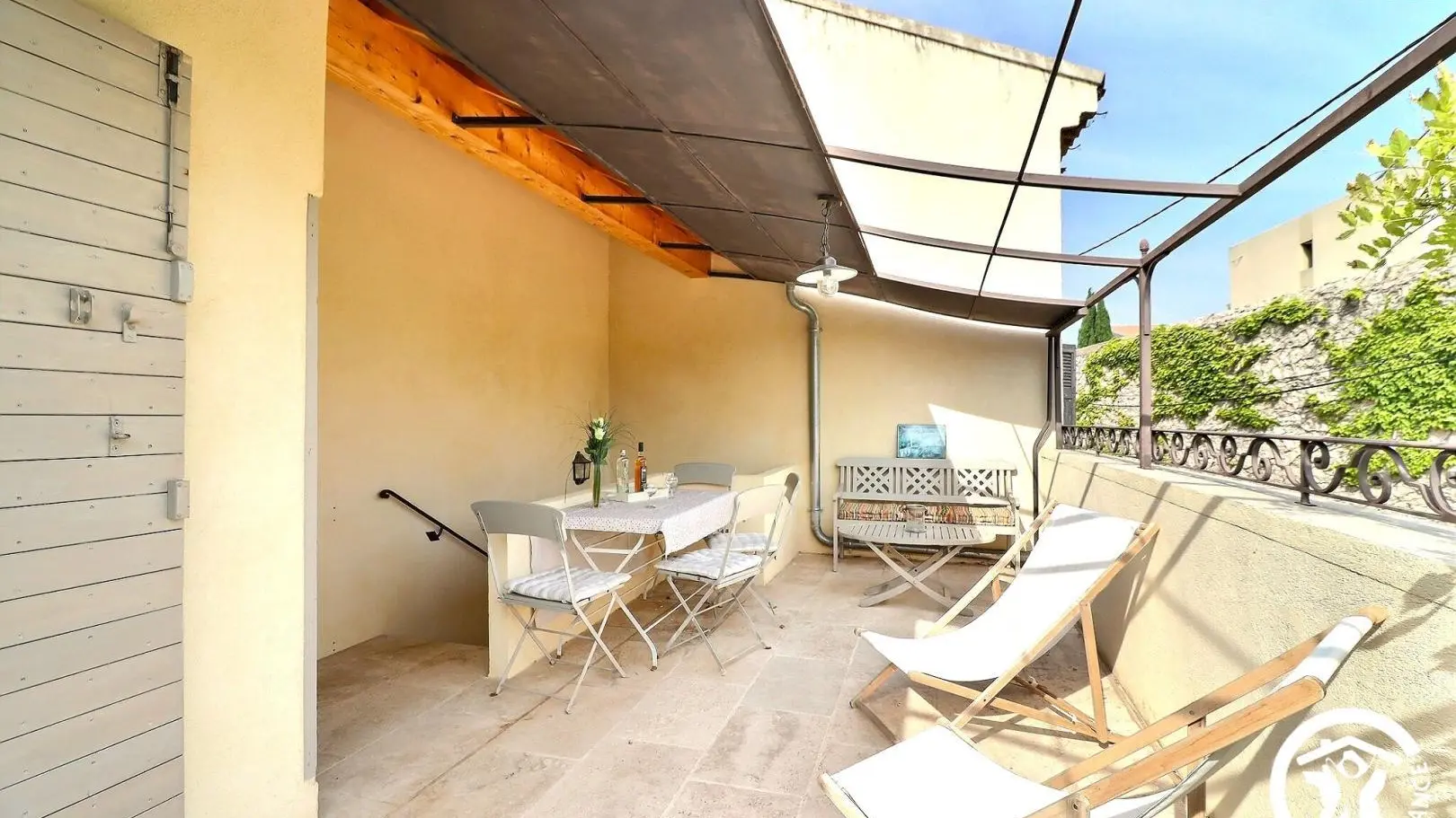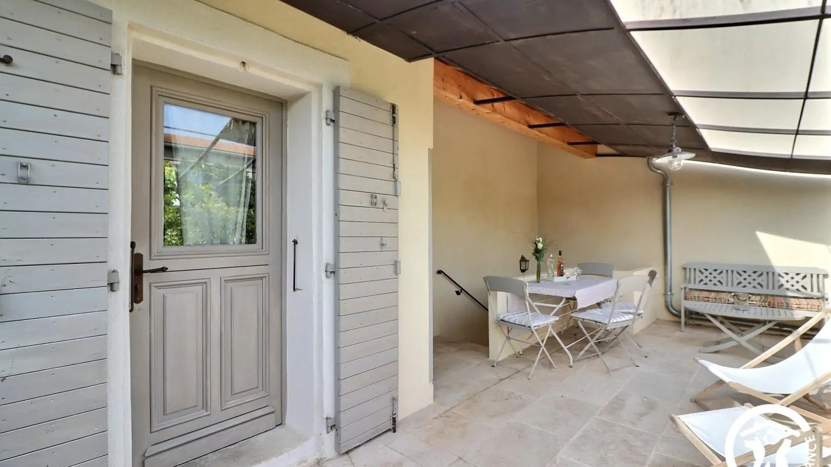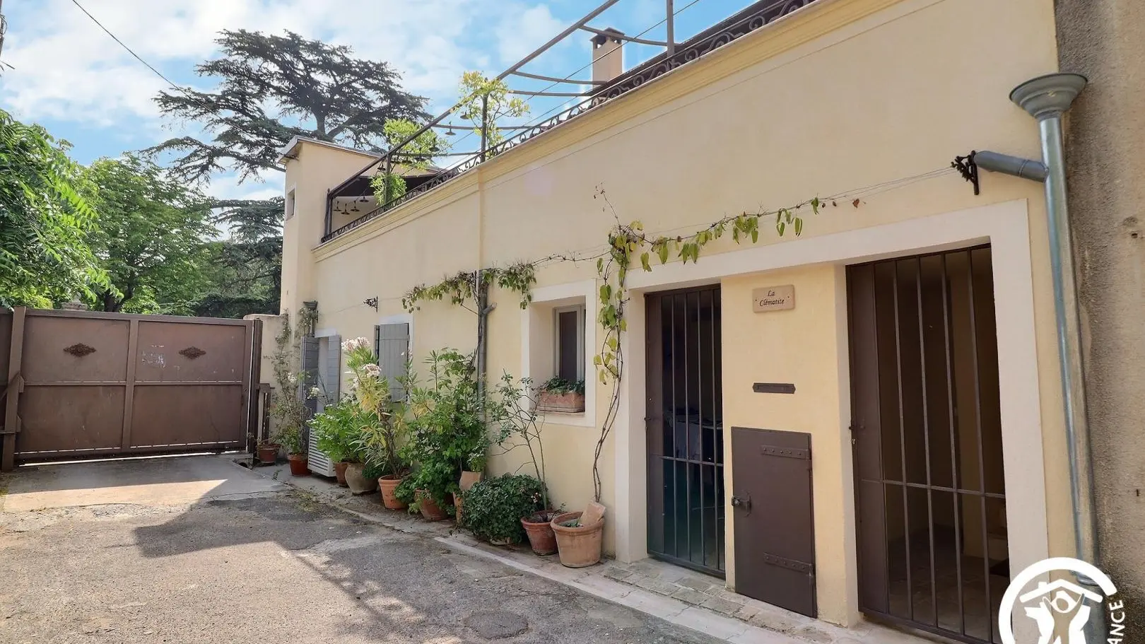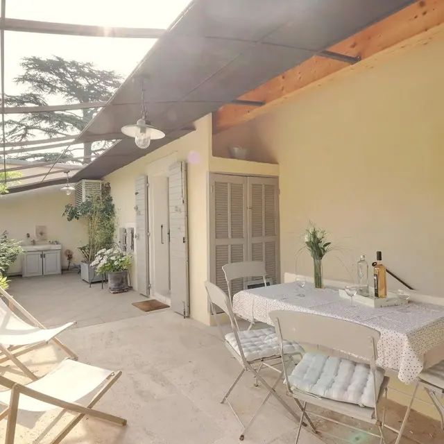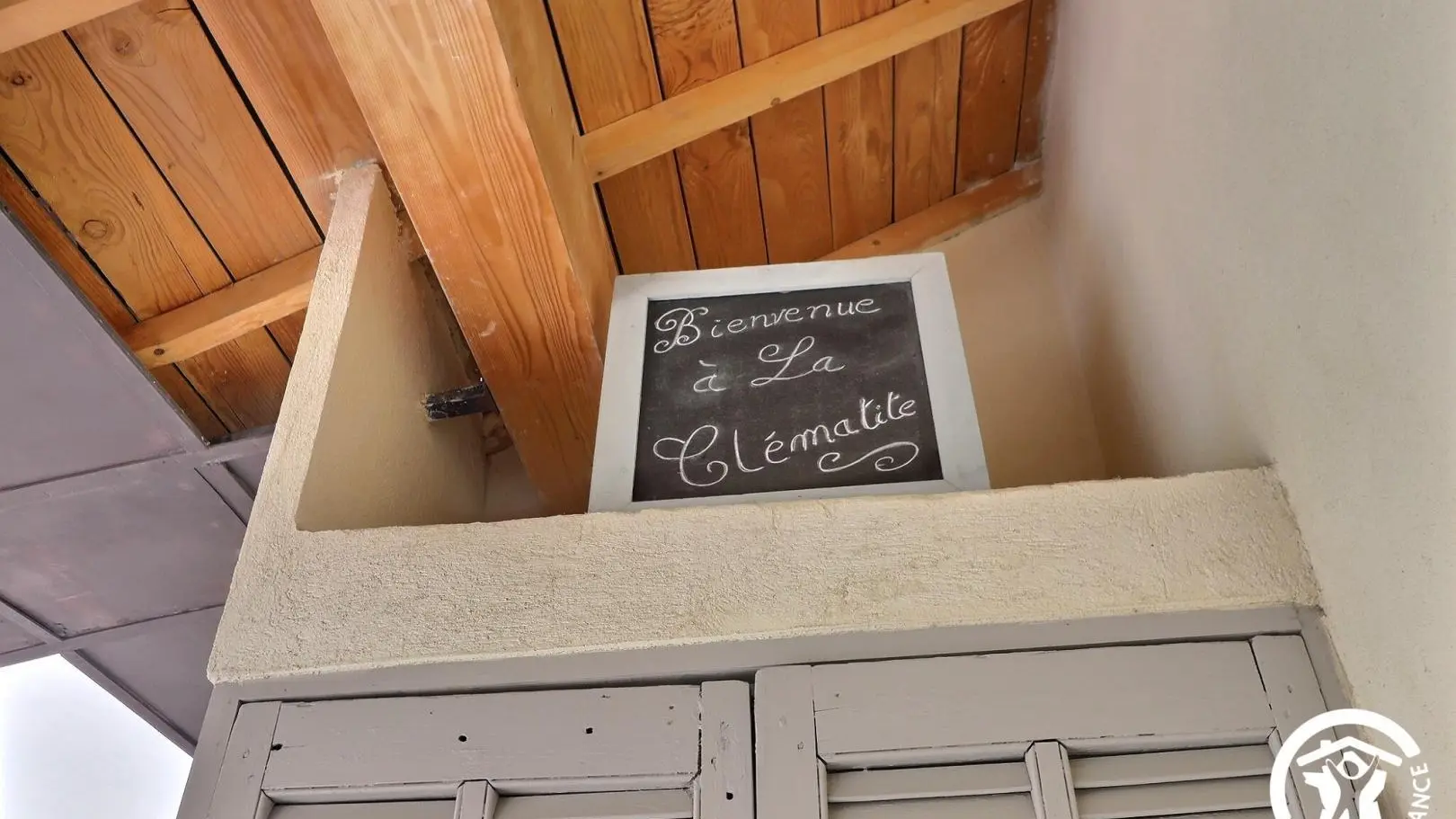 La Clématite est située au premier étage, accessible par un escalier donnant sur la belle terrasse. Au rdc se trouve la maison familiale des propriétaires.