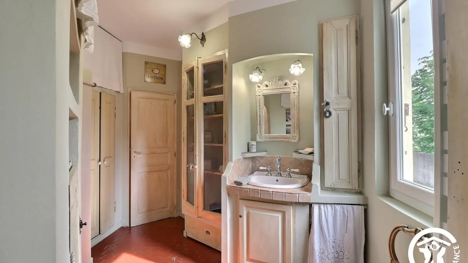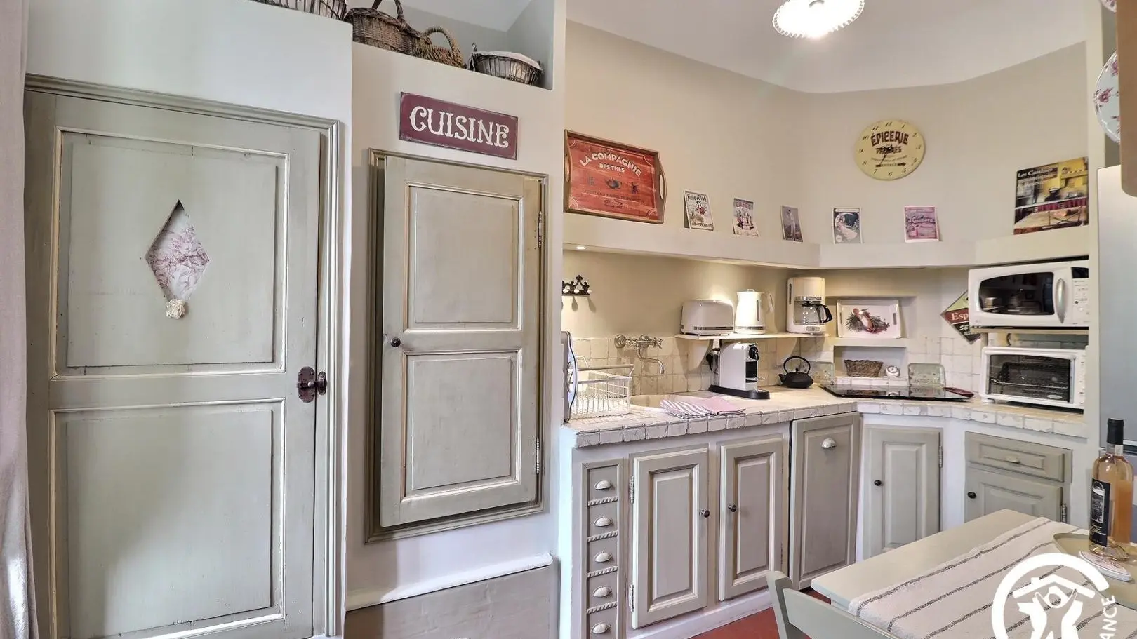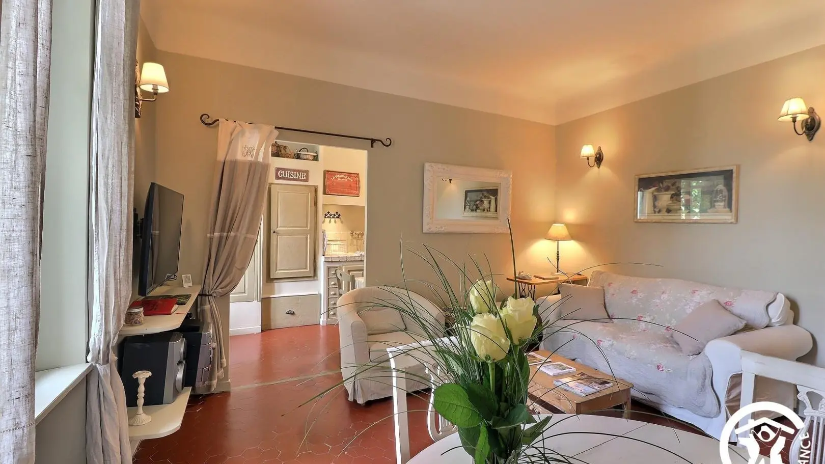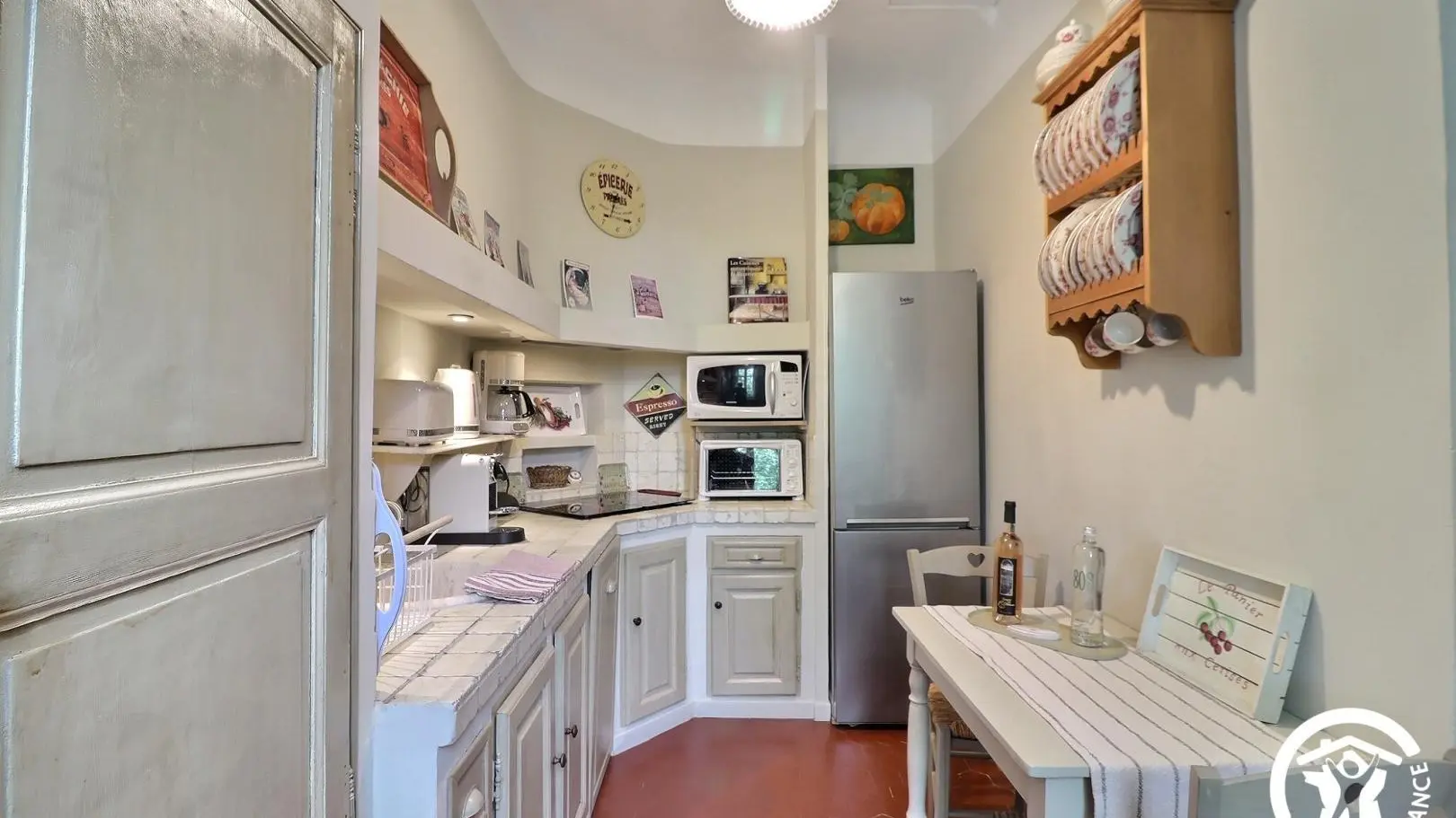 La Clématite est située au premier étage, accessible par un escalier donnant sur la belle terrasse. Au rdc se trouve la maison familiale des propriétaires.