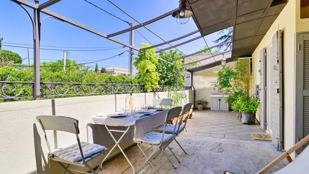 Situé au premier étage d'une ravissante maison de ville aixoise, La Clématite est un gîte de charme avec une agréable terrasse. Cette demeure familiale des années 1920, rénovée avec soin par les propriétaires, allie le cachet provençal — pierre apparente et tomettes — à un confort contemporain, grâce à des touches de ferronnerie et la climatisation. Une fois votre voiture stationnée, vous pourrez rejoindre à pied le centre historique, ou explorer les environs grâce à un arrêt de bus à seulement 20 mètres. La fontaine de la Rotonde, le cours Mirabeau et les Allées Provençales n'attendent que vous !