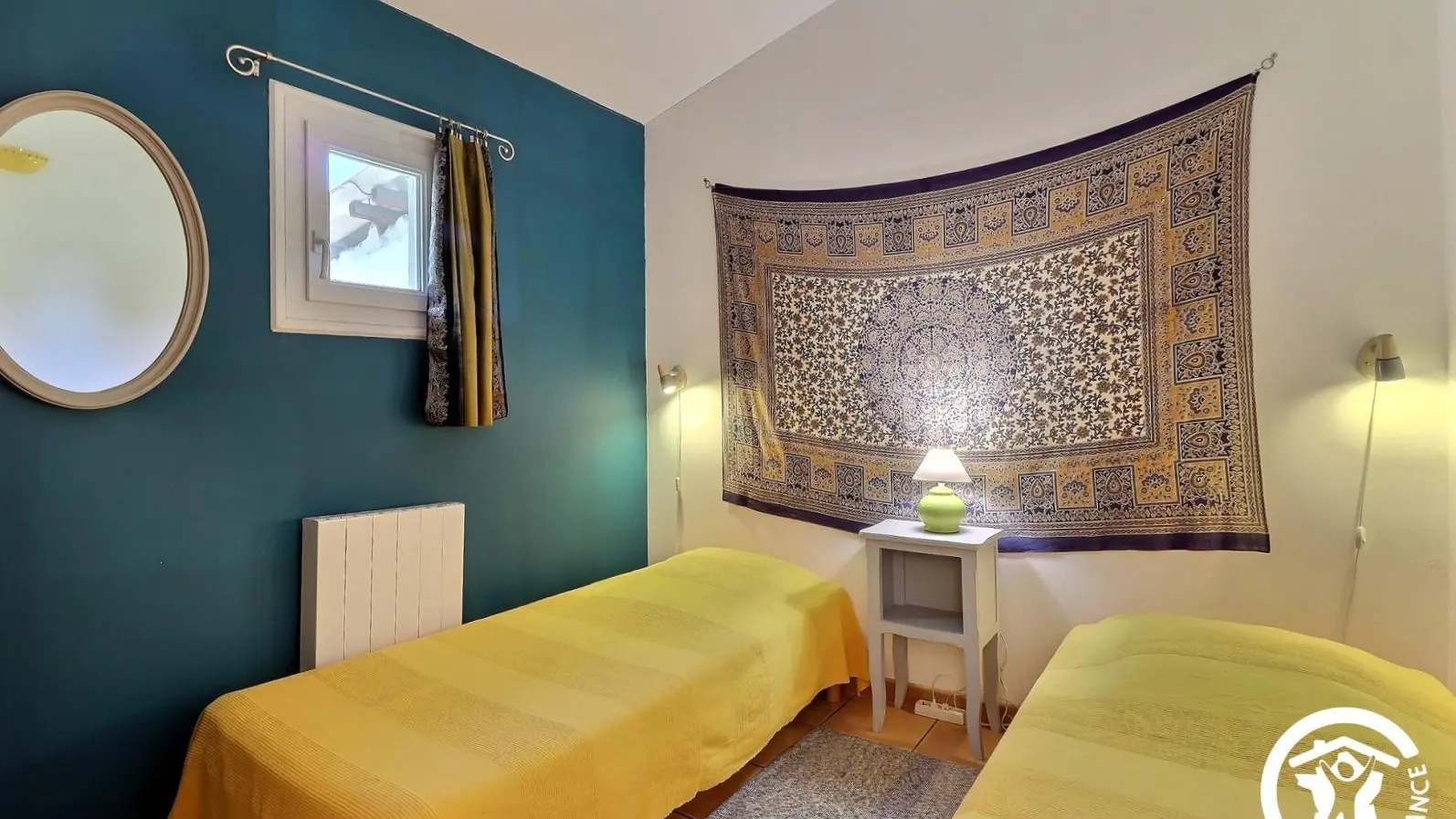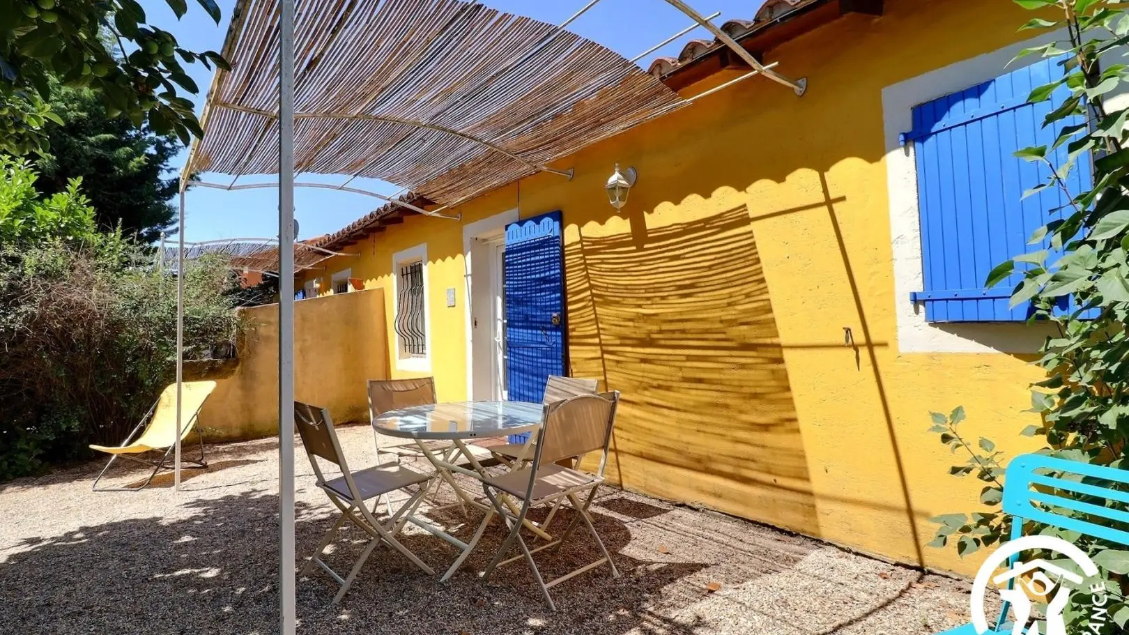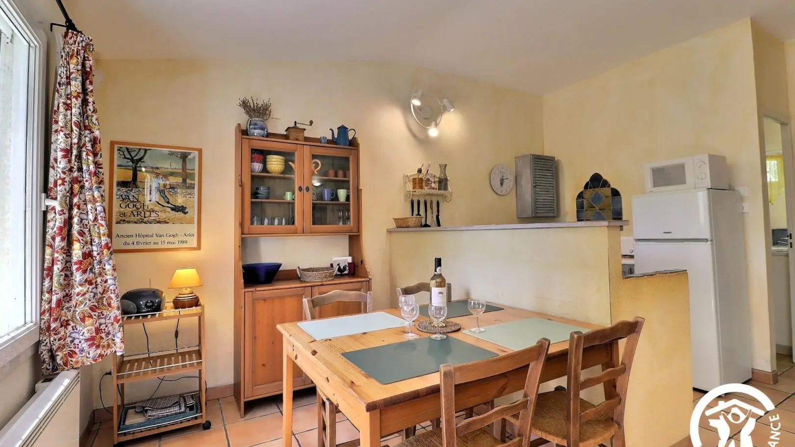 En pleine campagne, proche d'Arles et des sites touristiques de Camargue, La Coquille 2 est mitoyen à un autre gîte (13G270518), sur une propriété arborée et close de 3000 m². Jolie décoration personnalisée, mosaïques et poteries réalisées par la propriétaire. De plain pied, le gîte s'ouvre sur la pièce de vie avec coin salon (TV écran plat, chaîne hi-fi et lecteur DVD), wifi, espace repas et cuisine (plaque 4 feux électriques, four, micro-ondes). 2 chambres : la première avec 1 lit 2 personnes 140x190cm et la seconde avec 2 lits 1 personne 90x190cm. Salle d'eau avec douche. WC séparés. Chauffage électrique. Lit et chaise bébé sur demande. Draps et linge inclus. Buanderie commune avec lave-linge. Ménage sur demande (40€). Terrasse de 70 m² avec salon de jardin, barbecue sur demande. Jardin clos de 700 m² commun aux 2 gîtes avec balançoire. Parking.