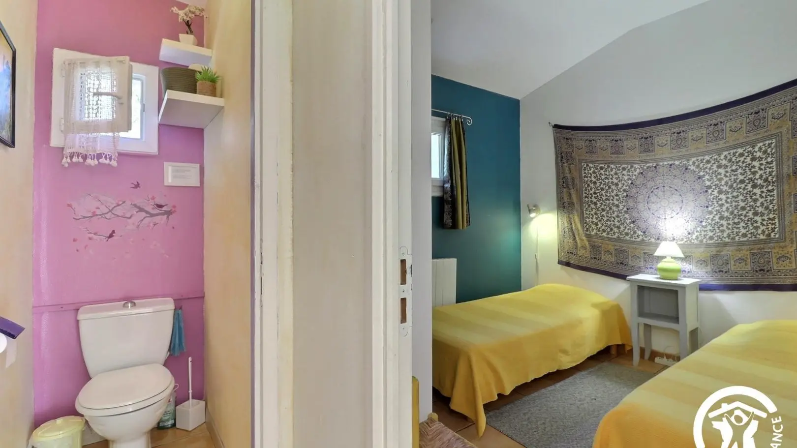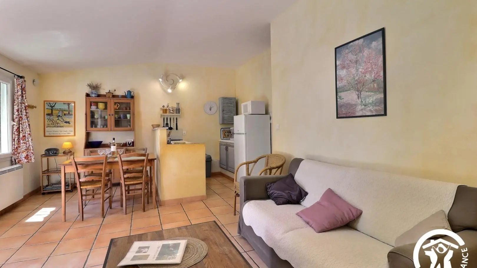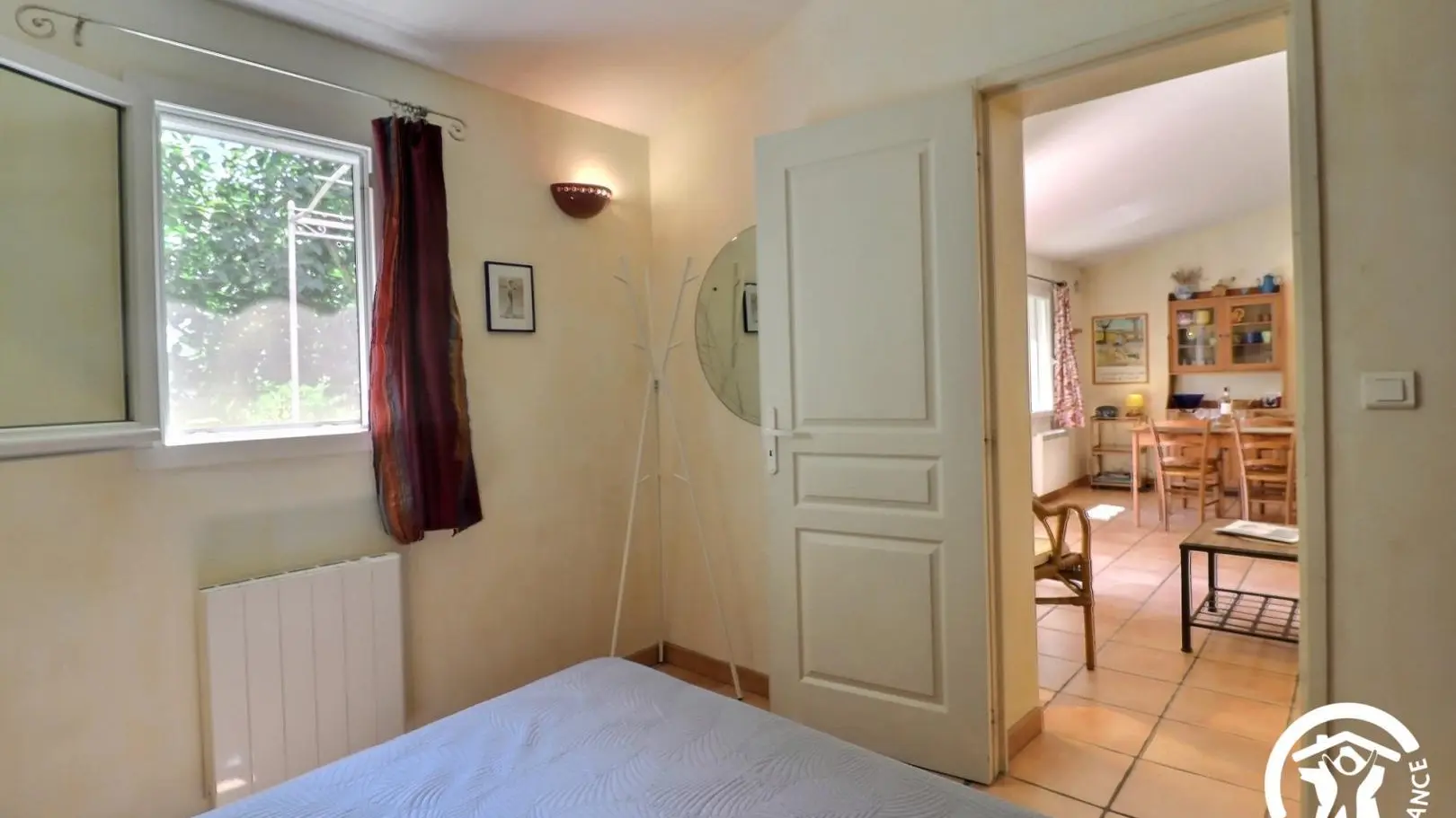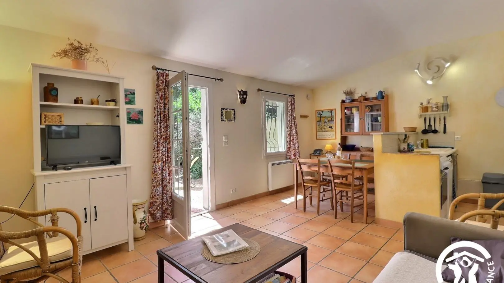 En pleine campagne, proche d'Arles et des sites touristiques de Camargue, La Coquille 2 est mitoyen à un autre gîte (13G270518), sur une propriété arborée et close de 3000 m². Jolie décoration personnalisée, mosaïques et poteries réalisées par la propriétaire. De plain pied, le gîte s'ouvre sur la pièce de vie avec coin salon (TV écran plat, chaîne hi-fi et lecteur DVD), wifi, espace repas et cuisine (plaque 4 feux électriques, four, micro-ondes). 2 chambres : la première avec 1 lit 2 personnes 140x190cm et la seconde avec 2 lits 1 personne 90x190cm. Salle d'eau avec douche. WC séparés. Chauffage électrique. Lit et chaise bébé sur demande. Draps et linge inclus. Buanderie commune avec lave-linge. Ménage sur demande (40€). Terrasse de 70 m² avec salon de jardin, barbecue sur demande. Jardin clos de 700 m² commun aux 2 gîtes avec balançoire. Parking.