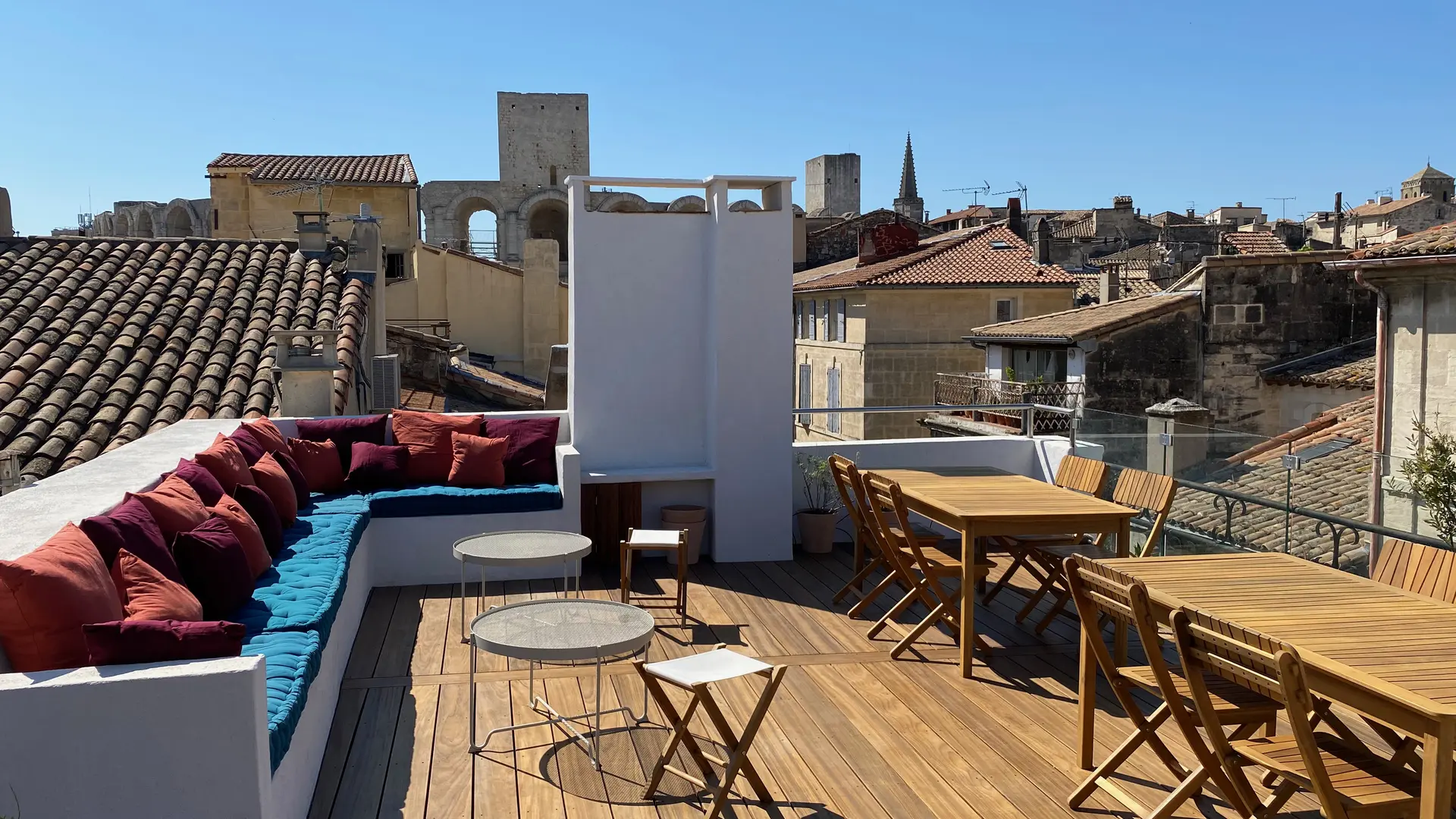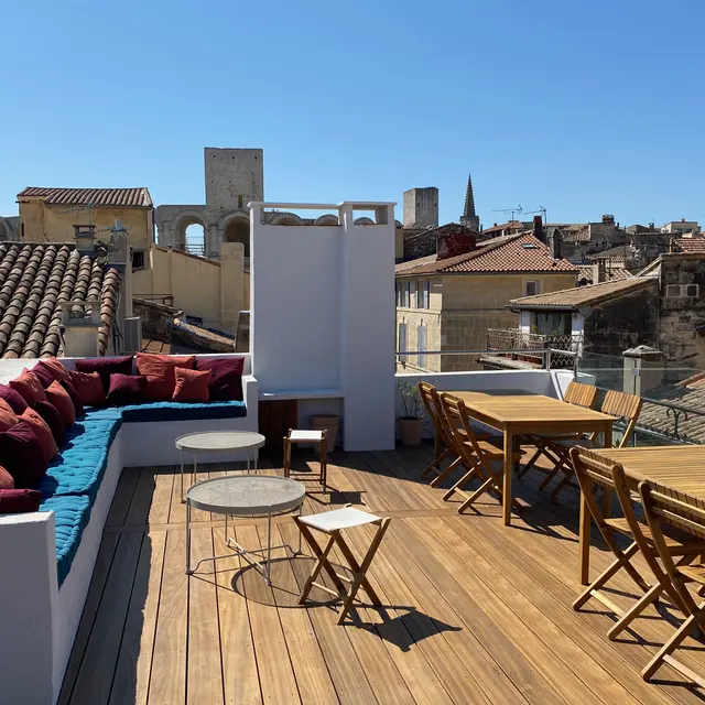 Au sein de chaque chambre, vous trouverez une salle de bain privative (douche italienne, lavabo et WC). La maison dispose d’une cour intérieure verdoyante, d’une petite terrasse surplombant le jardin intérieur ainsi qu’un toit-terrasse avec une vue magnifique sur les Arènes et les toits de la ville.